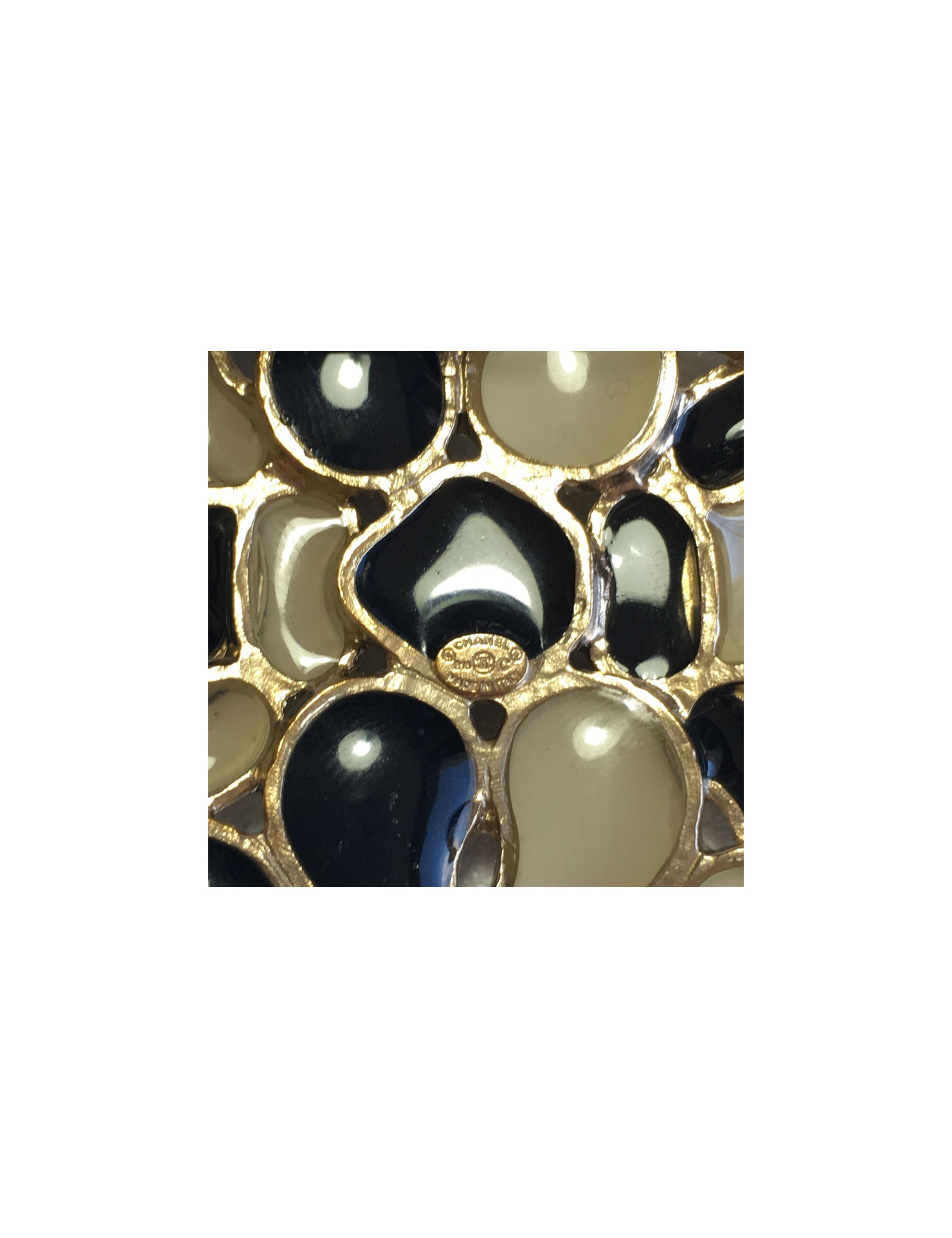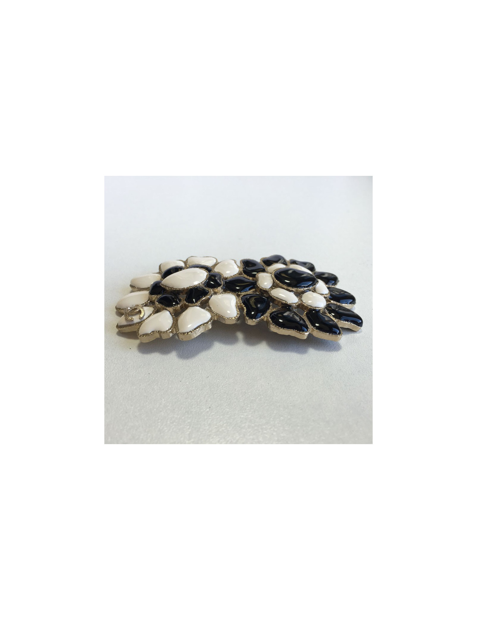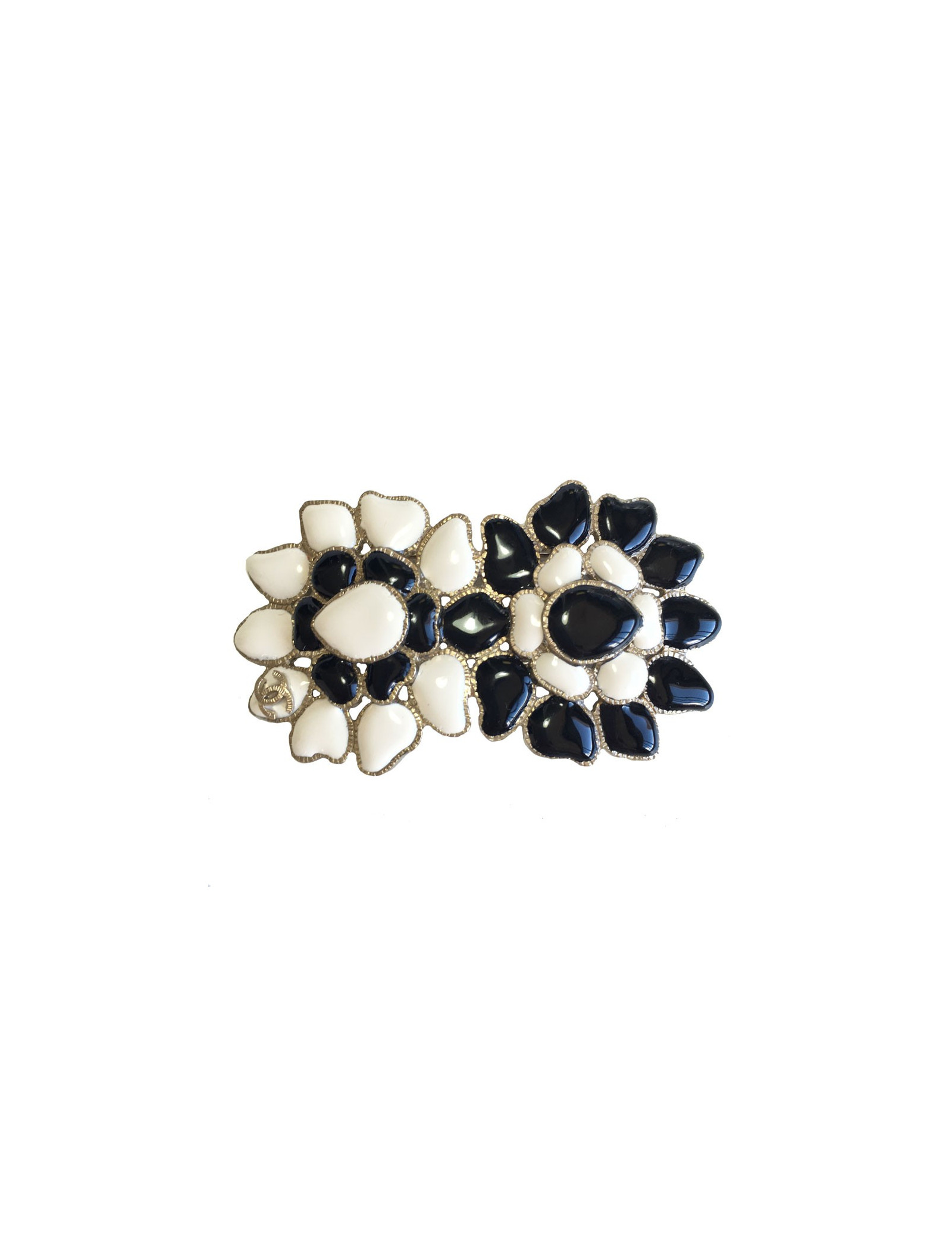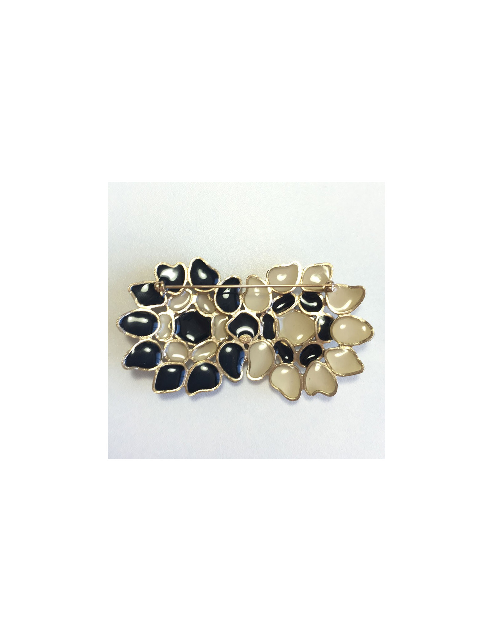 Broche CHANEL noire et blanche en métal doré