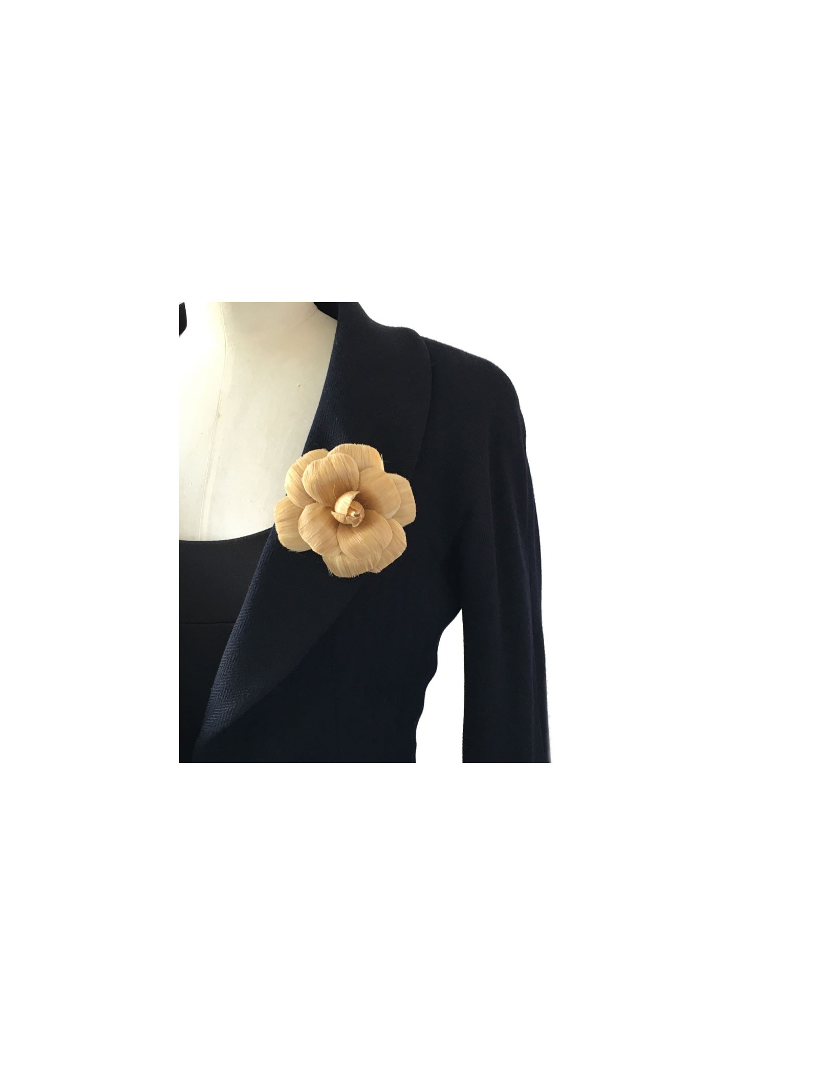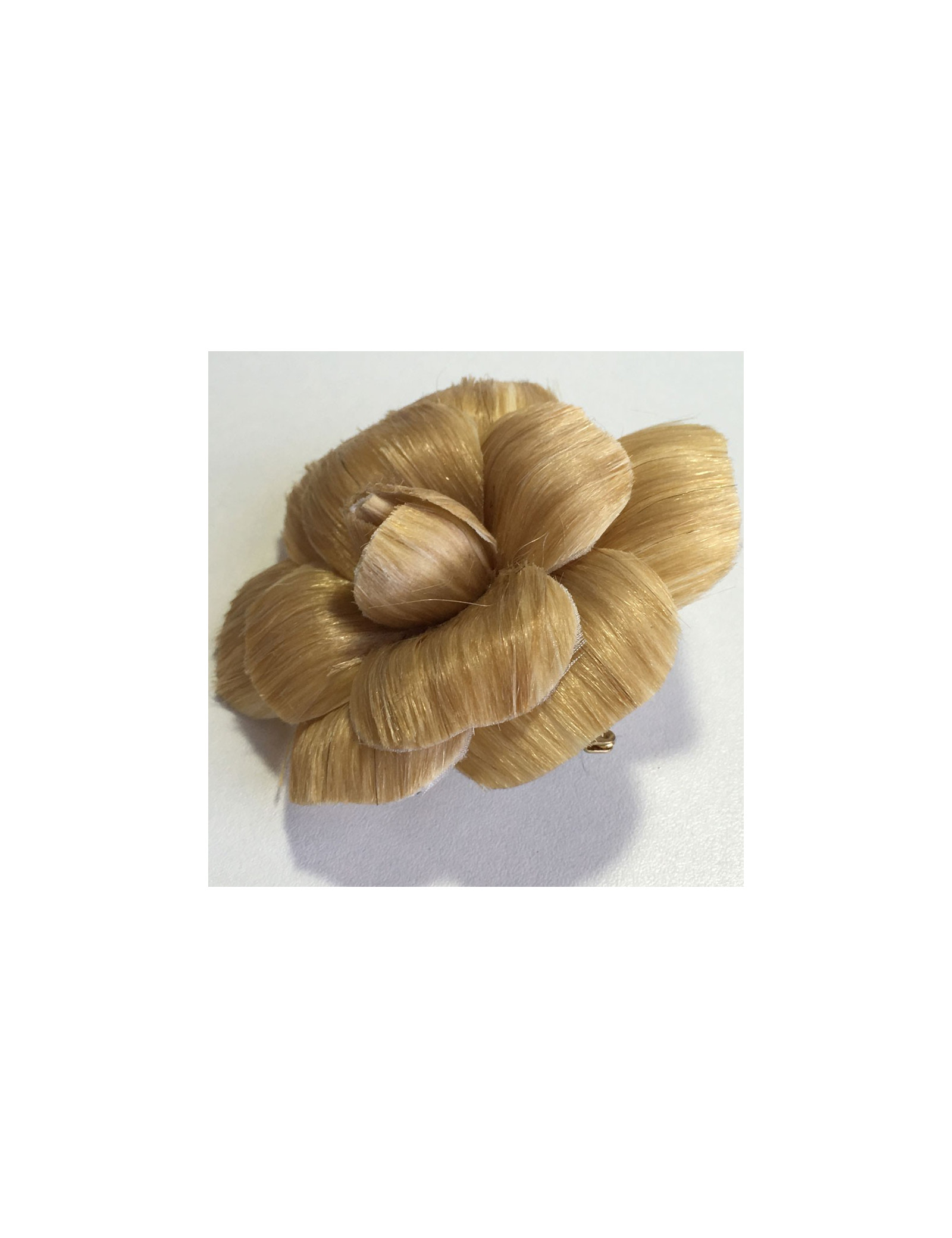 Très belle broche CHANEL camélia en crin blond. Jamais portée. Pastille de la marque présente.