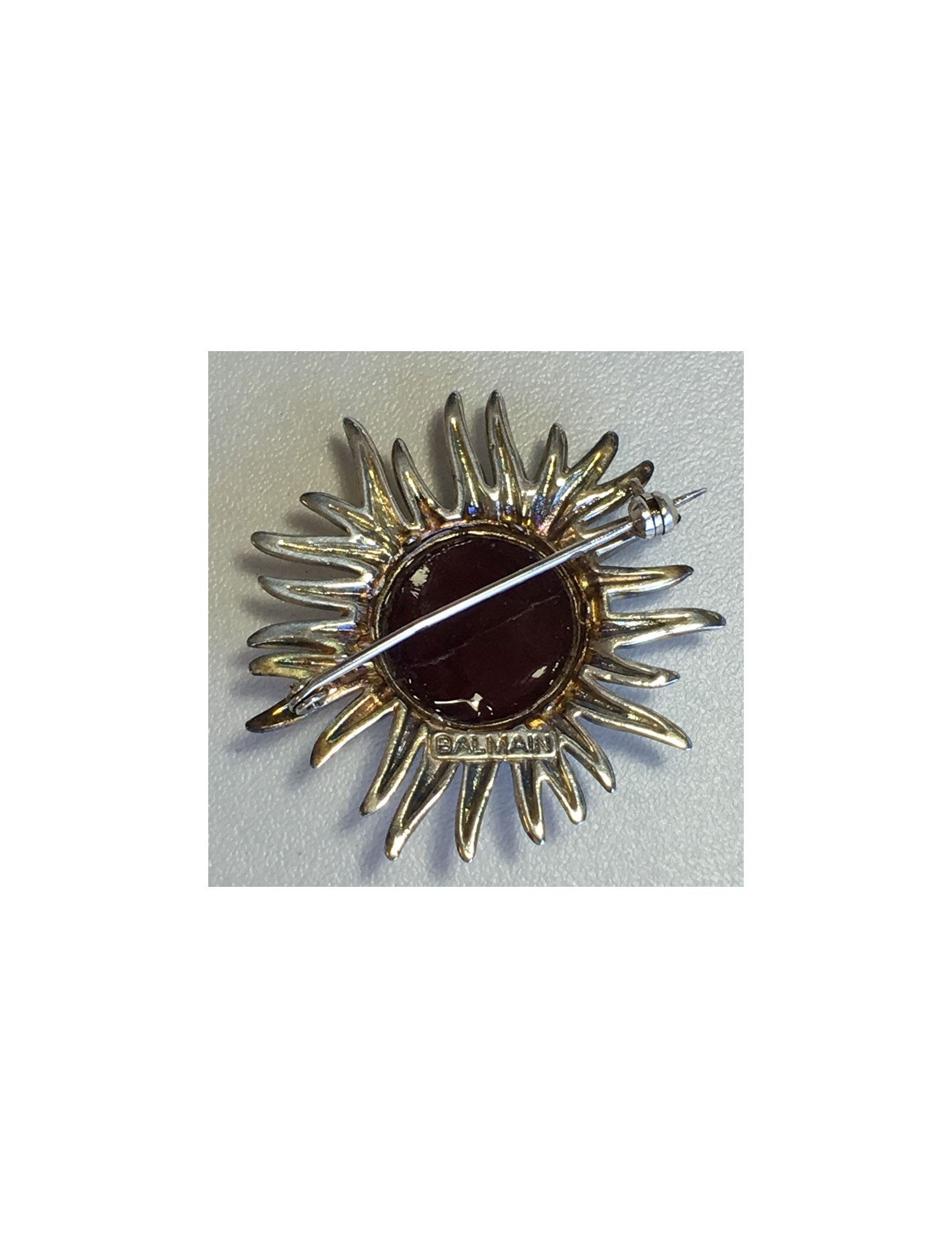 PIN BALMAIN Vintage Sun in silver and Garnet glass paste