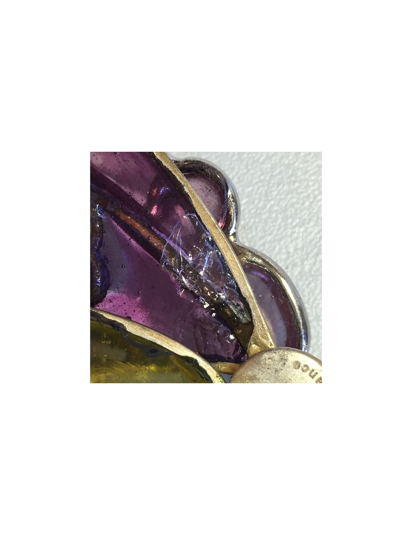 In good condition. A small silver part is slightly oxidized (cleans itself). On the back there is a shatter on a part go the molten glass (see photo)