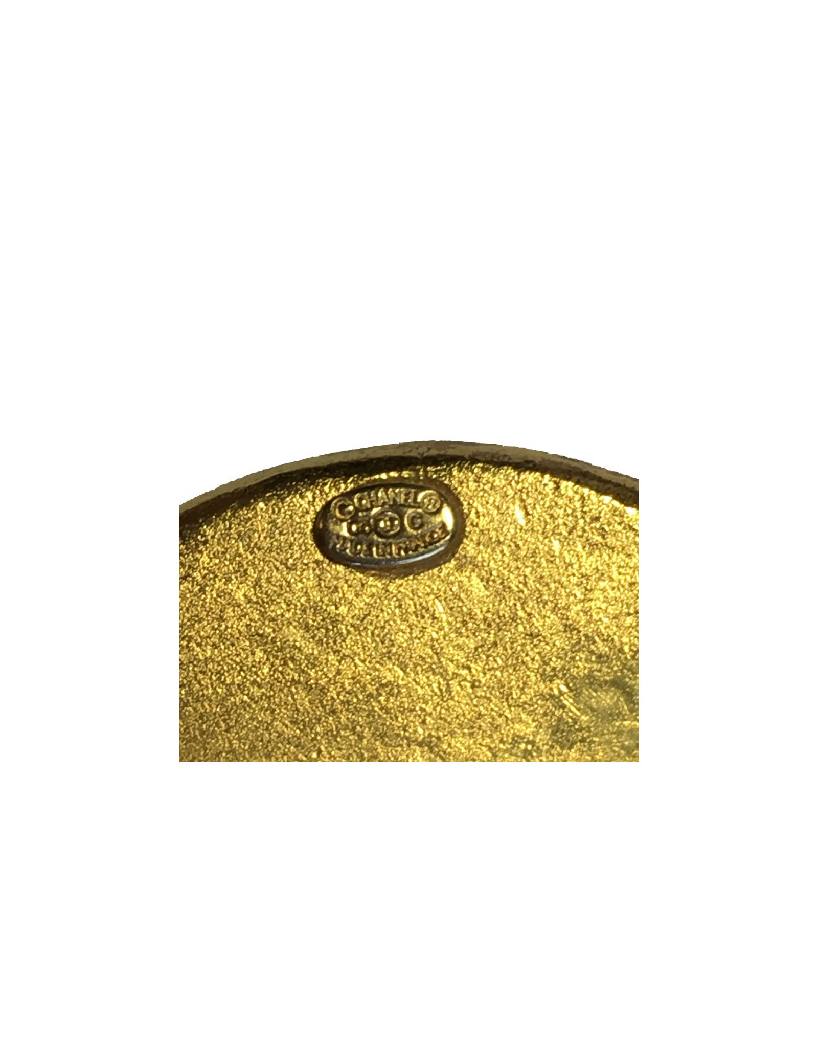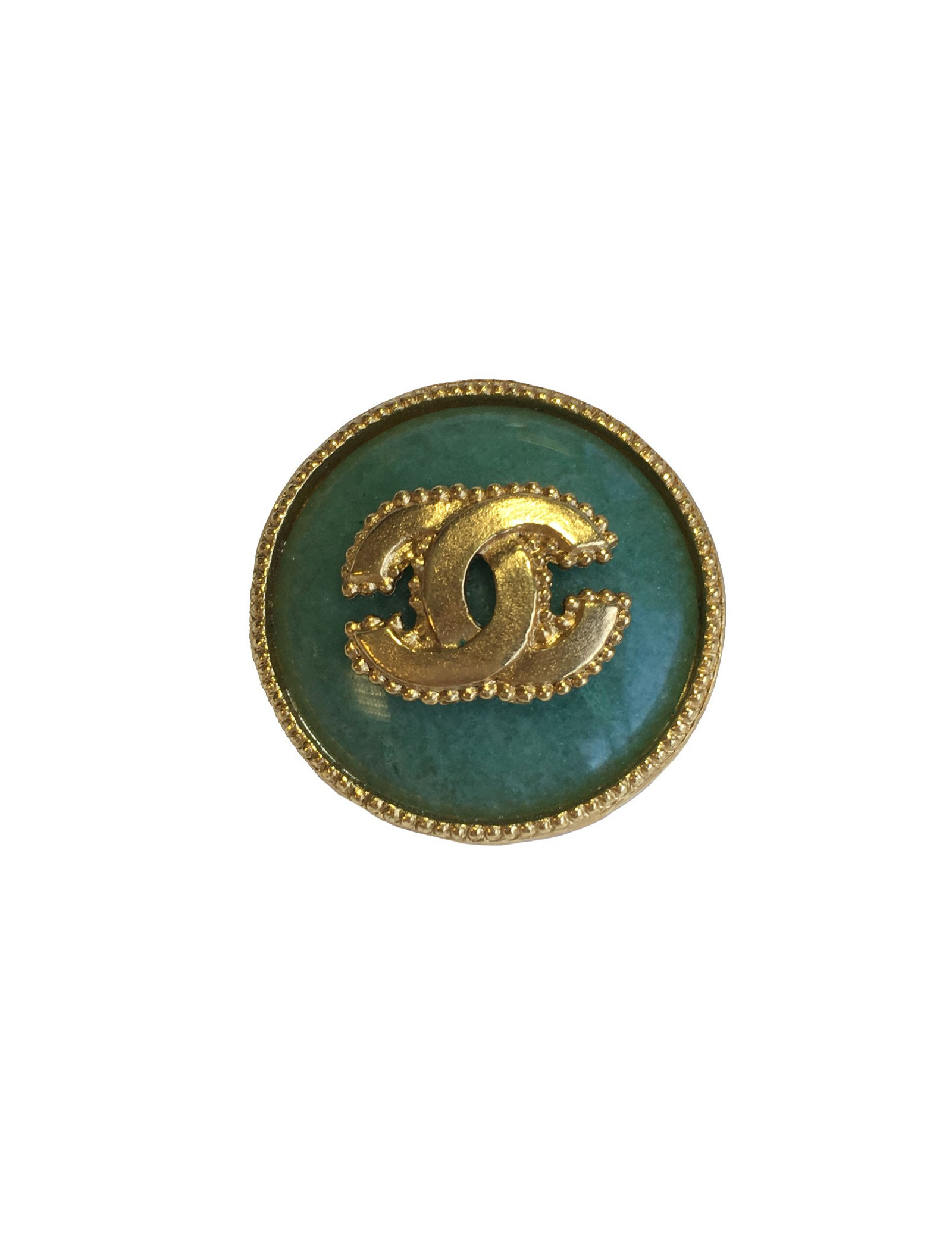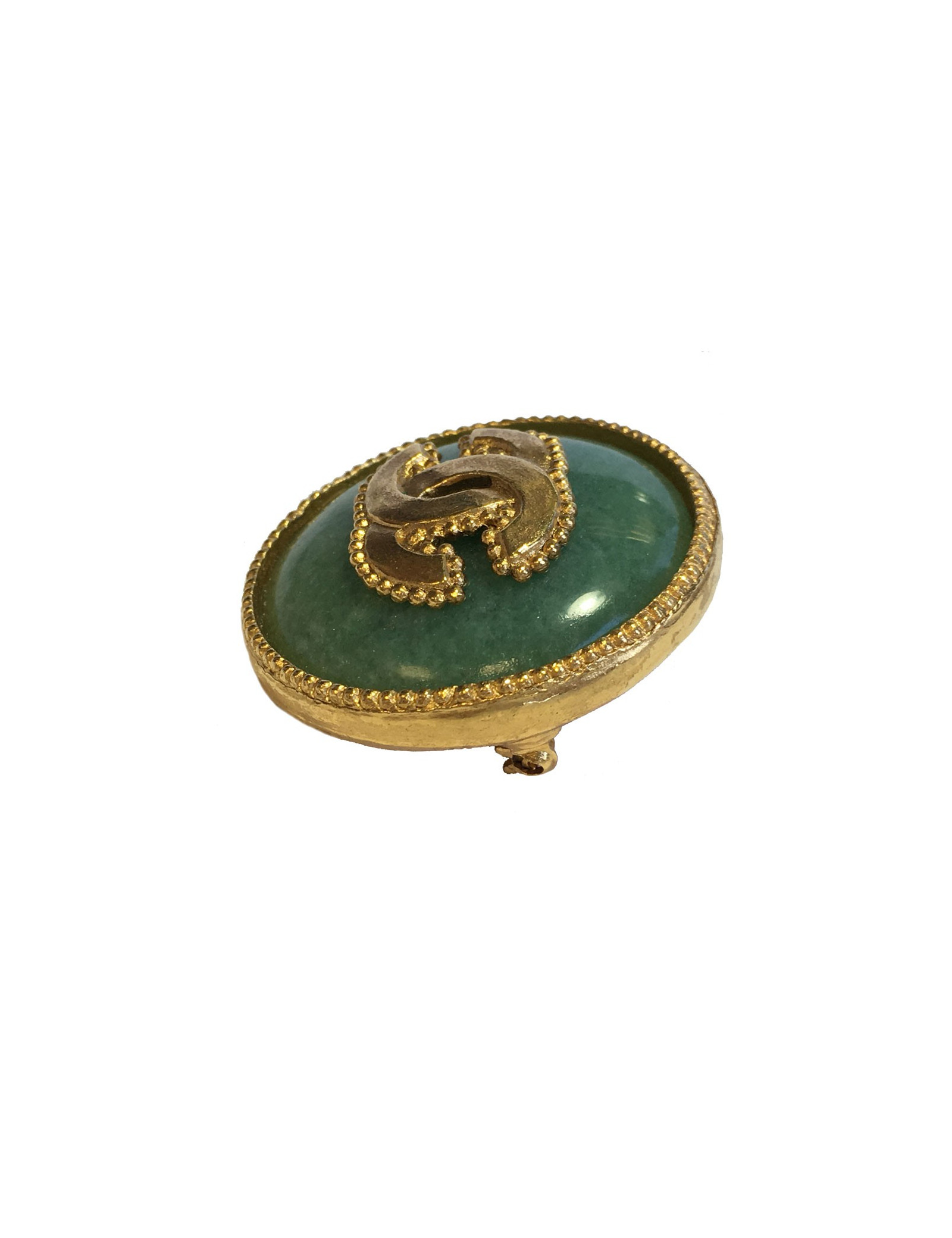 CHANEL round brooch in gilded metal and jade color semi precious stone