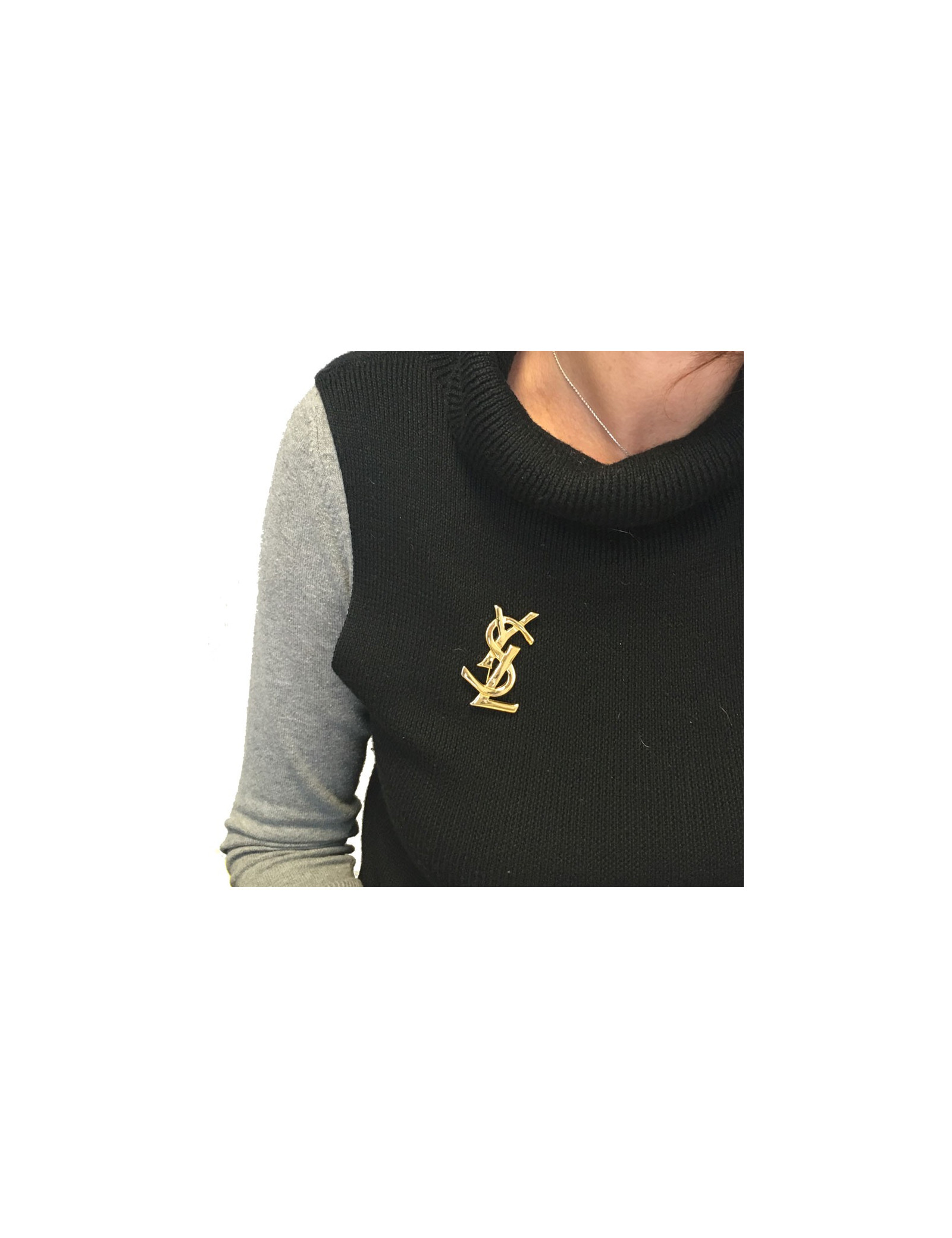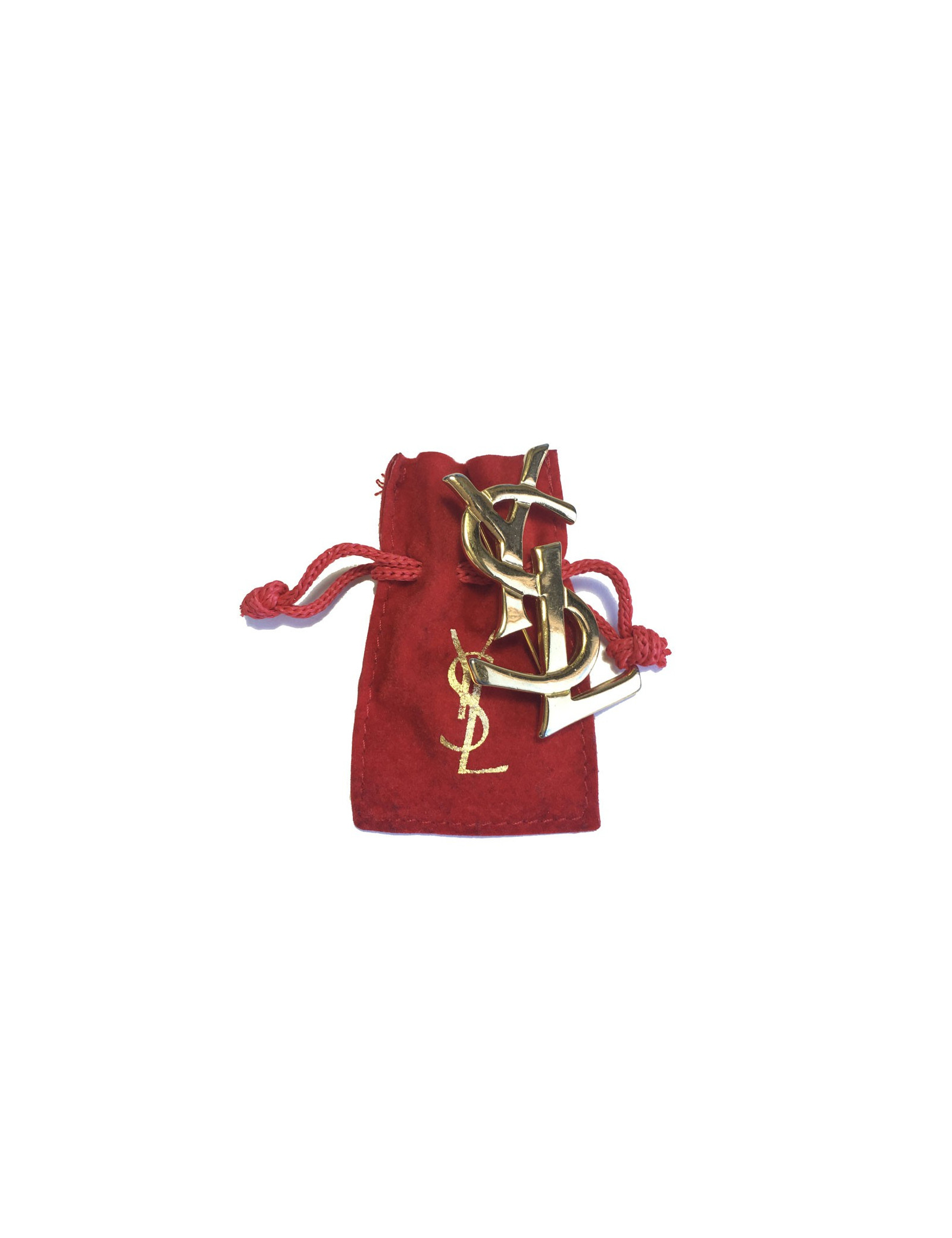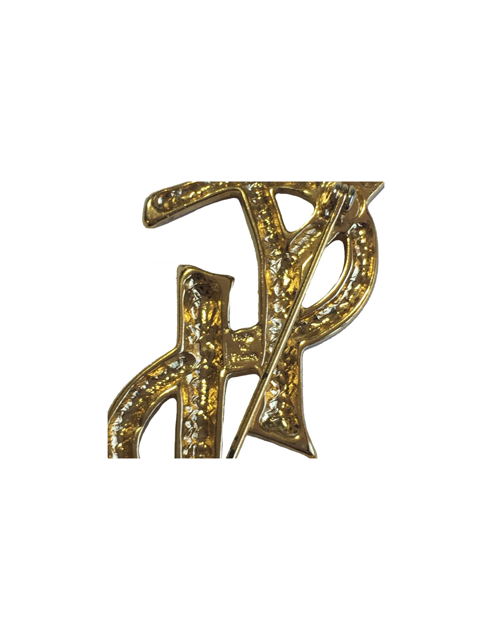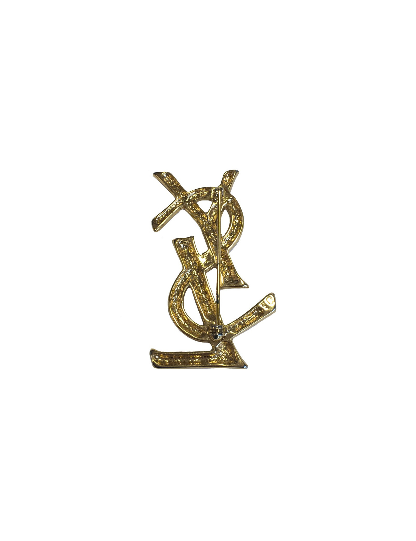 PINS-BROOCHES YVES SAINT LAURENT YSL Vintage gilded brooch SAINT LAURENT 24383 190.00 € YVES SAINT LAURENT YSL Vintage gilded brooch Condition: good (micro-scratches on the gilded metal)Materials: gold plated metal, rhinestonesColors: gold, transparentMeasurements: 5.5x2.8 cmDetails: Vintage Yves Saint Laurent brooch in gold-plated metal with rhinestones. Good condition, micro-scratches on the gilded metal. Very nice vintage jewel. Delivered... Add to cart