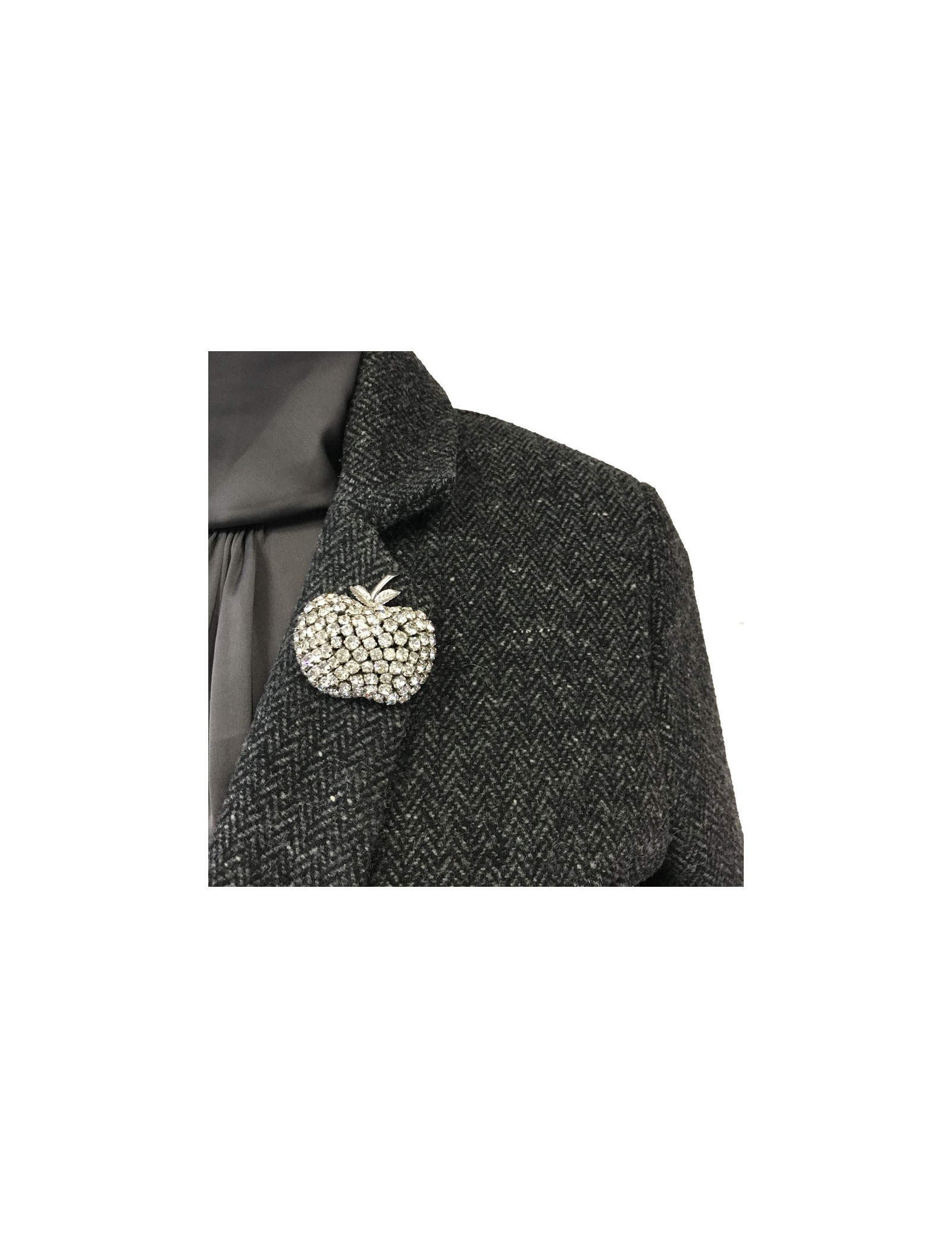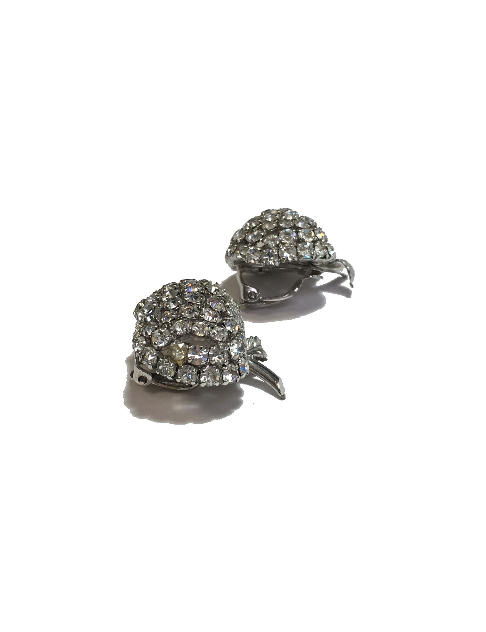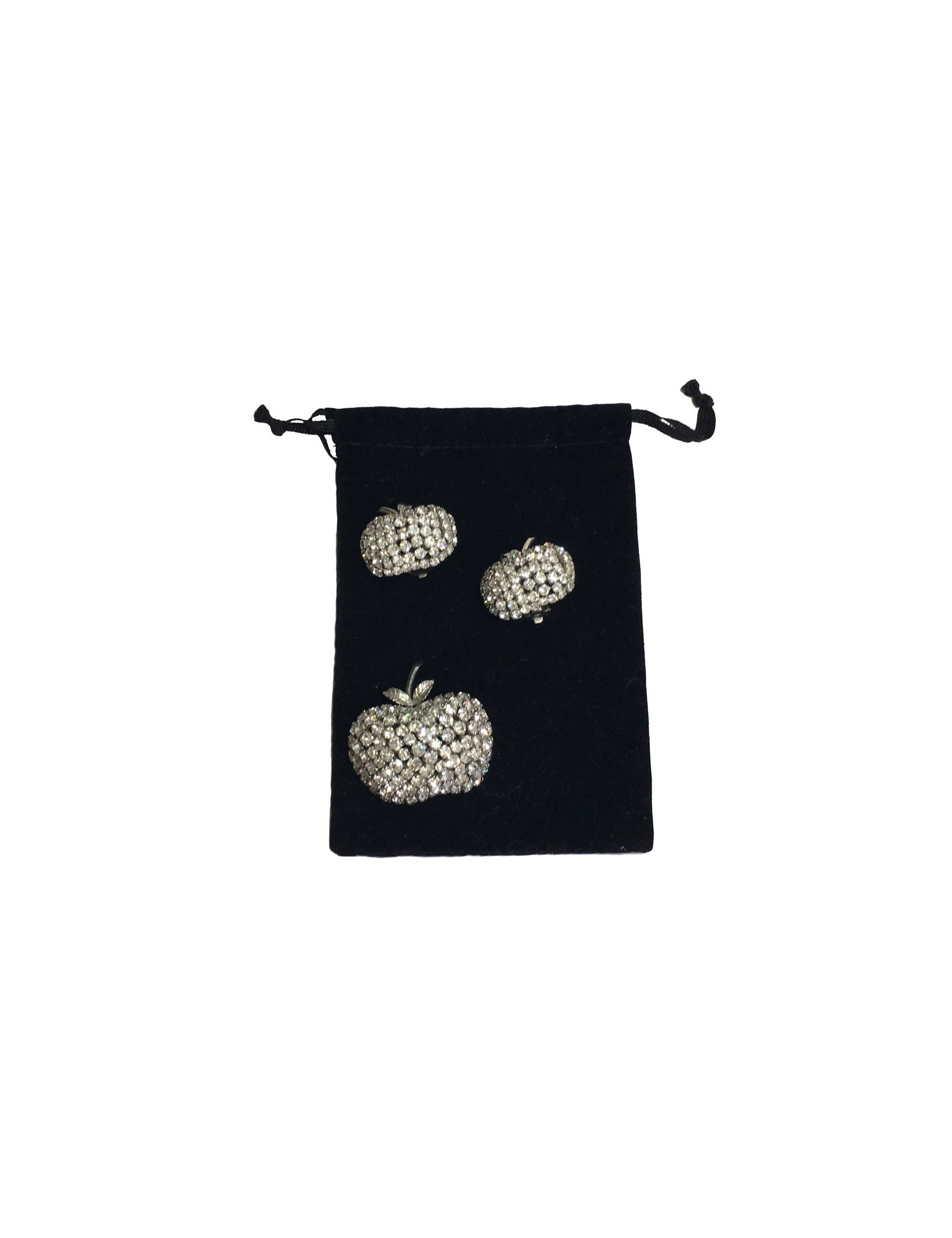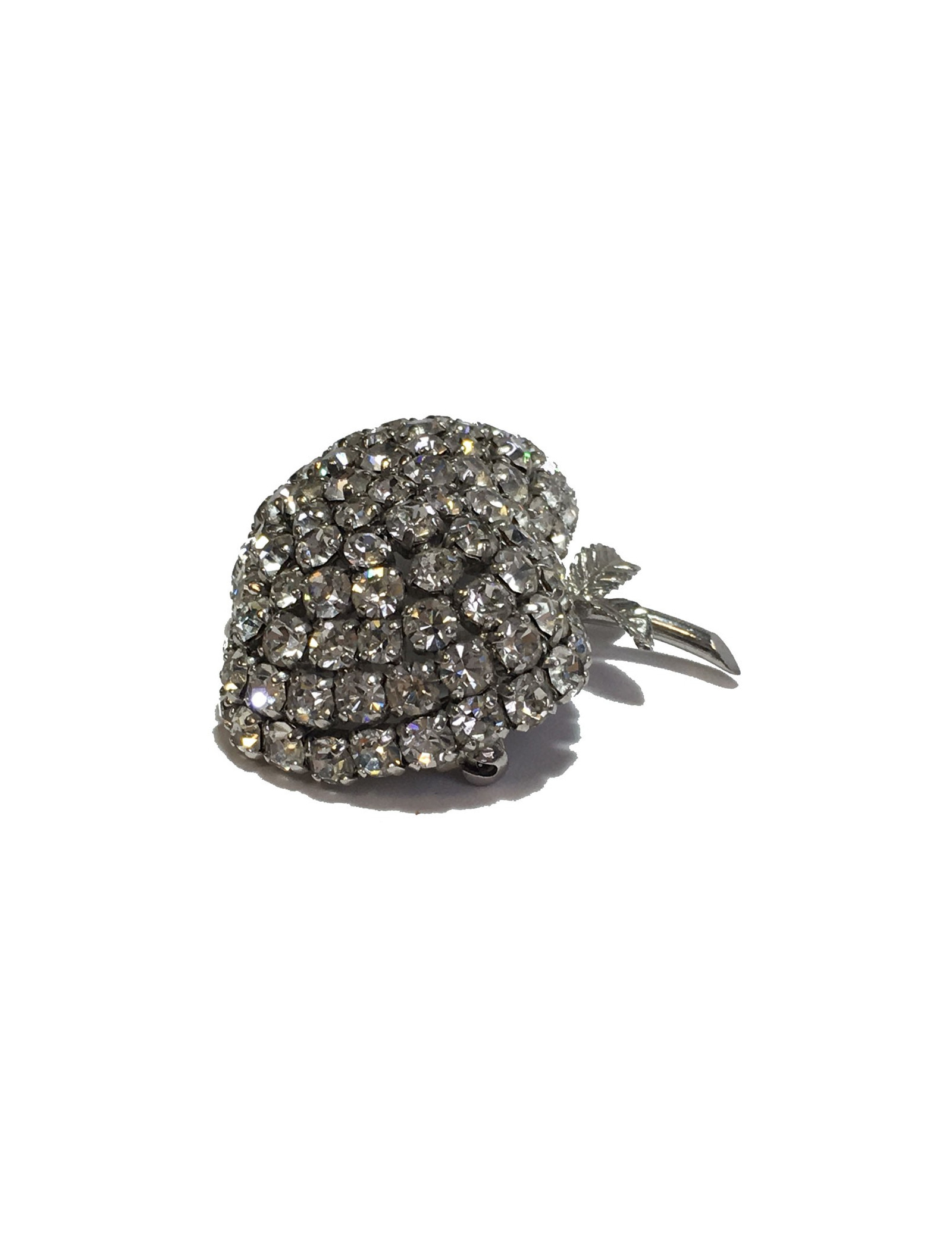 Glamour! Très belle parure CHRISTIAN DIOR comprenant une broche en forme de pomme tout en strass et métal argenté et les boucles d'oreilles clips assorties.