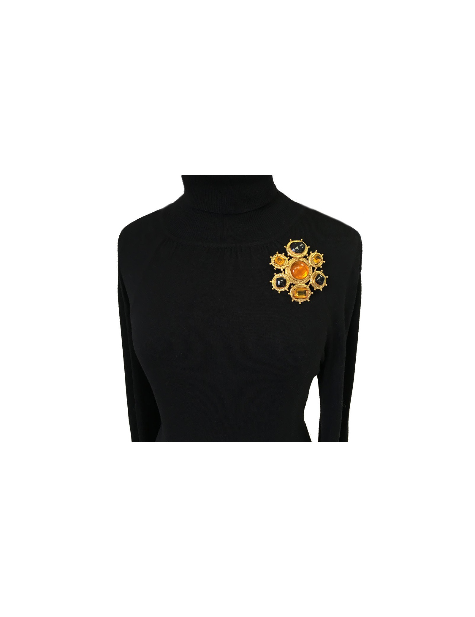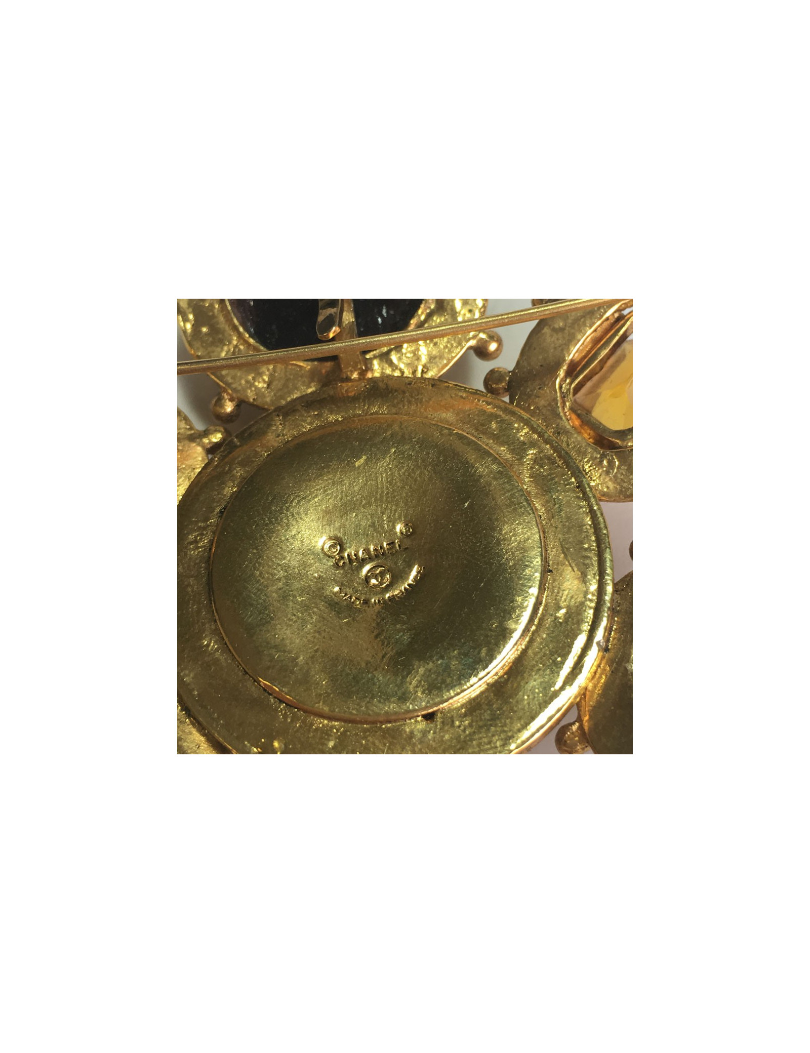 CHANEL couture vintage brooch in gilt metal and molten glass