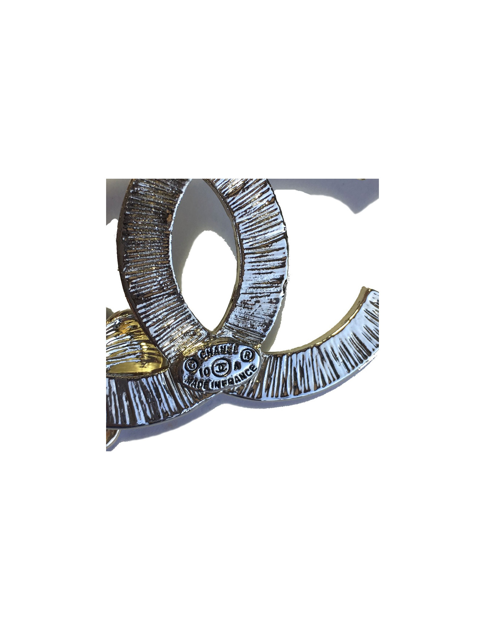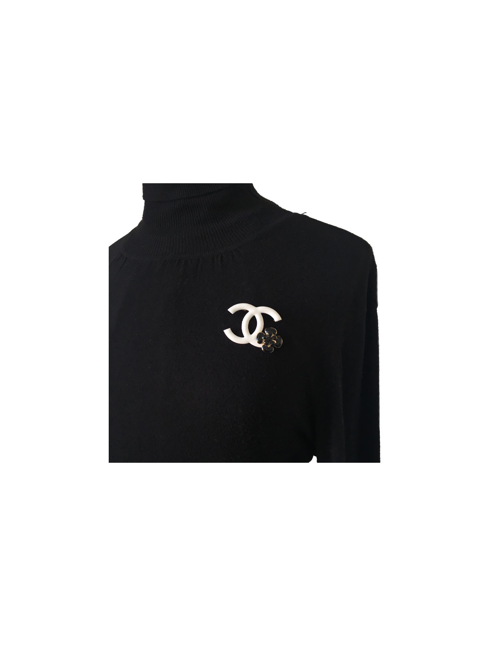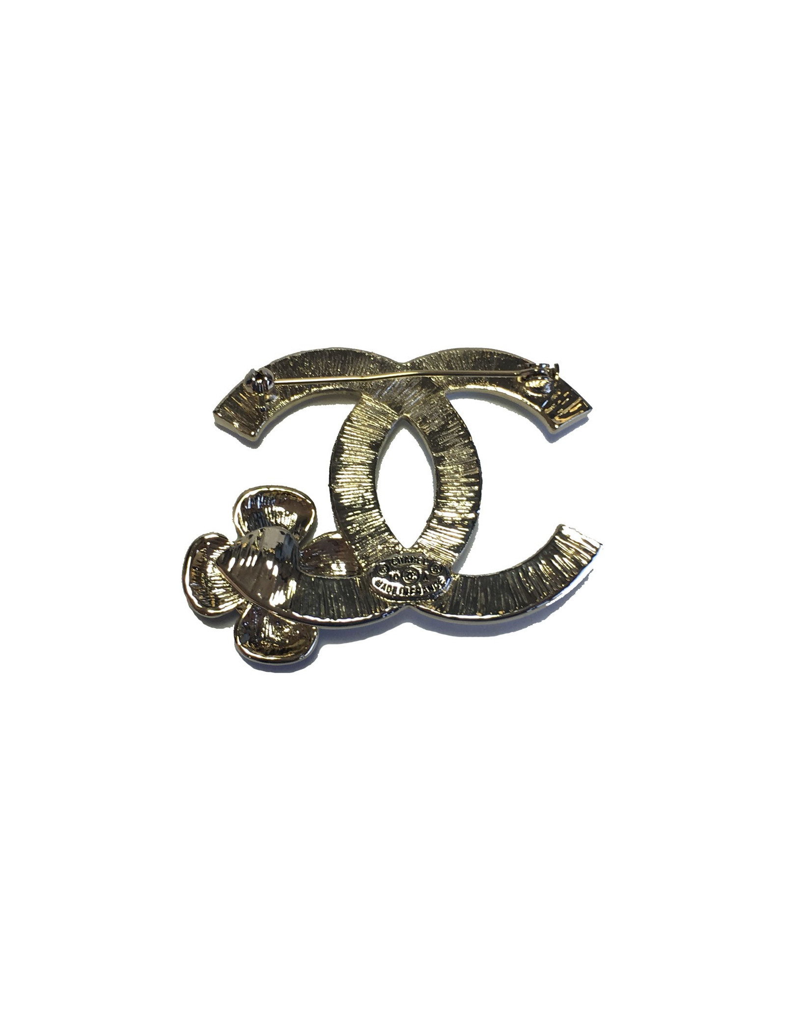 PIN CHANEL double C in white enamel and Camellia in black enamel