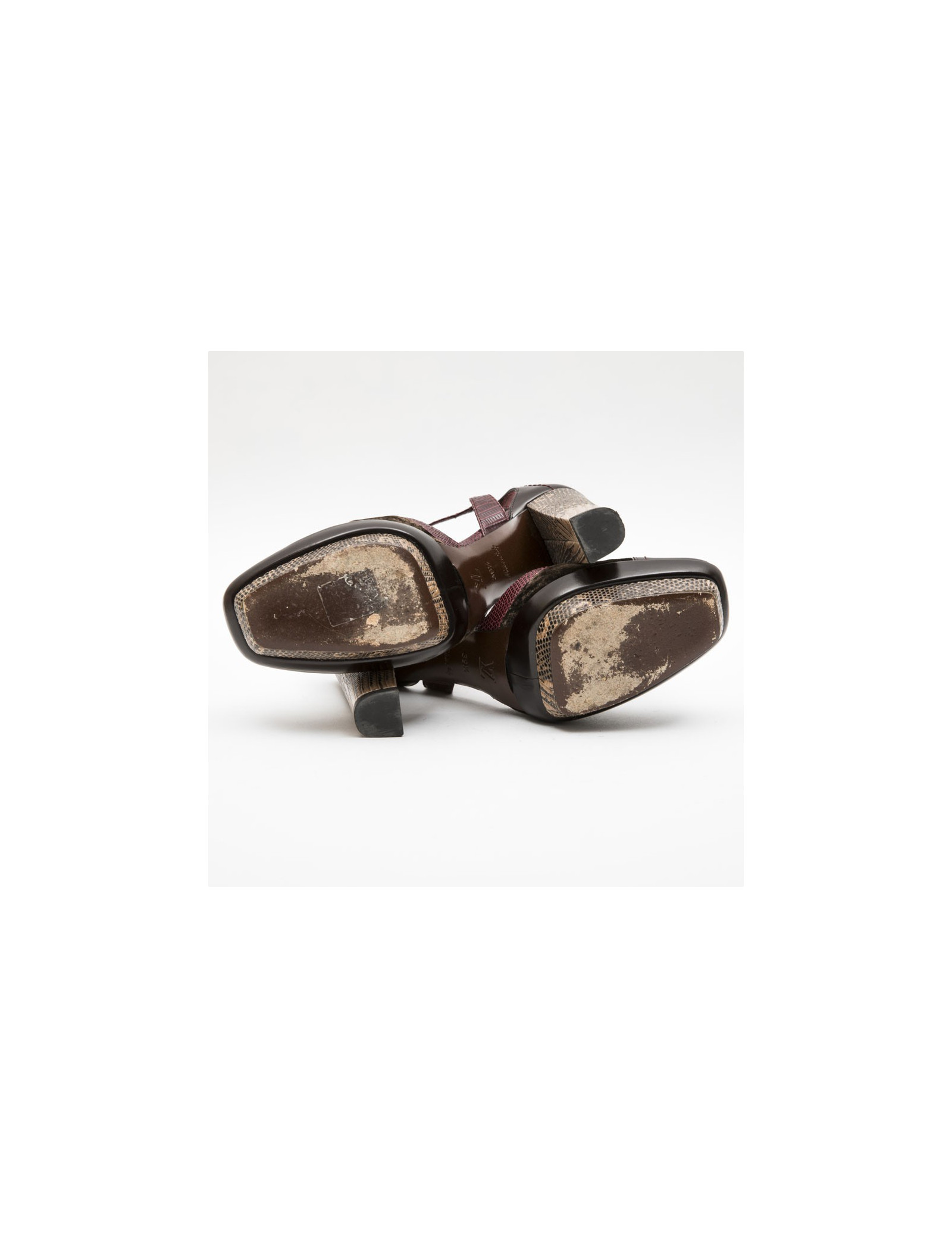 Last items in stock PUMPS - WEDGES T38 NICHOLAS KIRKWOOD boots NICHOLAS KIRKWOOD 15060 80.00 € Nicholas Kirkwood T 38 boots iridescent brown leather. The Interior of the shoe is beige. The boots are in very good condition. Heel height: 11 cm - interior length: 24.5 cm - width of the outer sole: 8 cm Manufactured in Italy and delivered in a box of another great brand. Add to cart