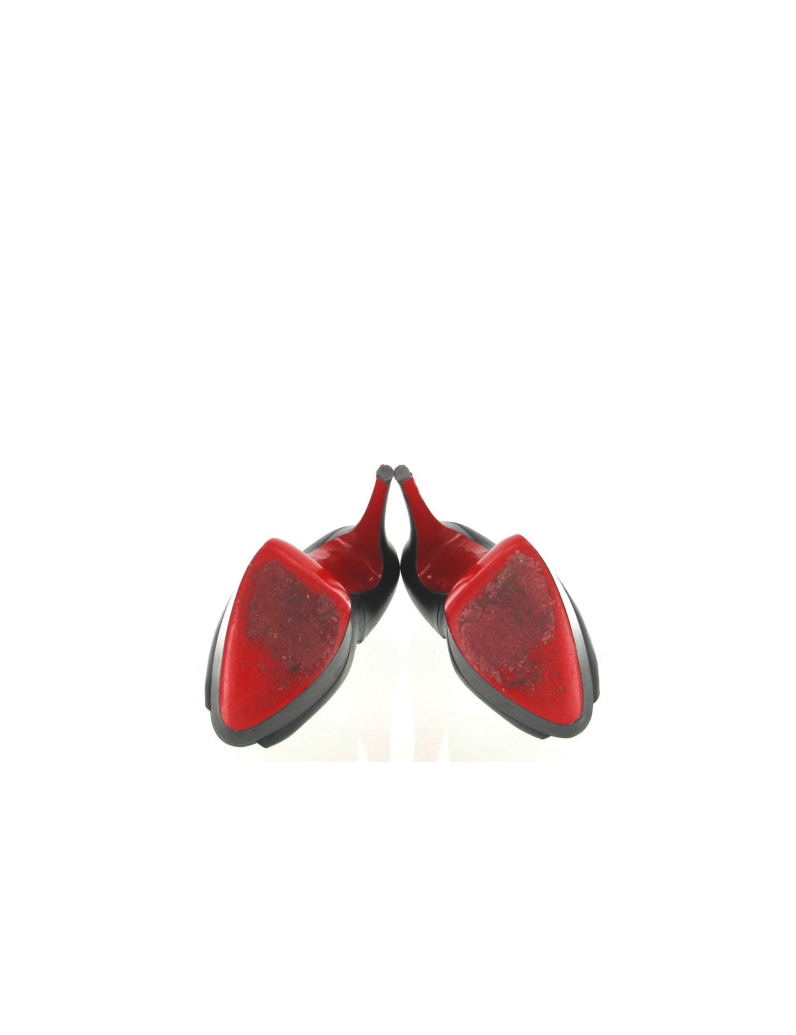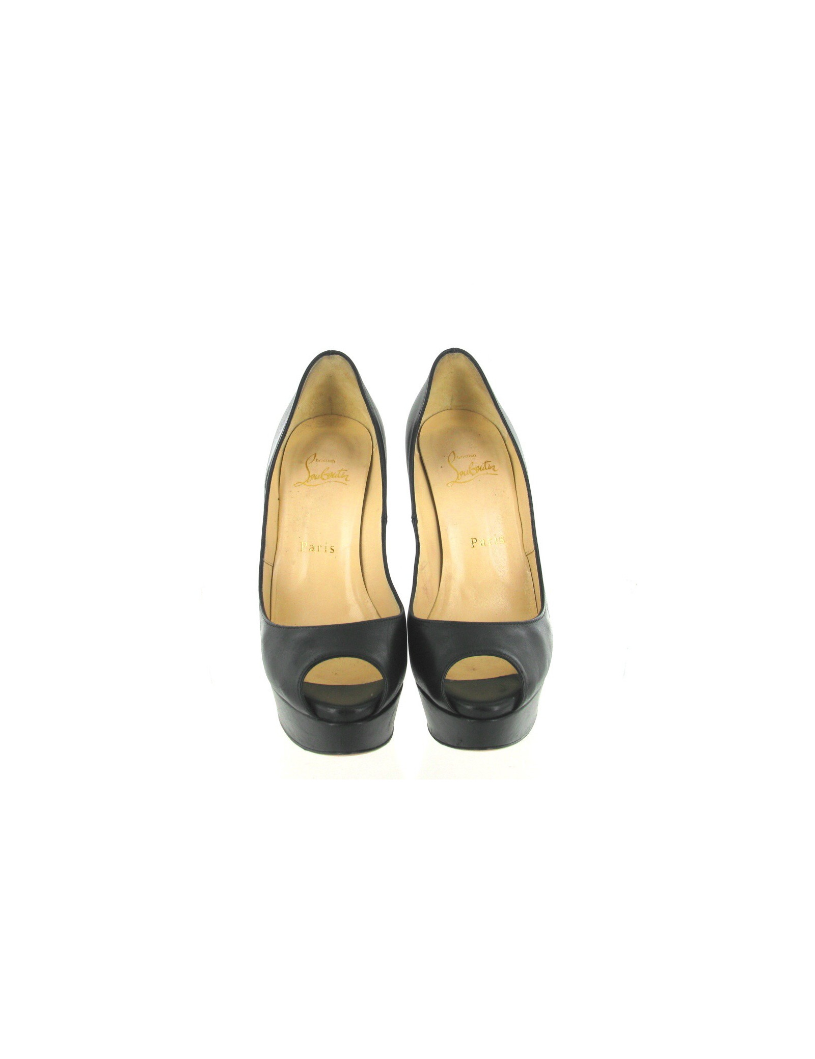 Pumps LOUBOUTIN T37 black leather. The shoe has a platform at the front of the foot and there is an opening on the tip of the foot.