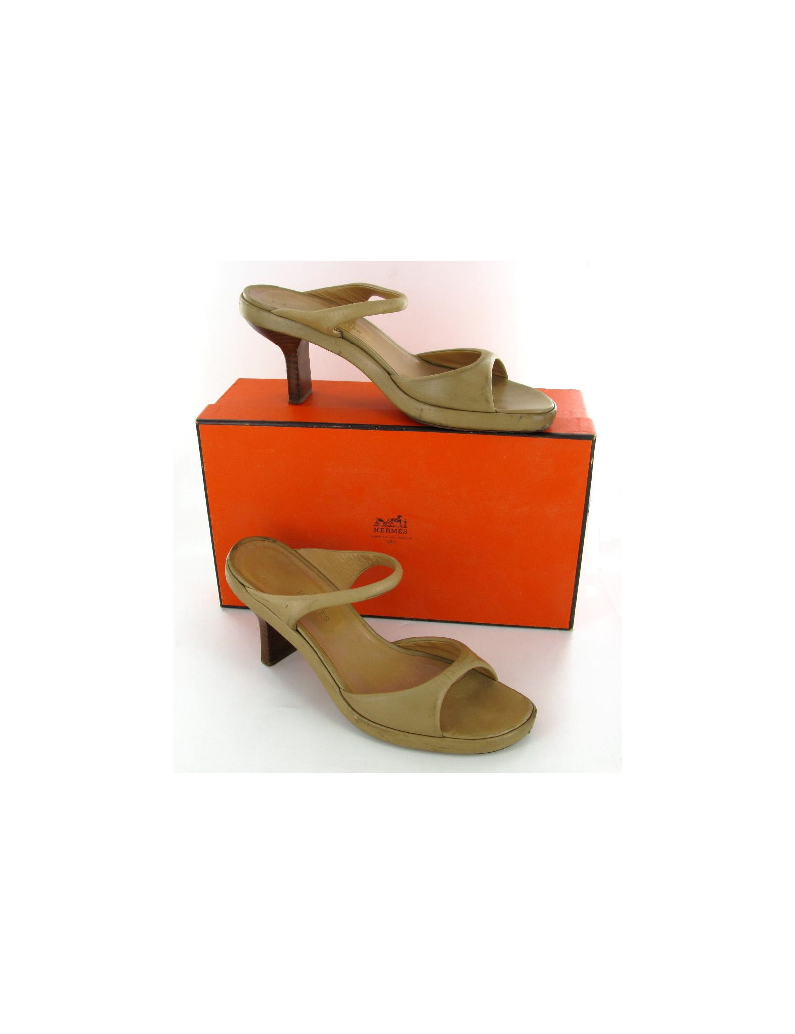 T 36.5 HERMES beige leather mules. They are ideal for the summer. "Hermès Paris" is inscribed on the inner and outer sole. Light marks on the leather, especially on the front sole of the shoe. Worn few times, they are in good condition. Supplied in their original box.