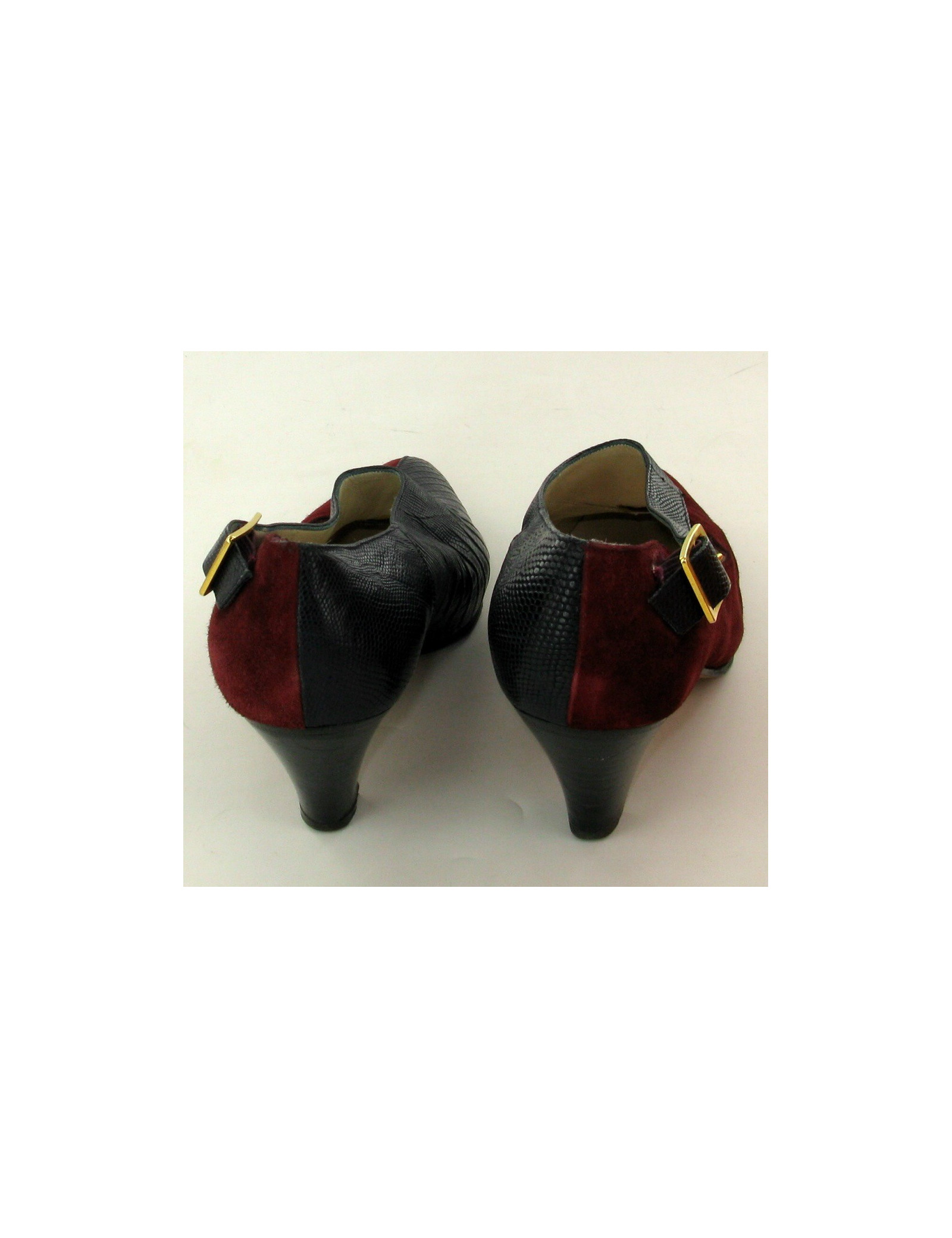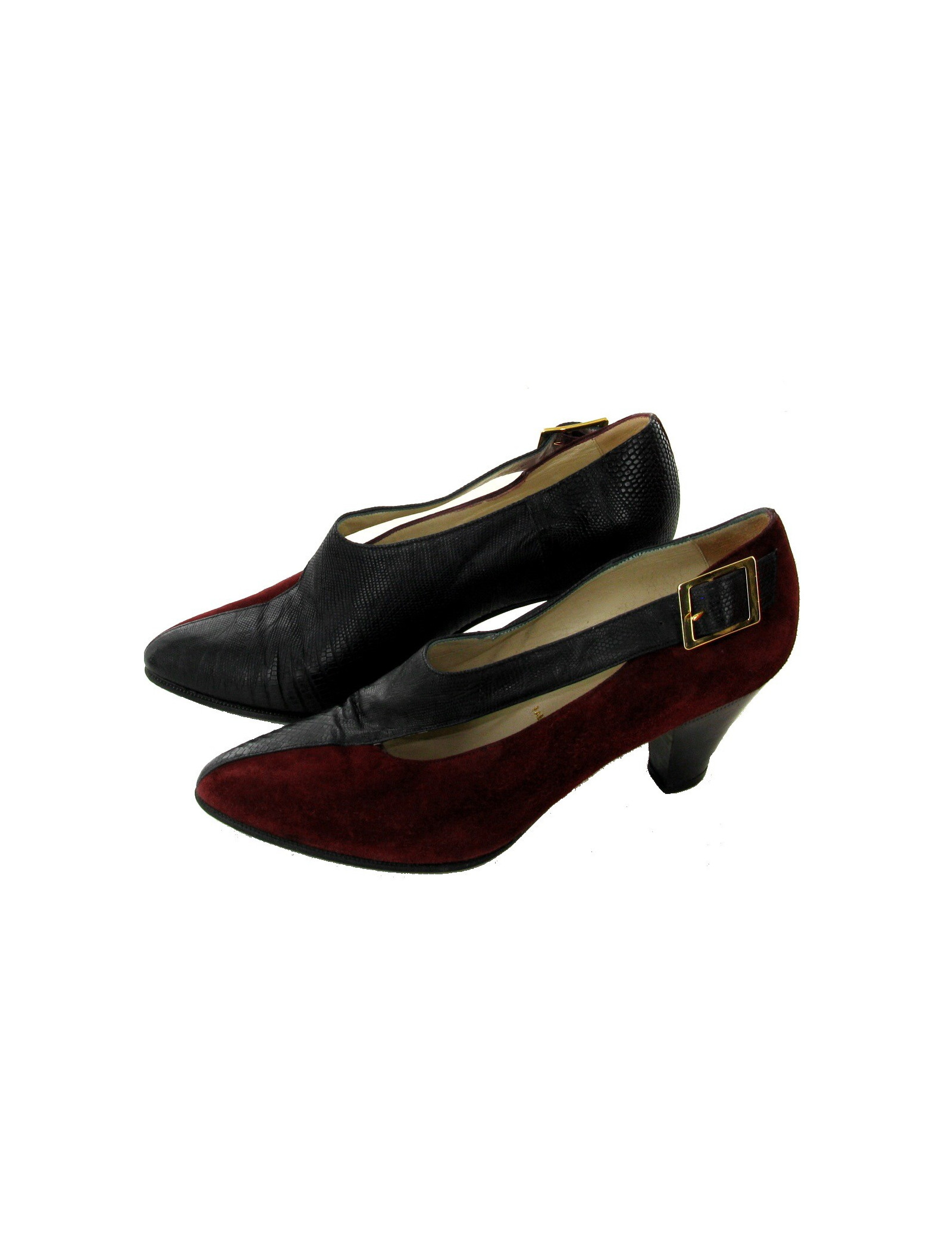 Vintage HERMES pumps in Maroon suede and Navy Blue lizard T36.