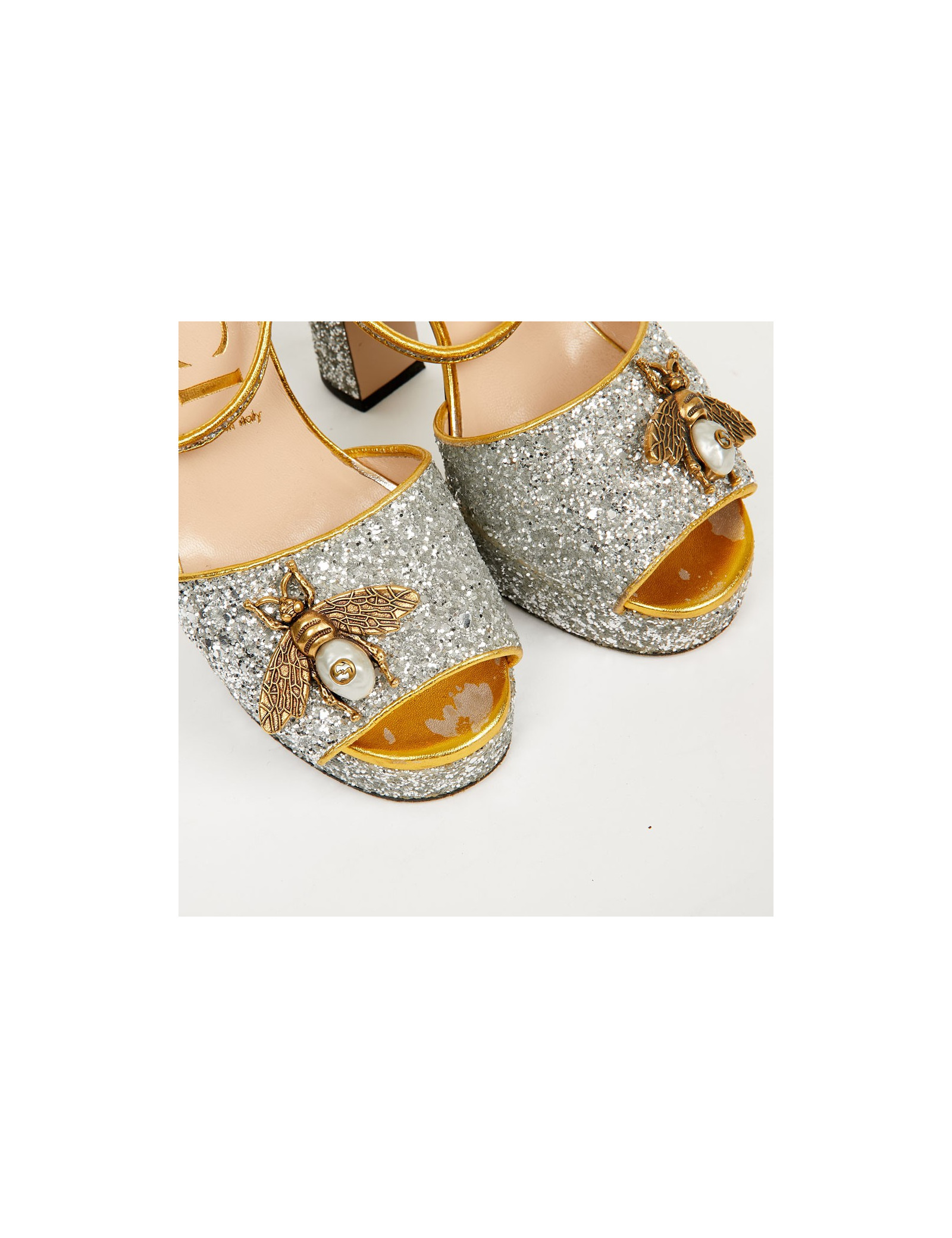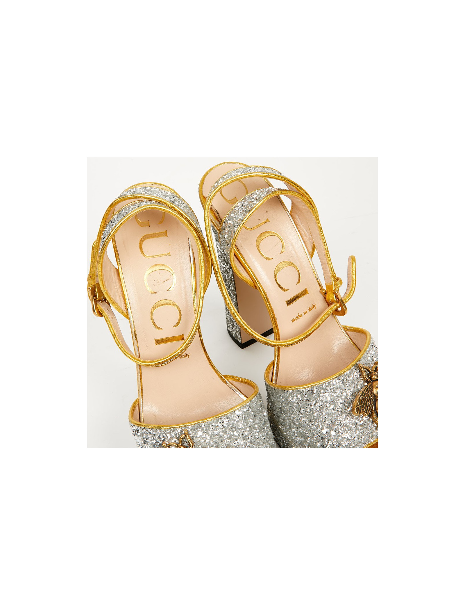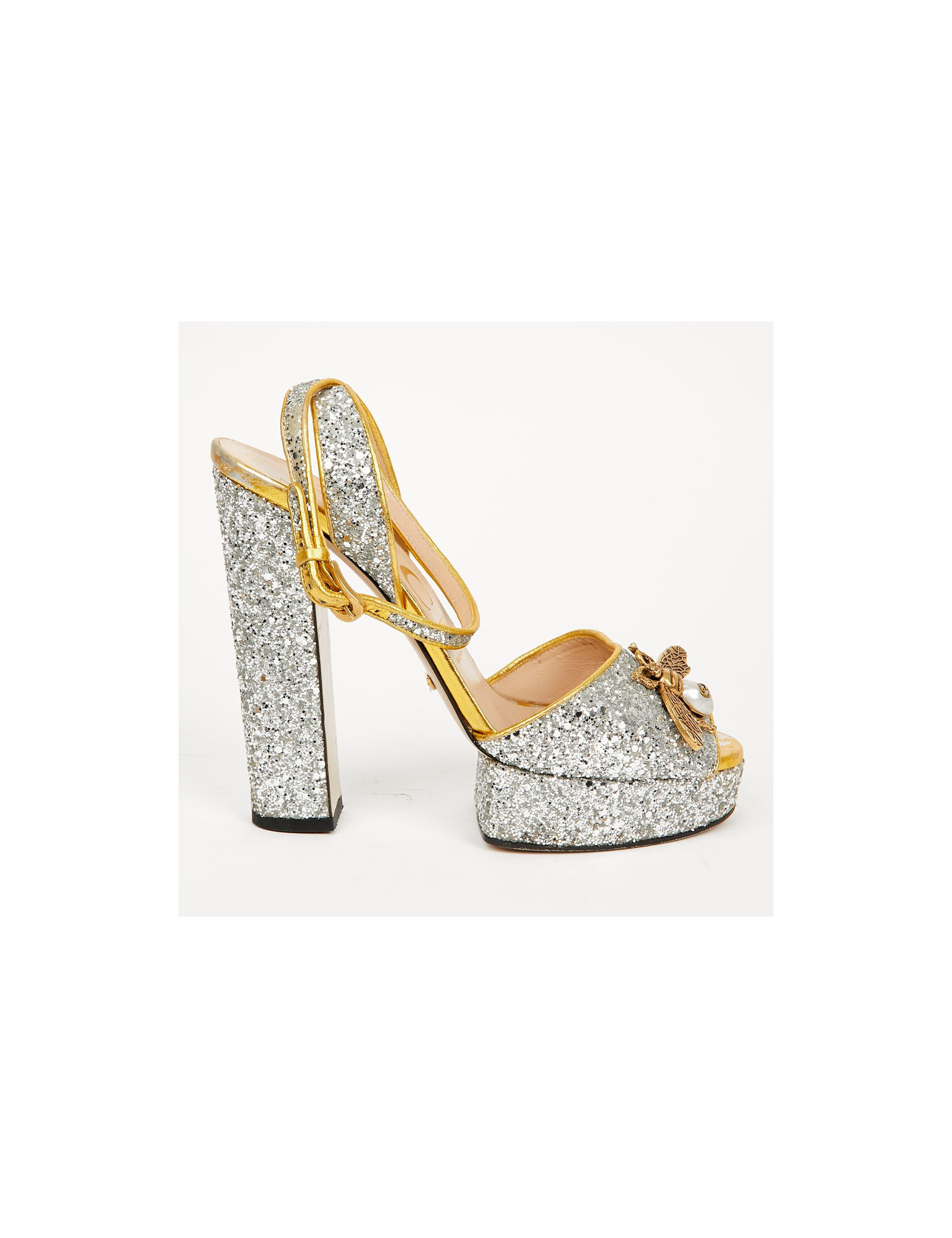 Sandales GUCCI T 38,5 brillantes argent