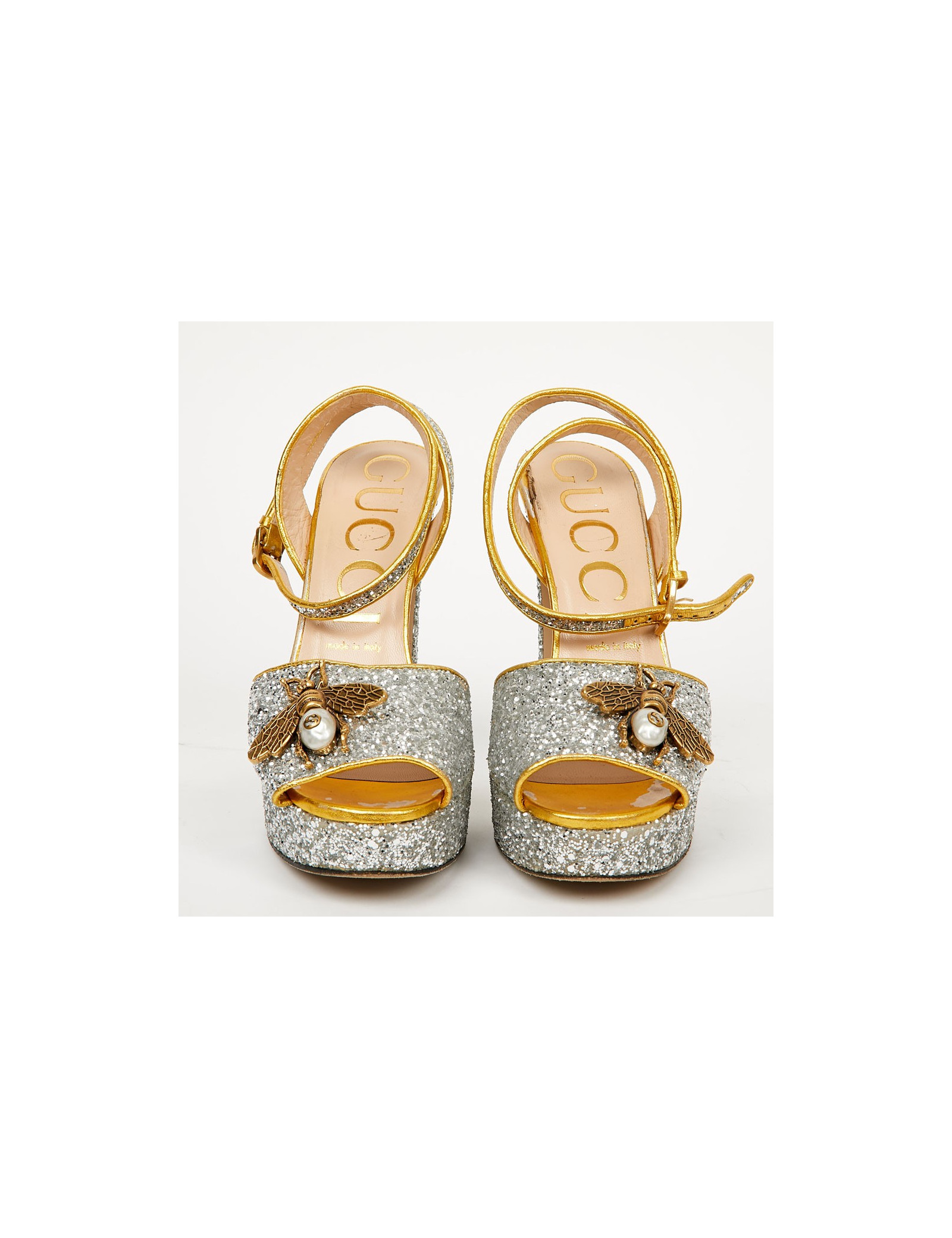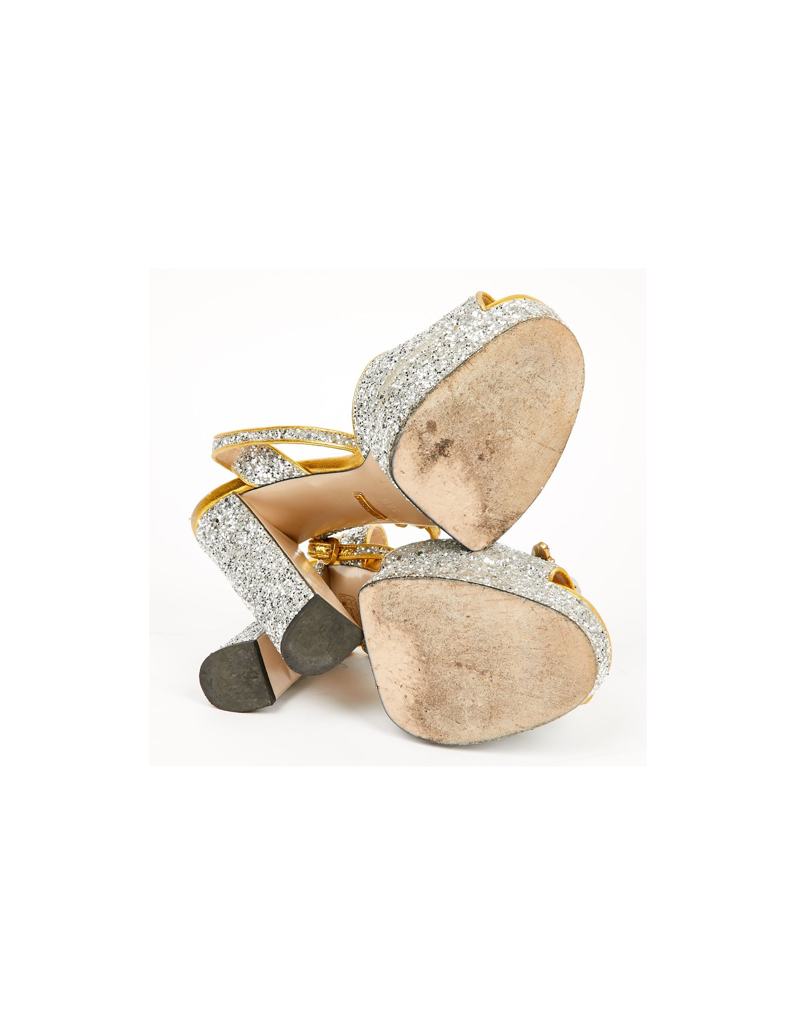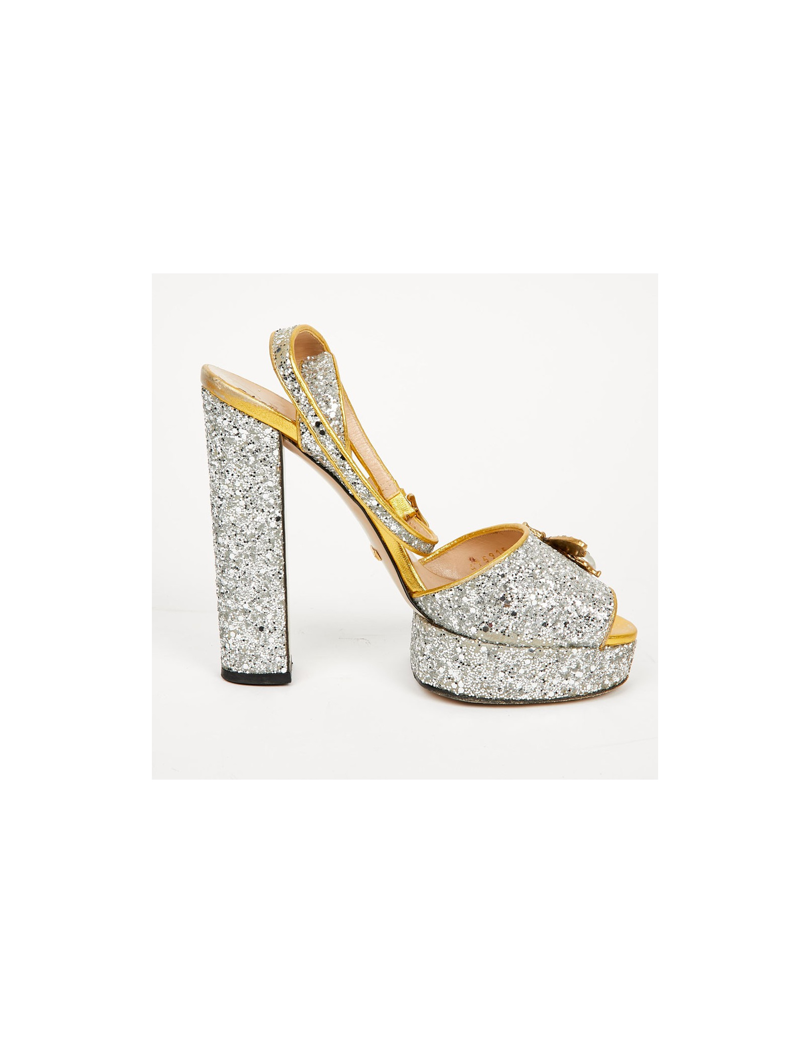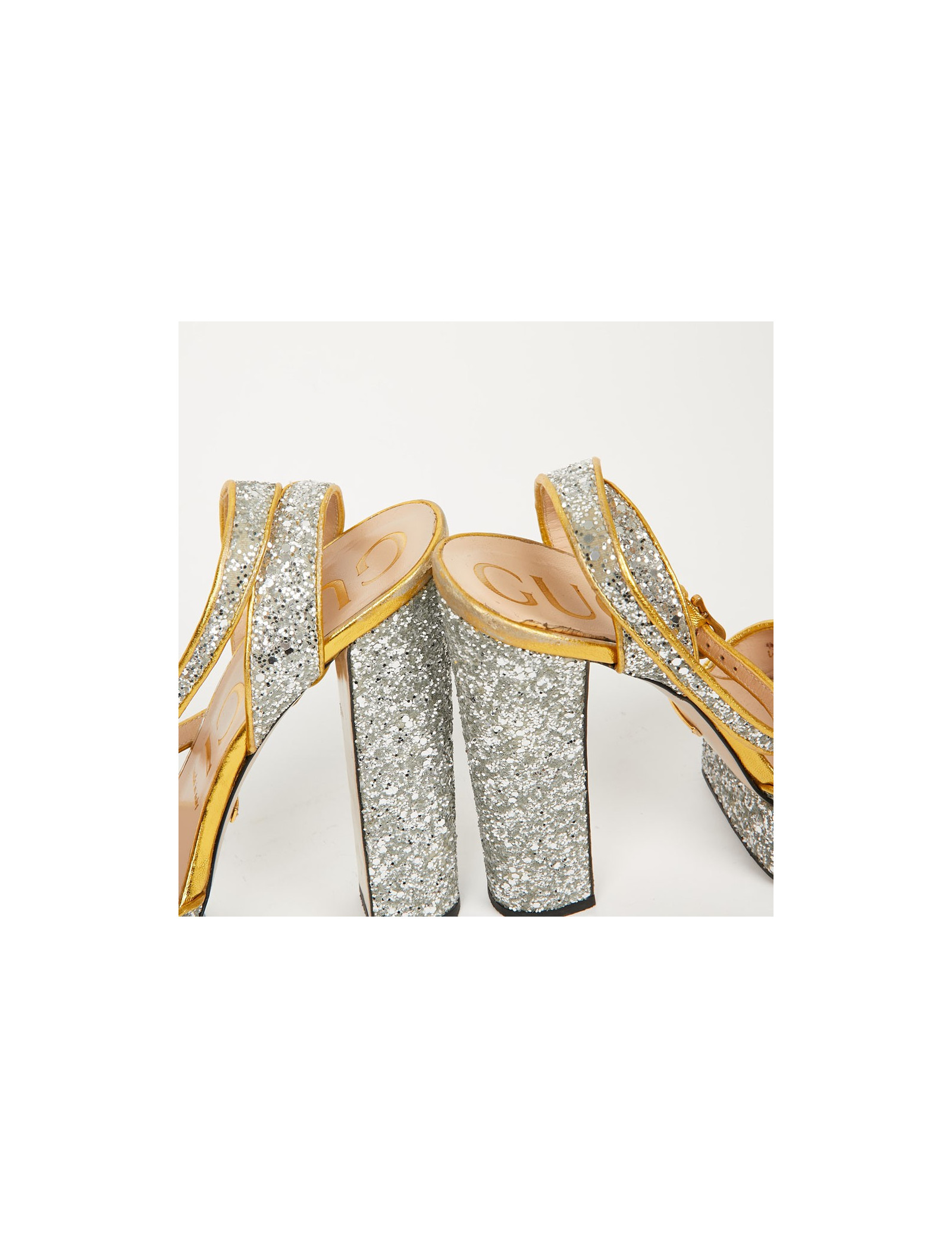 Sandales GUCCI T 38,5 brillantes argent