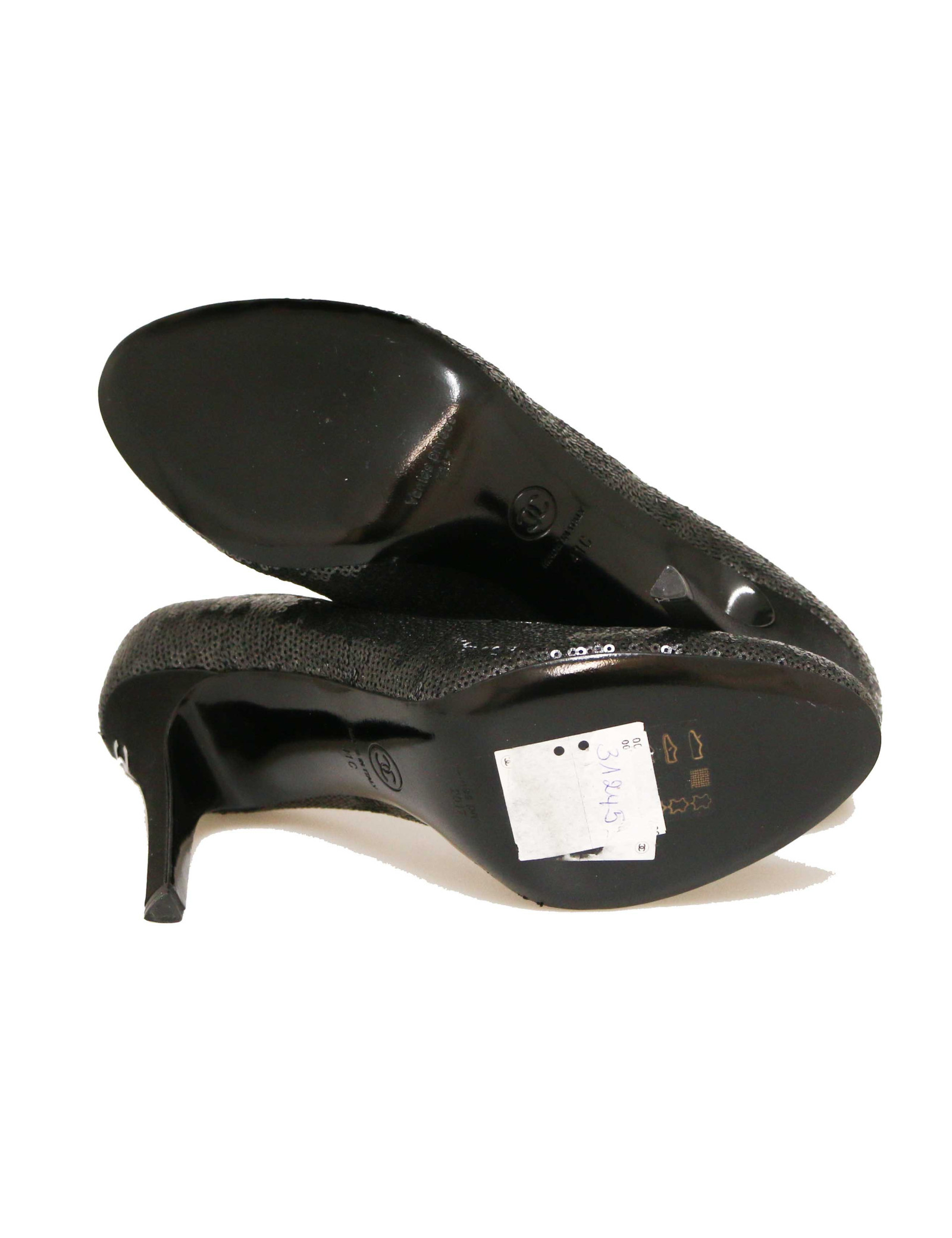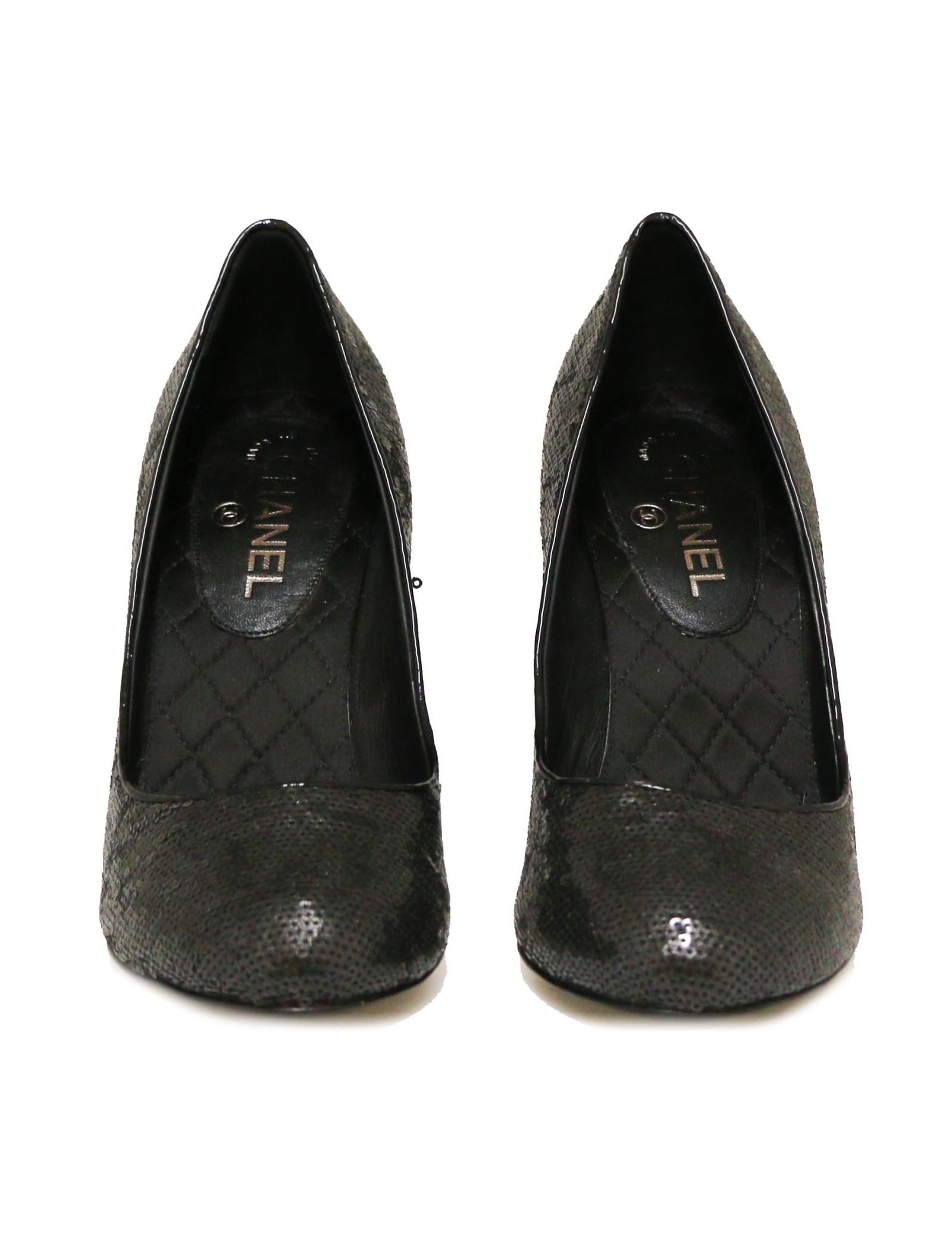 Sold PUMPS - WEDGES CHANEL shoes T 39.5 black leather and silver chain CHANEL 20225 390.00 € The House of Chanel in black leather and silver chain pumps. Open end. Size 39.5. In very good condition. Slight wear to the soles. Height heel: 8,5 cm, length Insole: 25 cm.p > will be delivered in their original Chanel box View