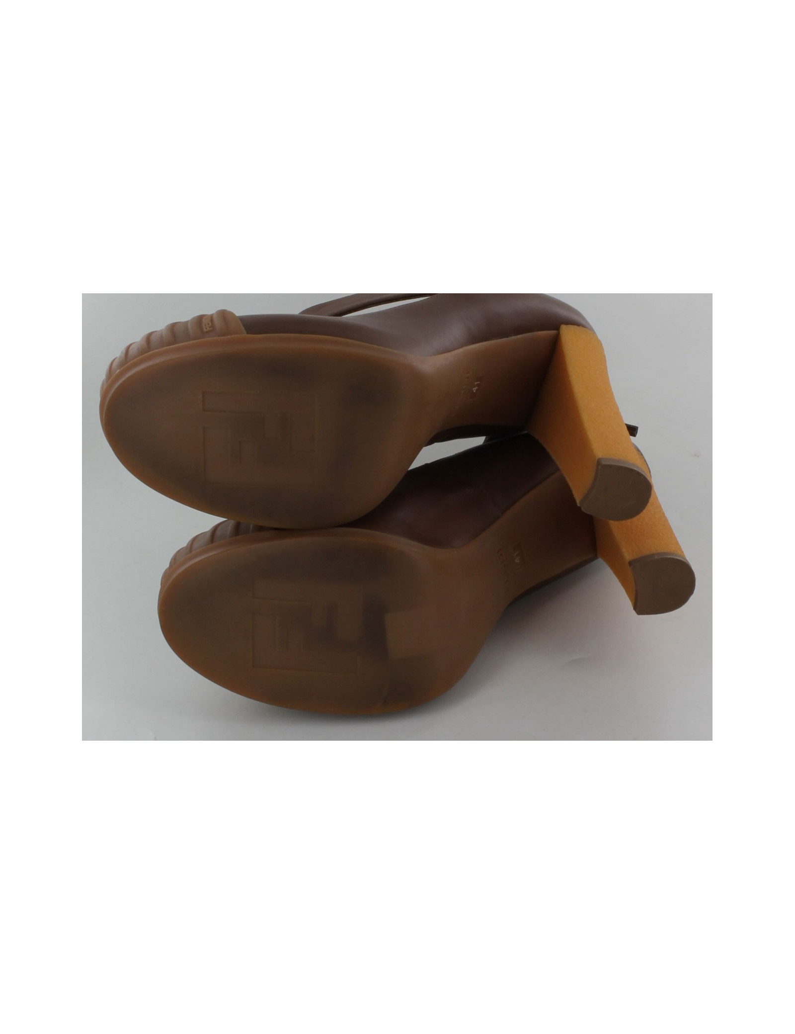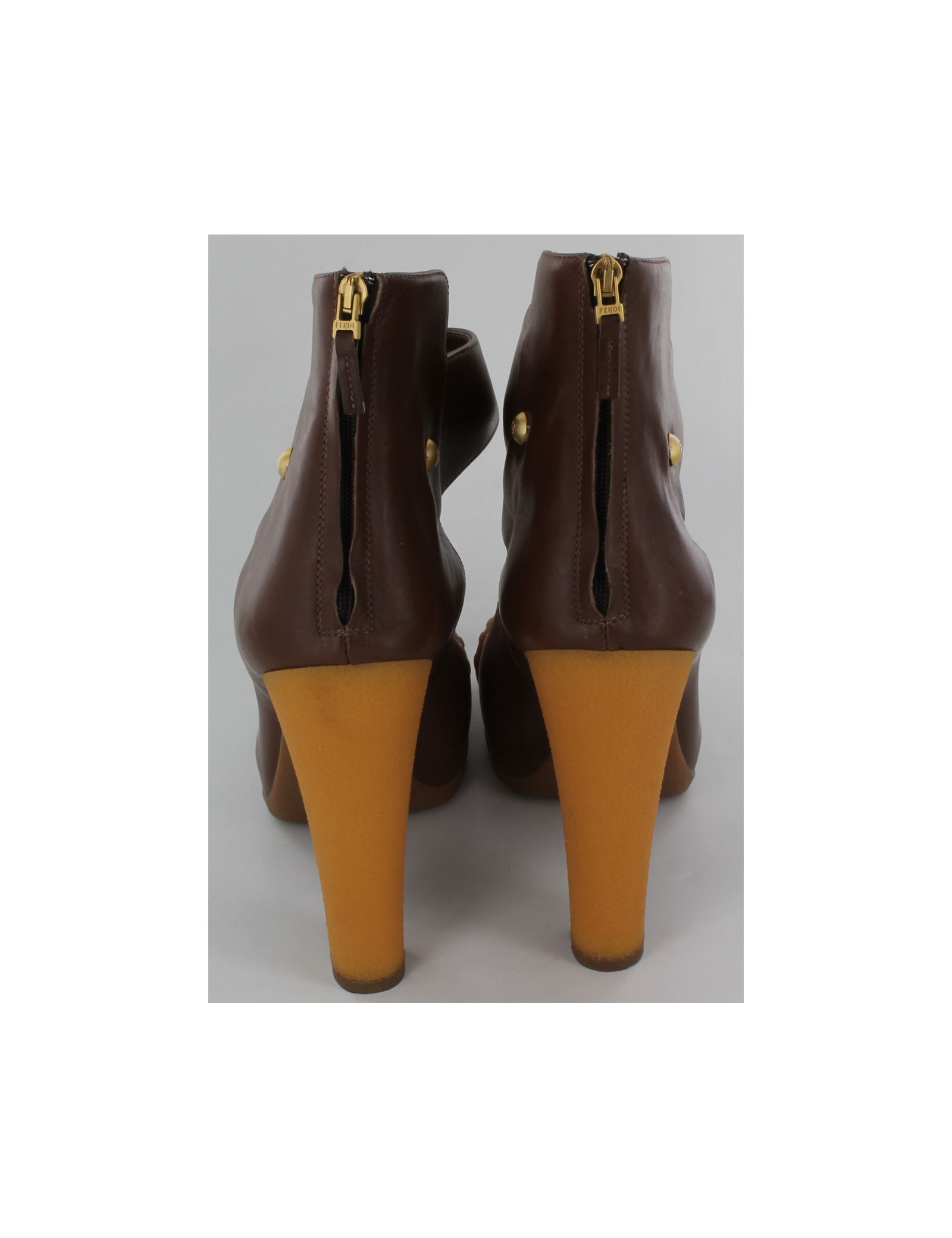 Open ankle FENDI brown leather. Size 41. Rubber sole with tip reported rubber, slightly embossed. Buckle leather at the level of the ankle. Two buttons gold with the initials "FF" from each side of the ankle. Closure with a zip at the back of the ankle.
