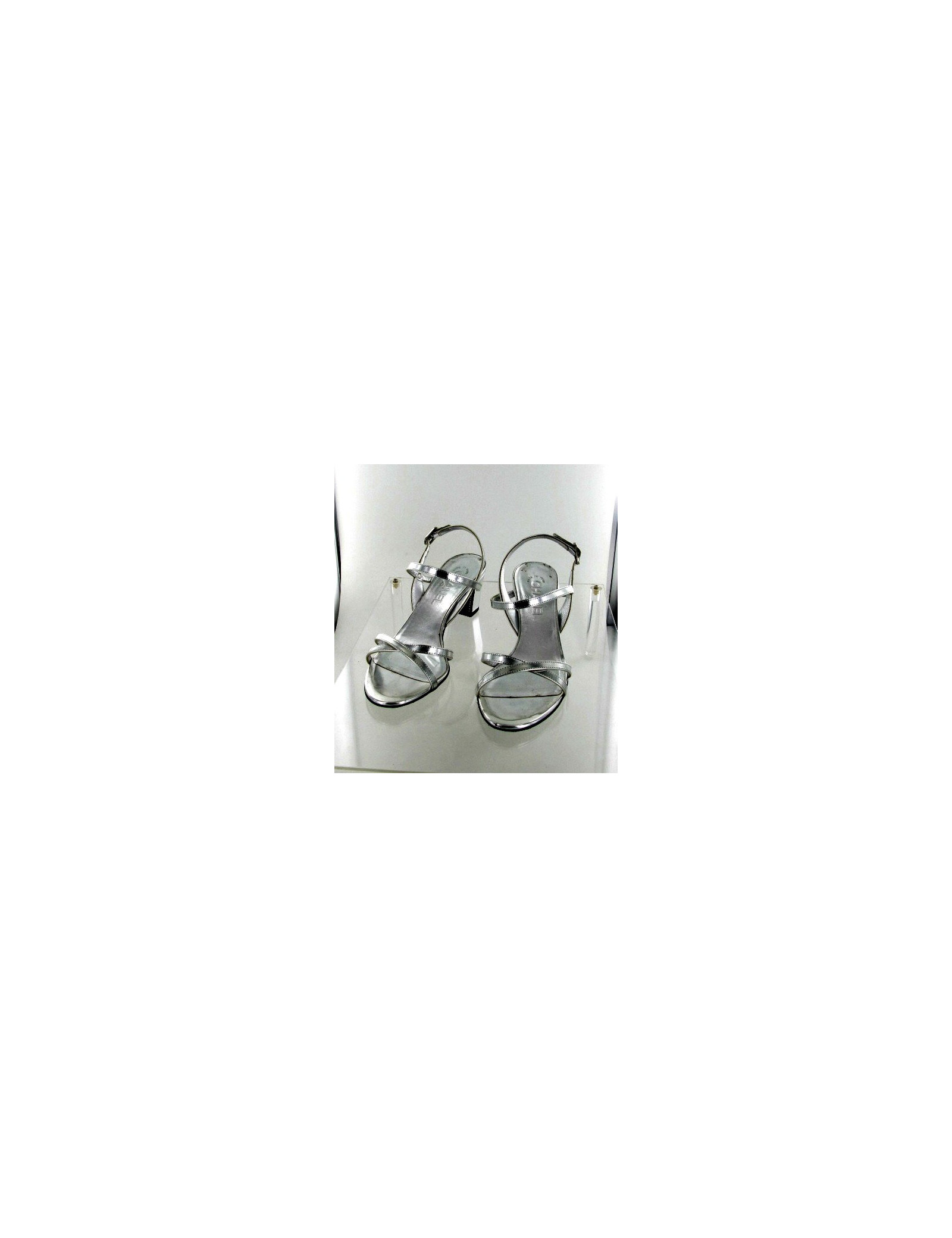-350.00 € Last items in stock PUMPS - WEDGES CHANEL t 37 in silver python sandals CHANEL 31602 350.00 € 700.00 € Sandals silver scales Python 37 CHANEL; Heel height: 9 cm, heels, inside length of the sole in liege 24 cm, outer width of the footing 7. 5 cm. There is a double "c" on the back of the shoe silver ring and the heel is mix of a big black Mole.They will be delivered in their box Chanel. Add to cart