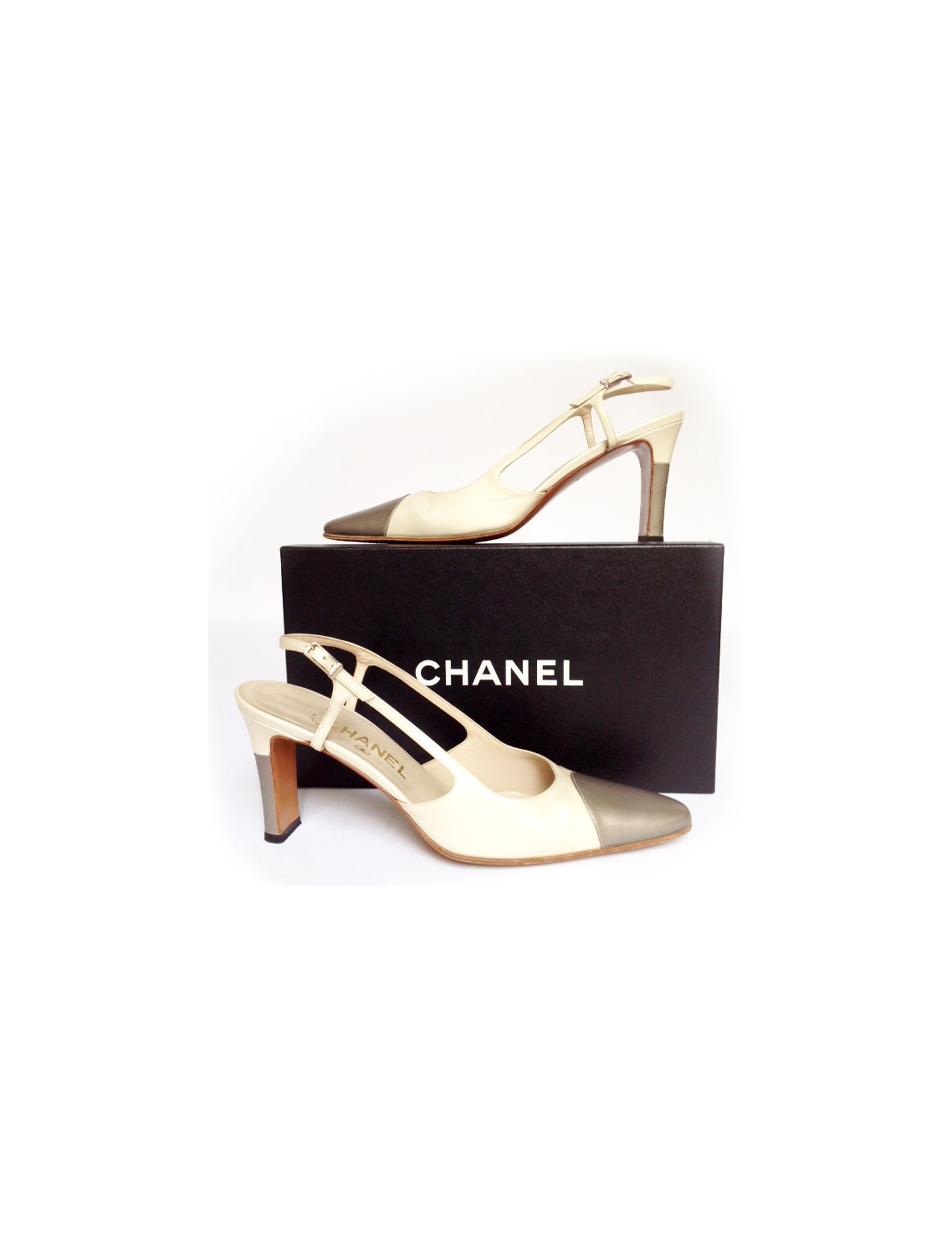Pumps of the House two-tone Chanel beige and grey size 39.5