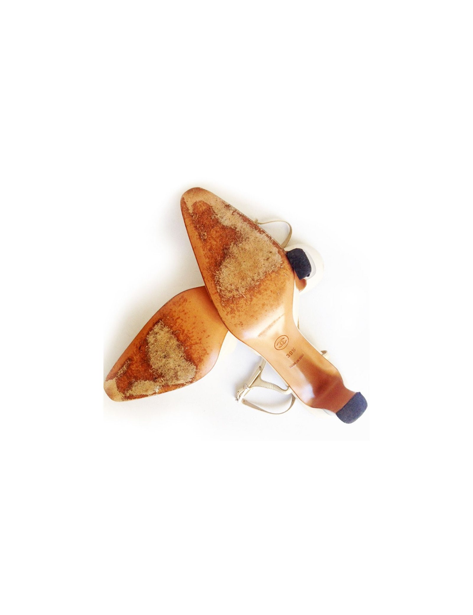 In good condition. A small mark at the level of the left heel. The leather is slightly pleated at some locations.