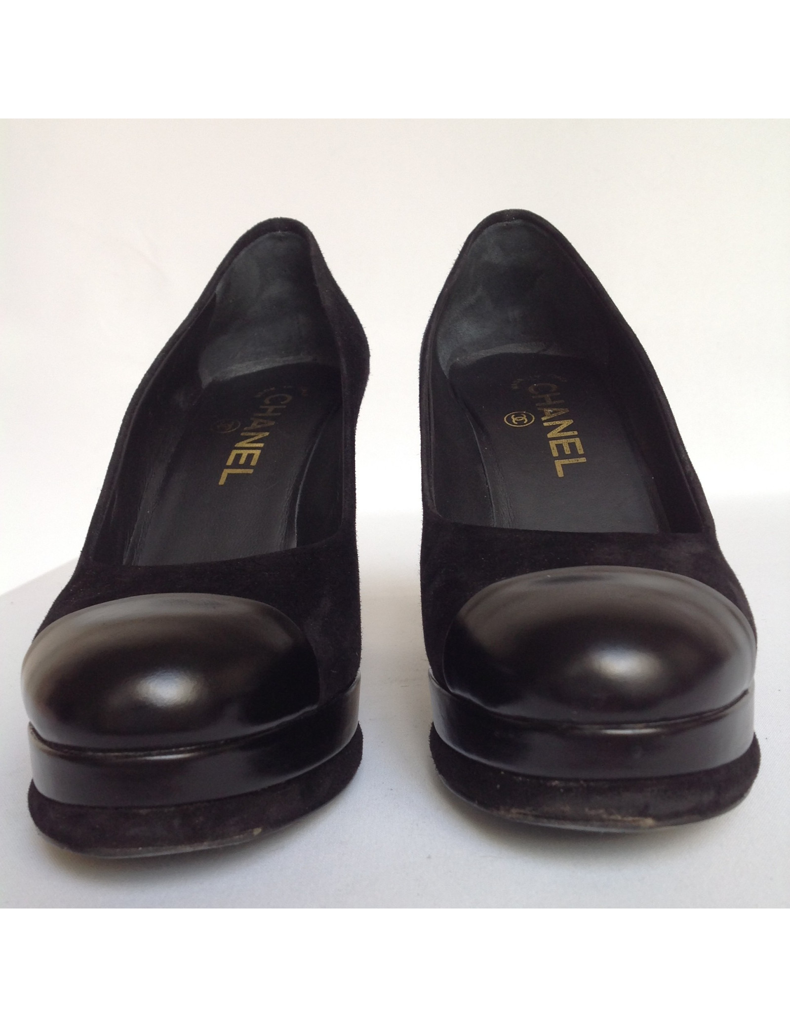 CHANEL T37 suede and leather pumps