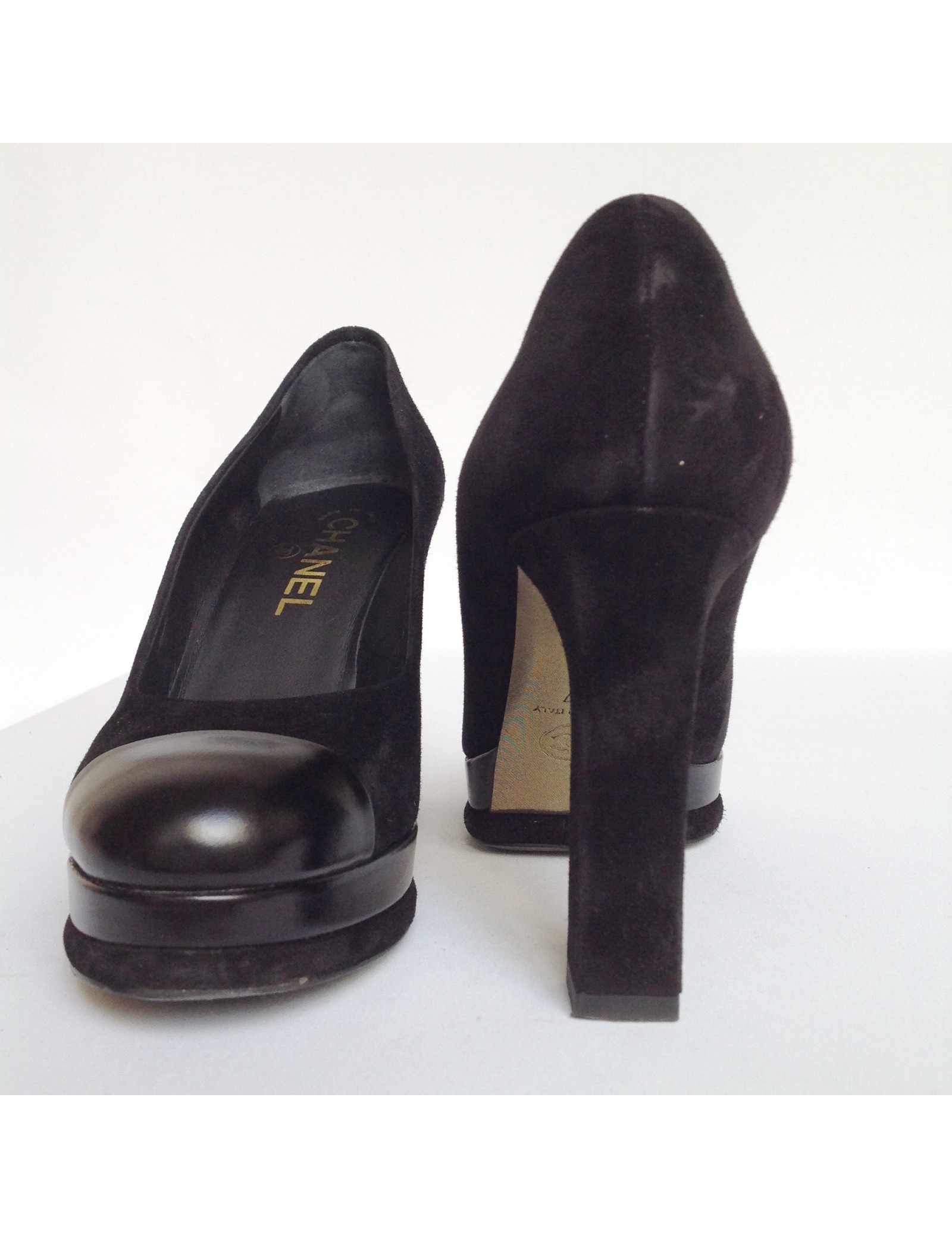 Pumps black Chanel T 37 in bi-material in suede and leather.