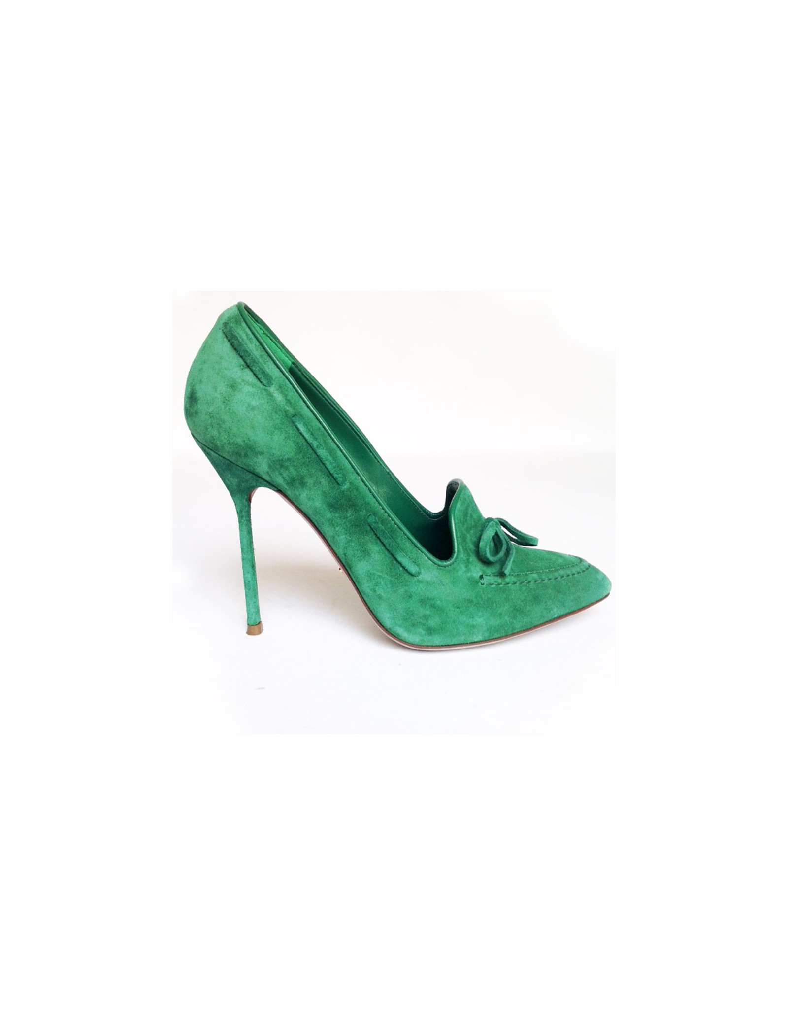 Sergio Rossi size 37 green suede pumps. Topstitching operations are green as well as a node at the front of the shoe.