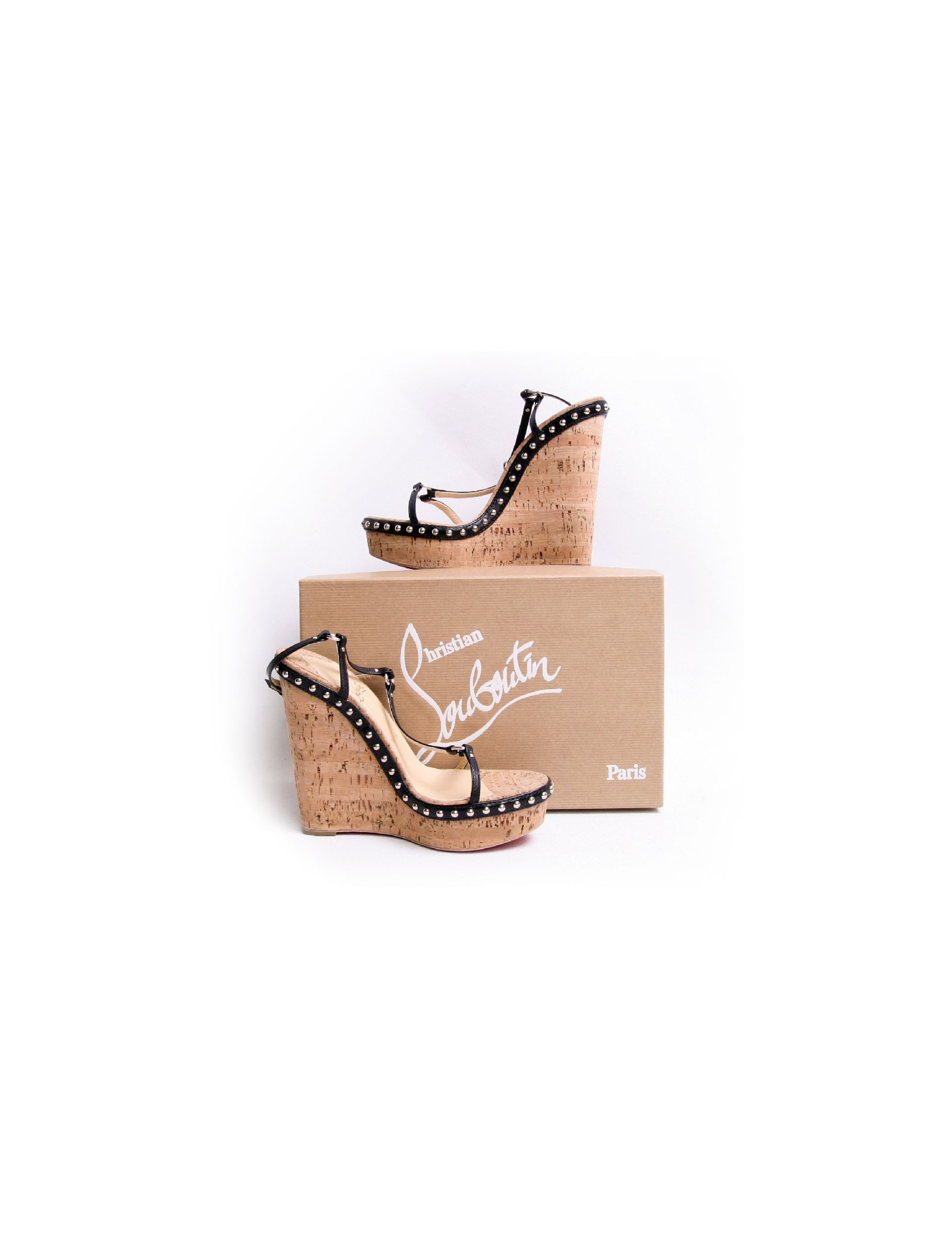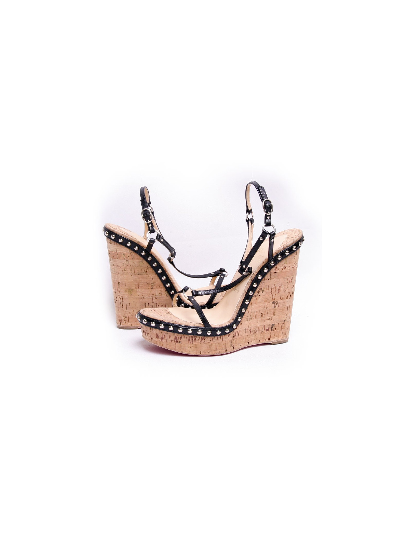 Wedge Sandals Christian Louboutin T38, 5. The sole is Cork. They are bordered by a strip of black leather and silver jewellery. They have never been brought.