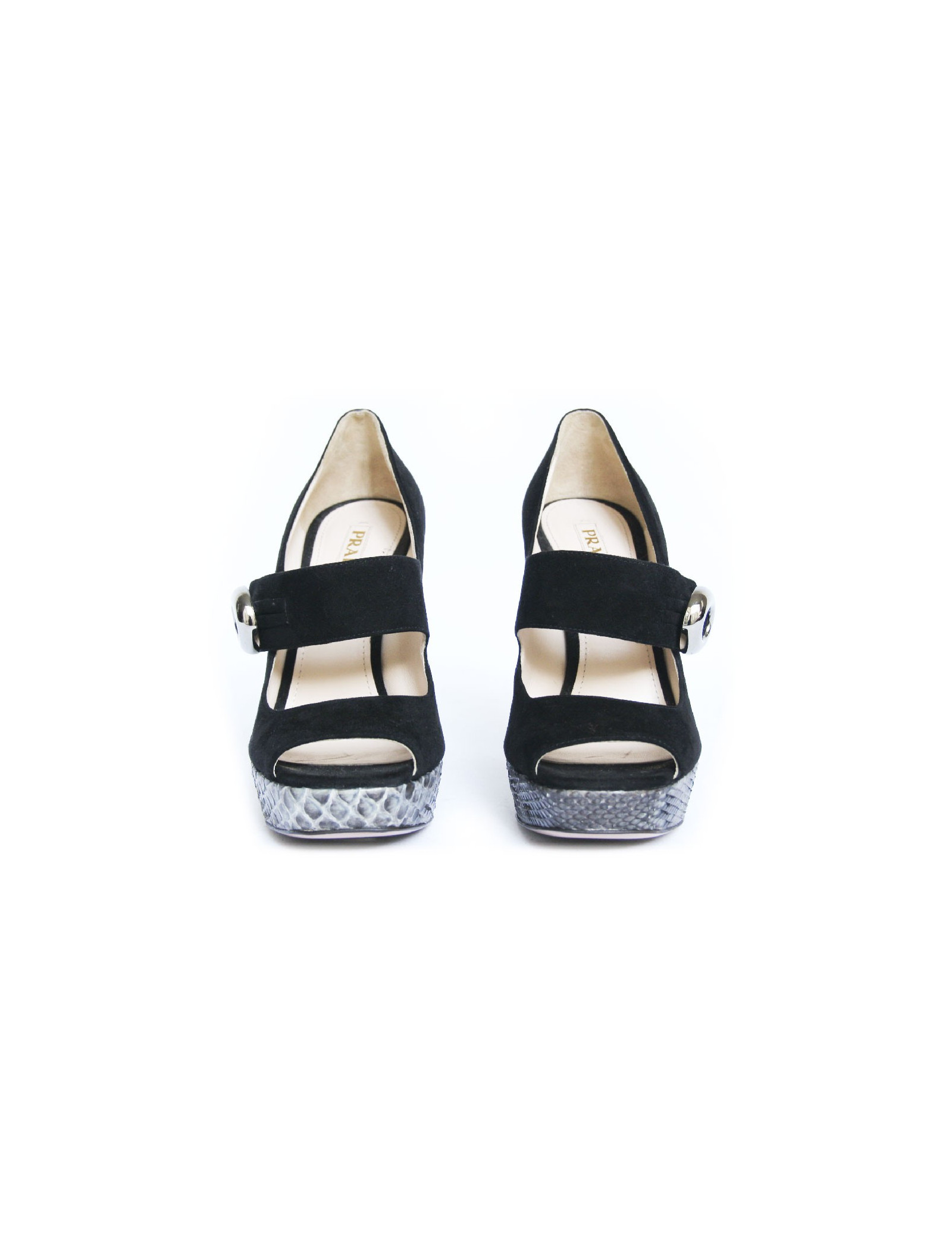 PRADA black velvet pumps and grey python T40