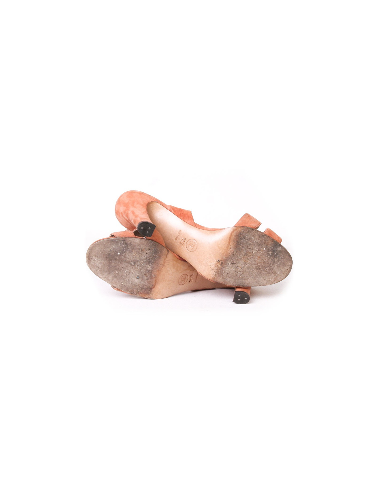 CHANEL T38, 5 coral suede sandals