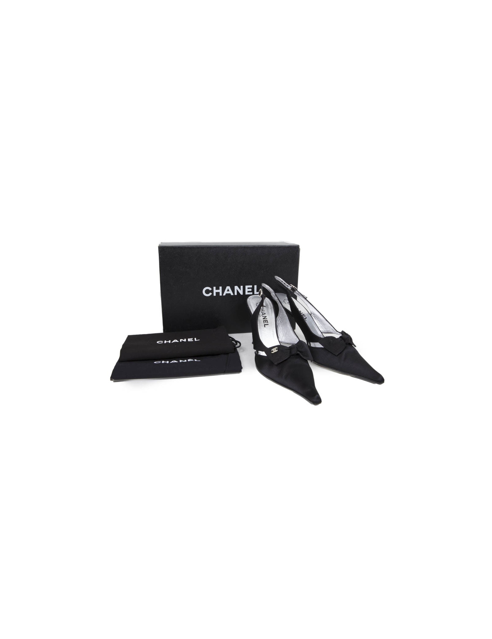High Sandals of the Chanel Couture silk and satin black House. Size 37.5.
