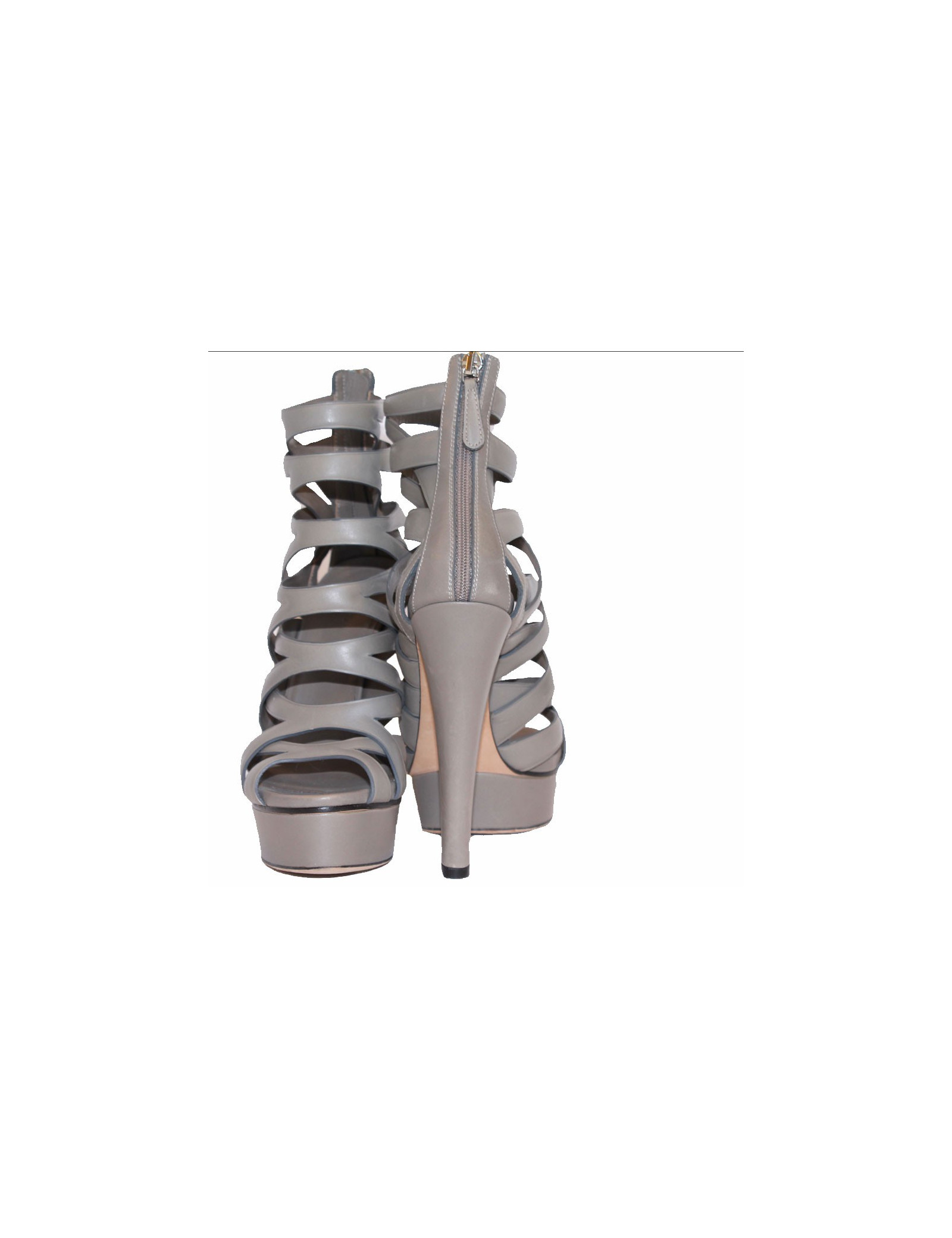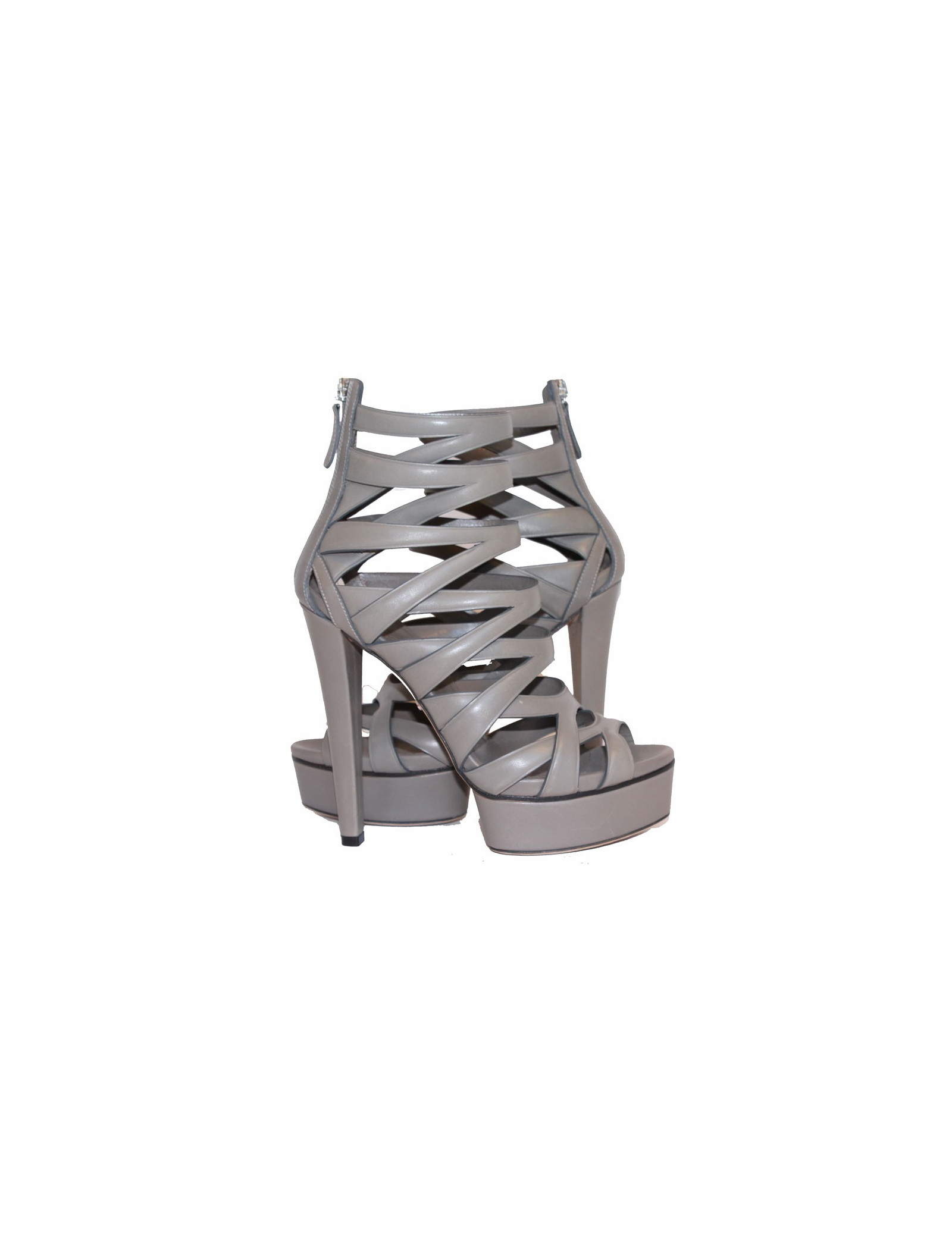 GUCCI High heels sandals in gray leather. Size 36Fr. Zipped closure at the back. Silver métal hardware.