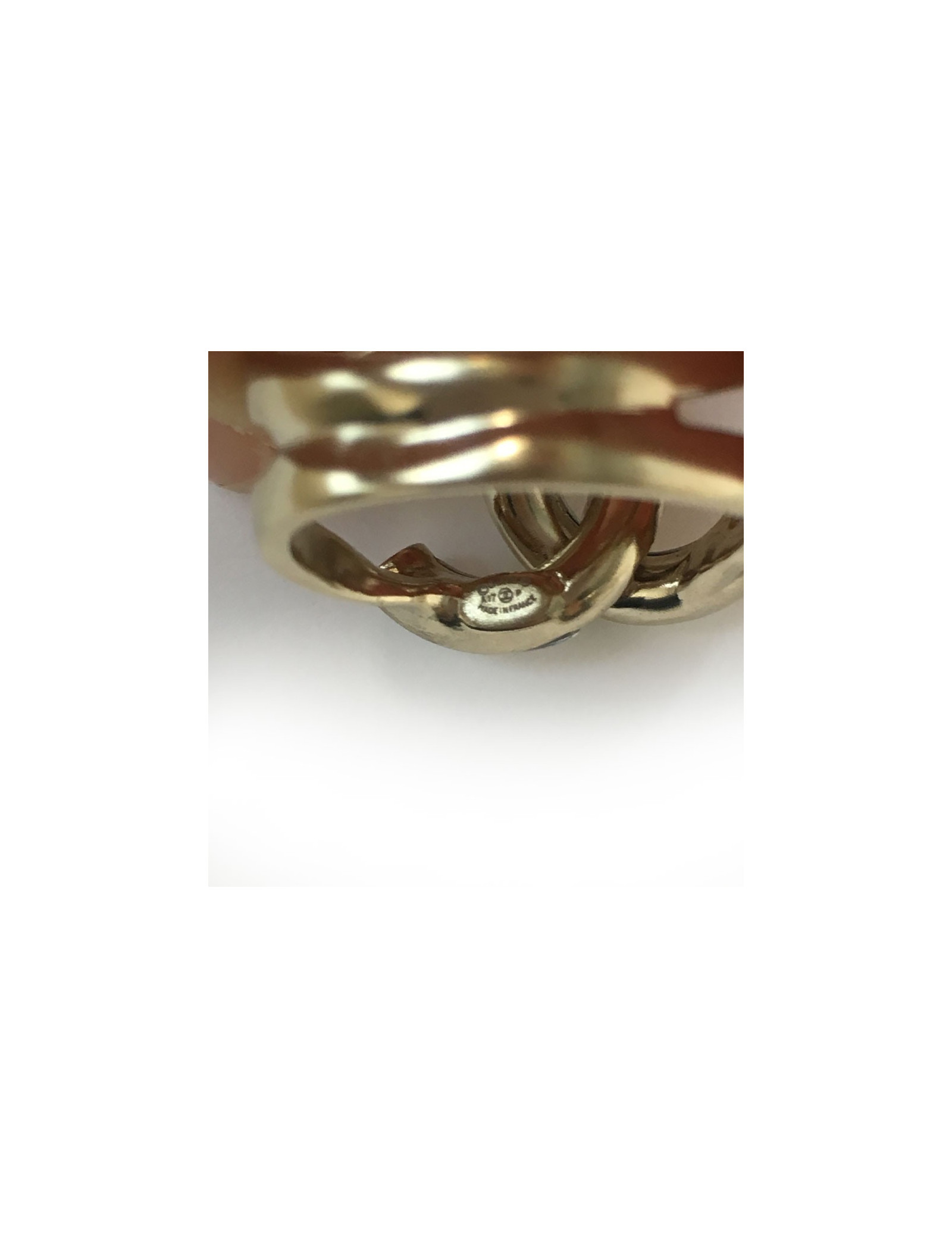 Last items in stock RINGS GUCCI Ring yellow Gold and Diamonds GUCCI 36277 1,790.00 € GUCCI GG Running ring Condition: never wornMade in ItalyMaterial: 18-carat yellow gold, 0.25-carat diamondsColor: goldenDimensions: height: 2.5 cmSize: 10 mm / 50 frHardware: goldDetails: two X-shaped rings joined by the GG logo, entirely encrusted with diamonds. The Valois Vintage Paris + : delivered in its original Gucci dustbag and box. Add to cart