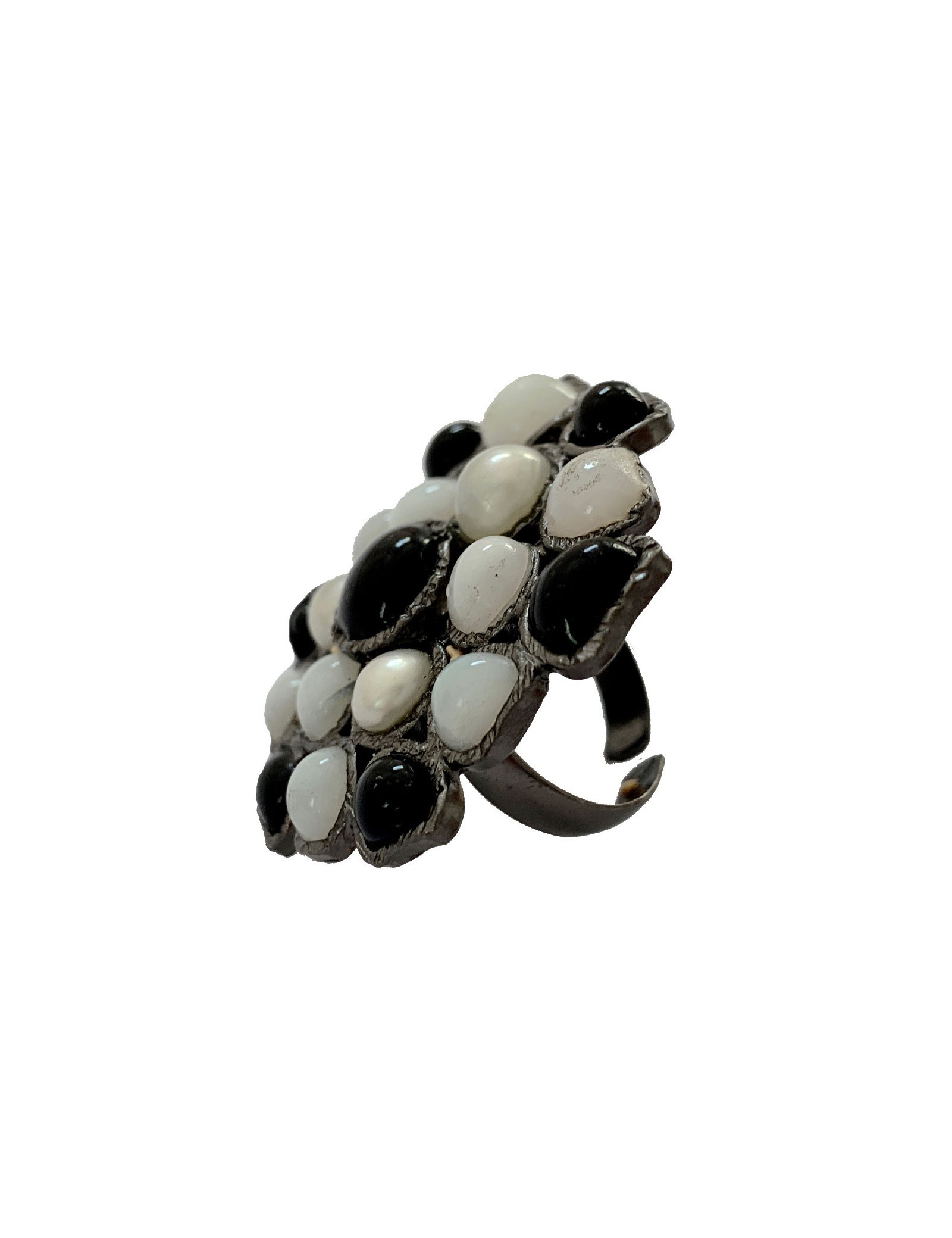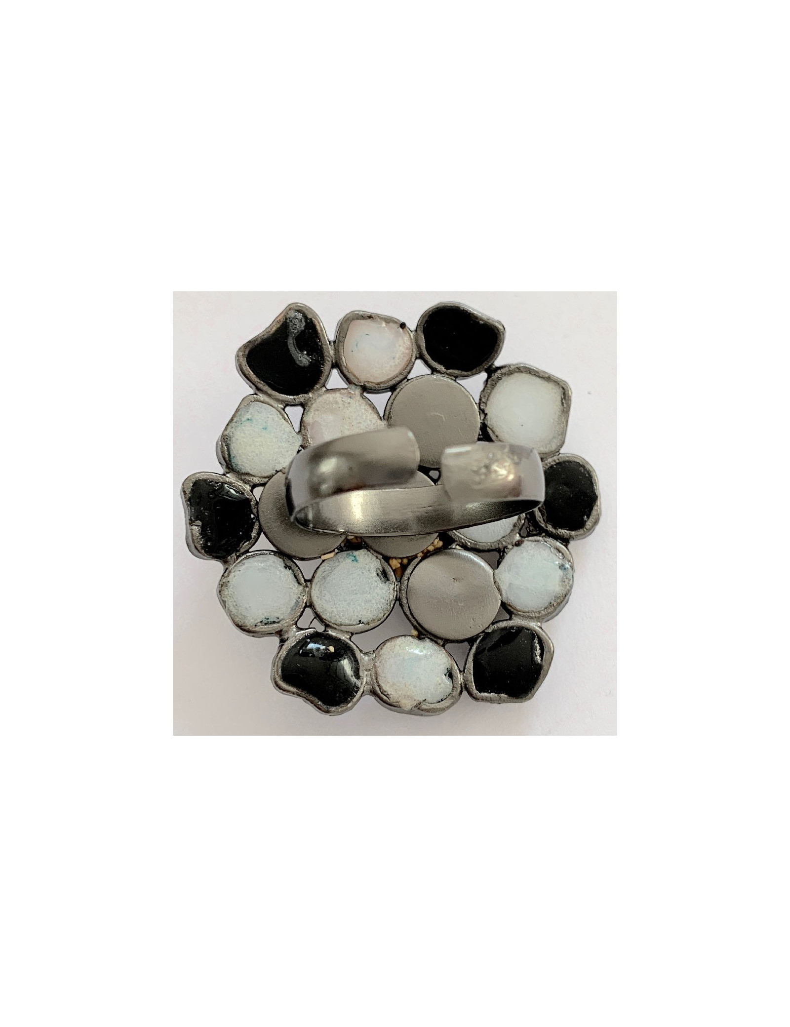Last items in stock RINGS MARGUERITE DE VALOIS molten glass ring MARGUERITE DE VALOIS 14618 220.00 € MARGUERITE DE VALOIS molten glass ring Made in FranceCondition: very goodMaterials: molten glass, Swarovski crystals, metalColors: silver, anise, lavenderMeasurements: diameter: 3cmSize: one size fits all (adjustable)Details: Marguerite de Valois round ring, composed of four mauve and anise green molten glass and Swarovski rhinestones. Ring in black... Add to cart
