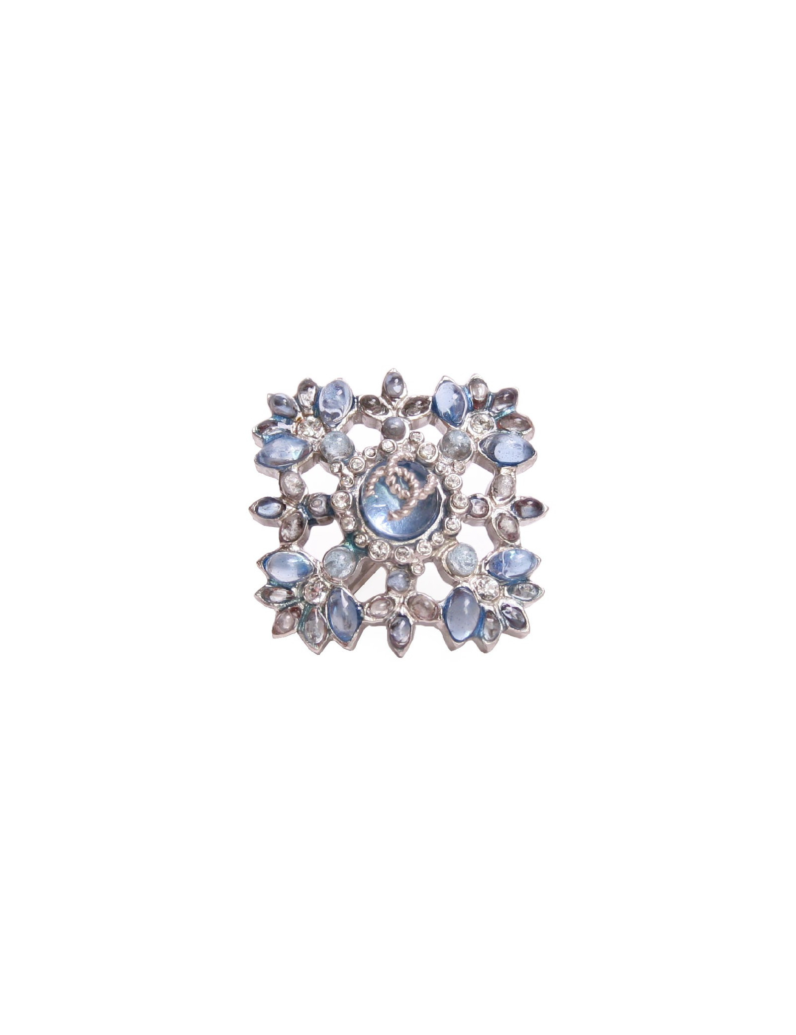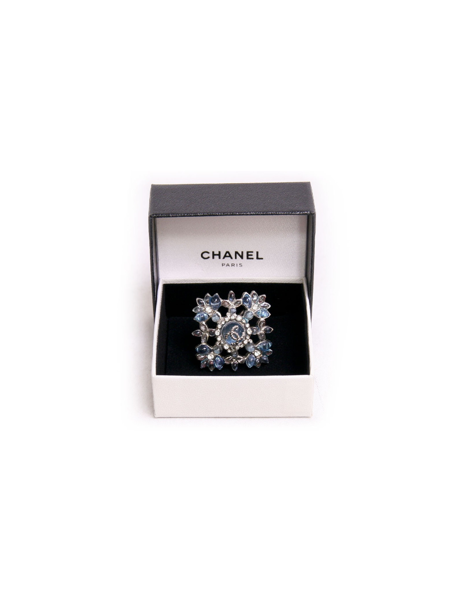 Pretty Chanel ring, glass paste gradient of sapphire blue, silver metal, 54 adjustable t. She is in good condition (the ring is slightly distorted). the jewel is in very good condition.