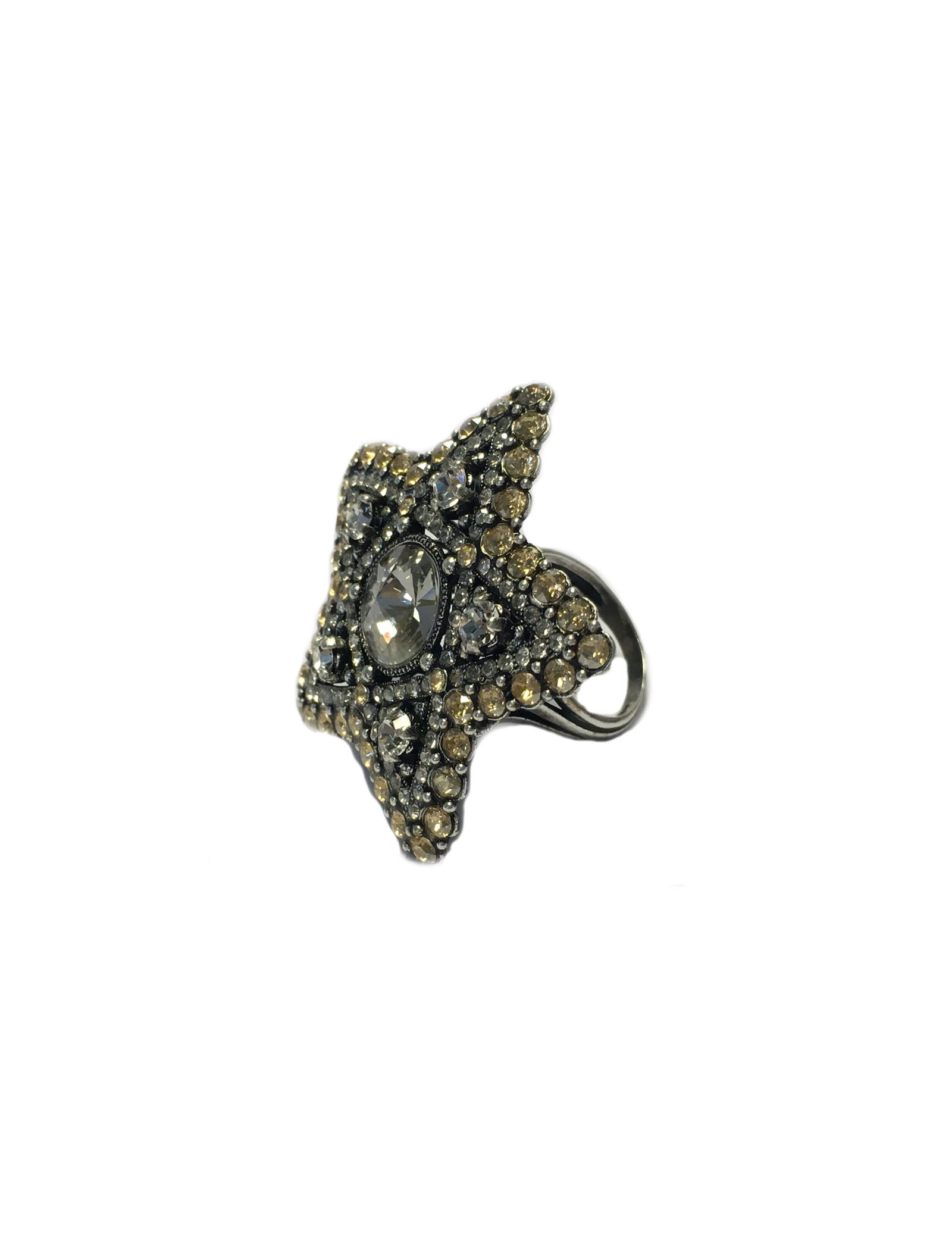 Star in silver and white and gold rhinestone ring LANVIN T55