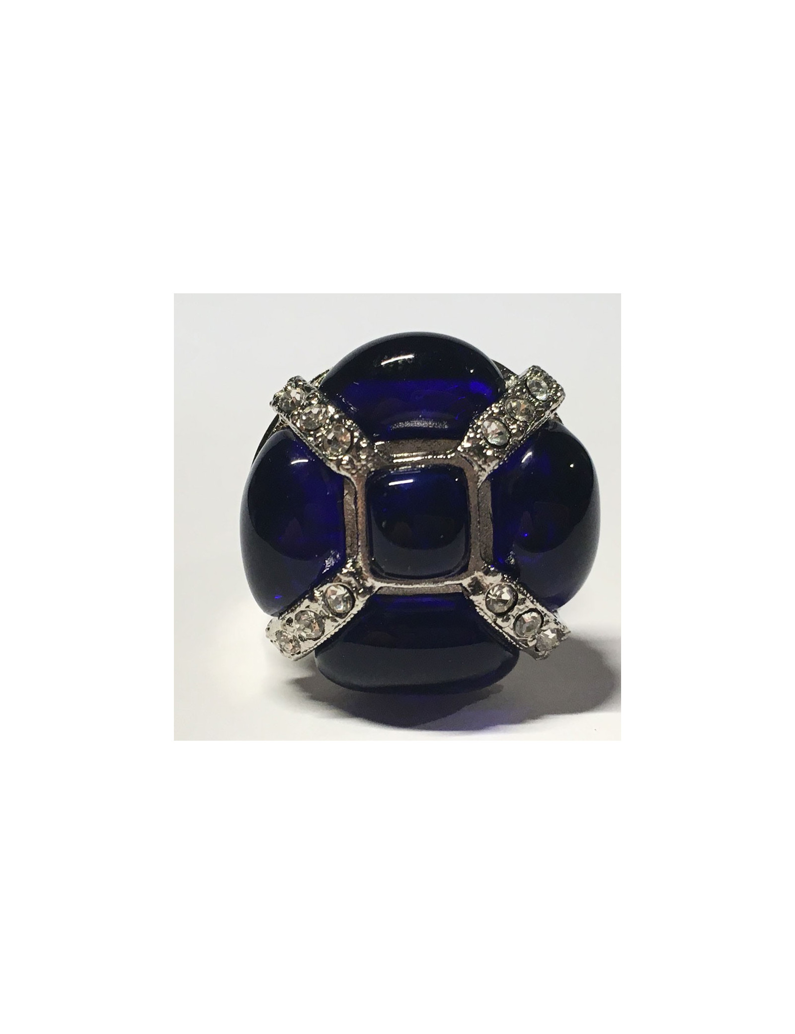 Ring CHANEL couture T53 in white rhinestones and blue resin night