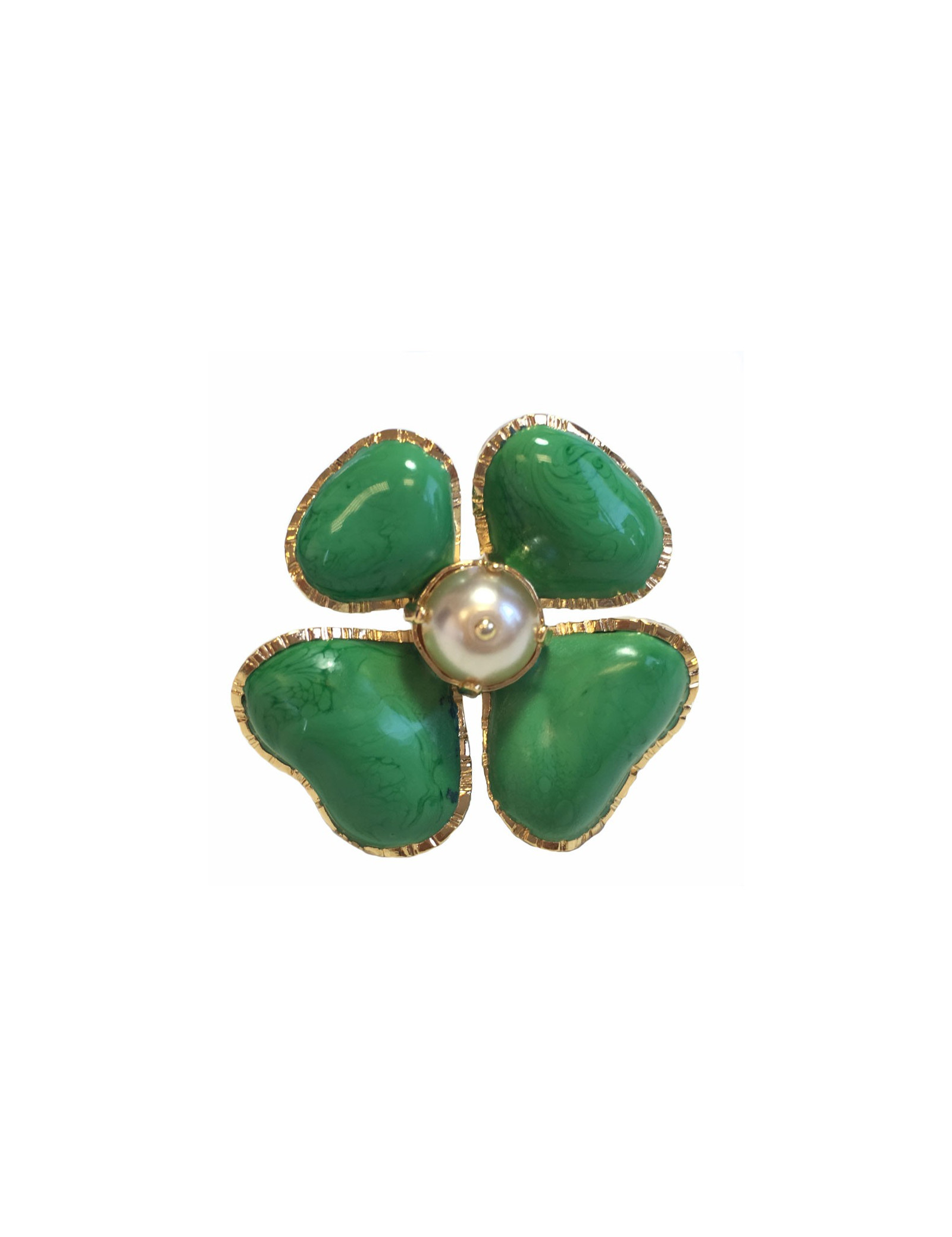 Ring MARGUERITE of VALOIS in green glass paste-4 leaf clover