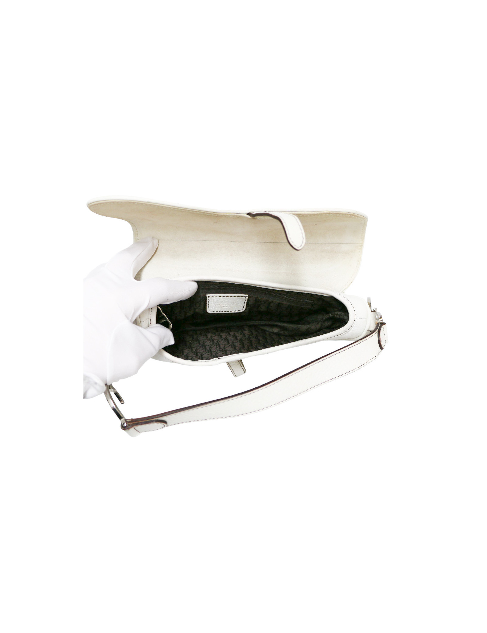 Saddle CHRISTIAN DIOR White grained leather