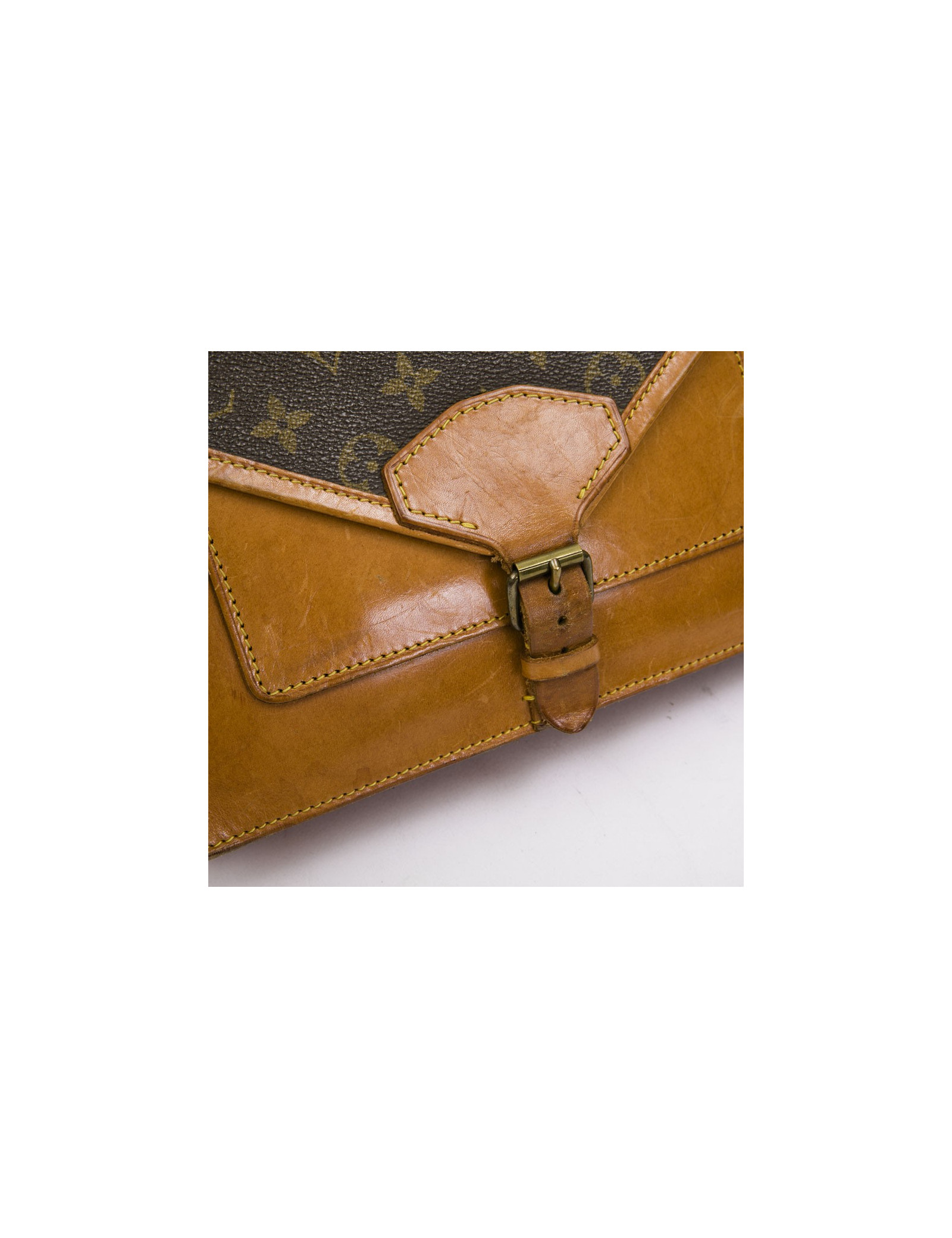 Louis Vuitton vintage satchel bag in brown Monogram canvas and natural cow leather. Golden metal hardware.