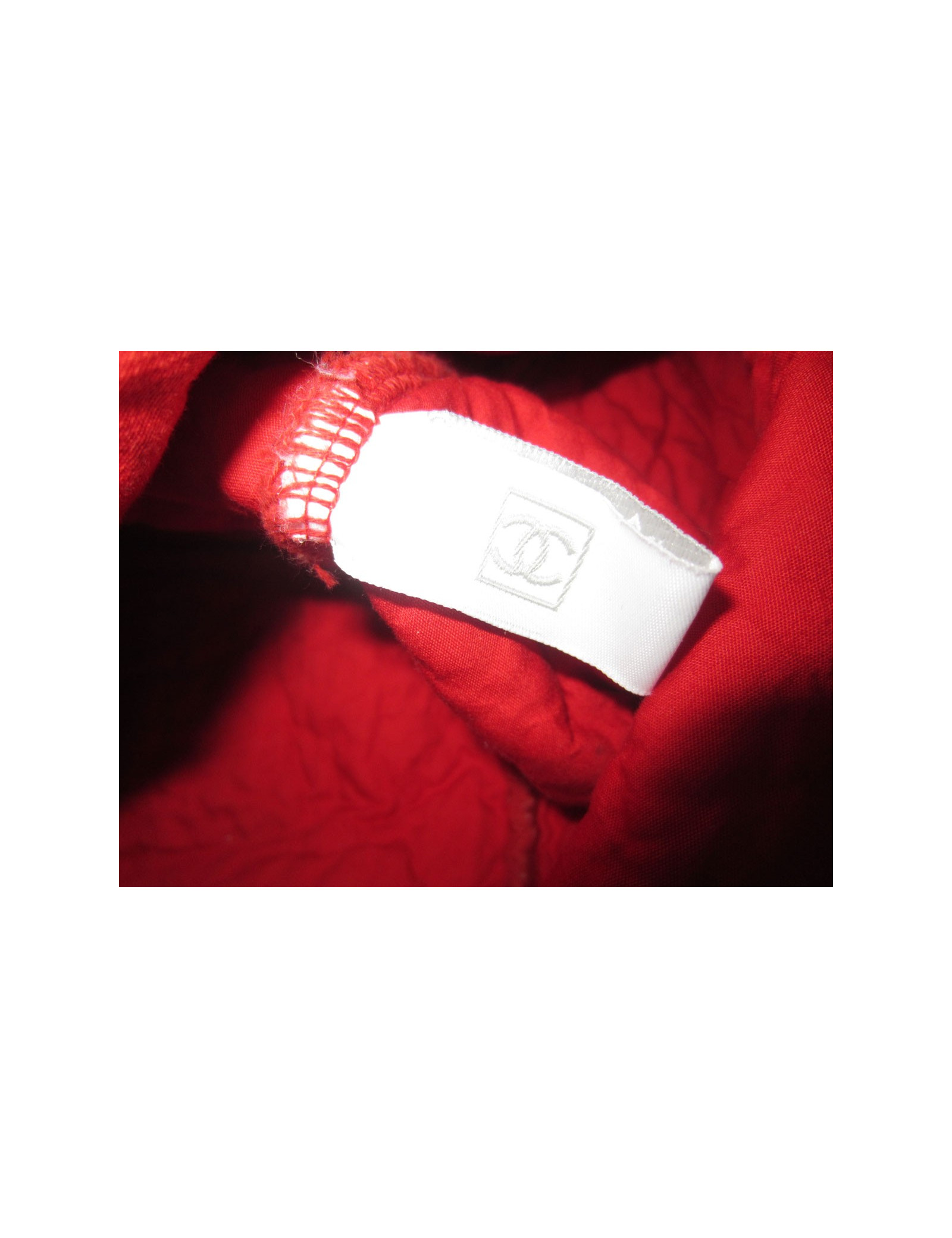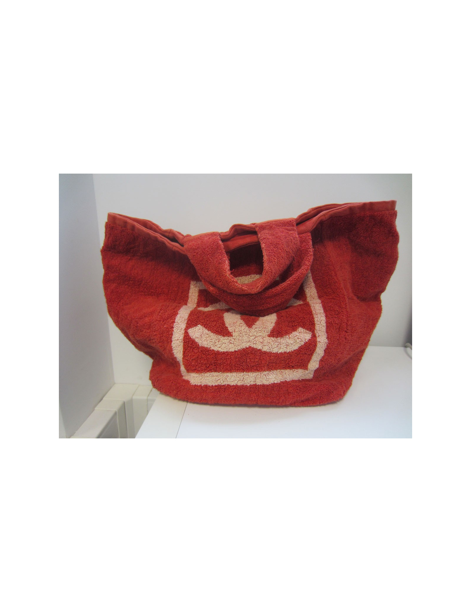 Cabas in sponge Chanel identification, ideal for the beach. Great white CC on red background orange blossom