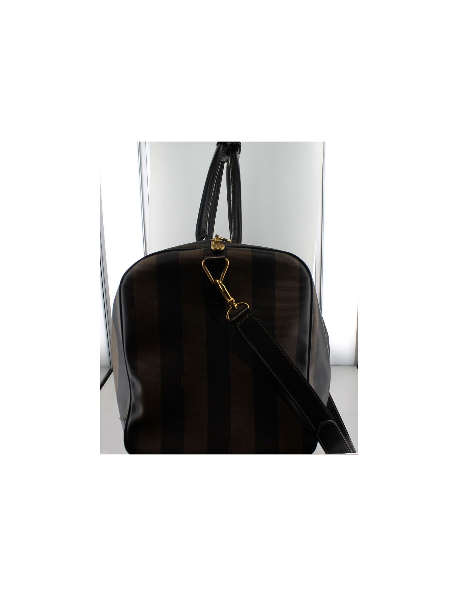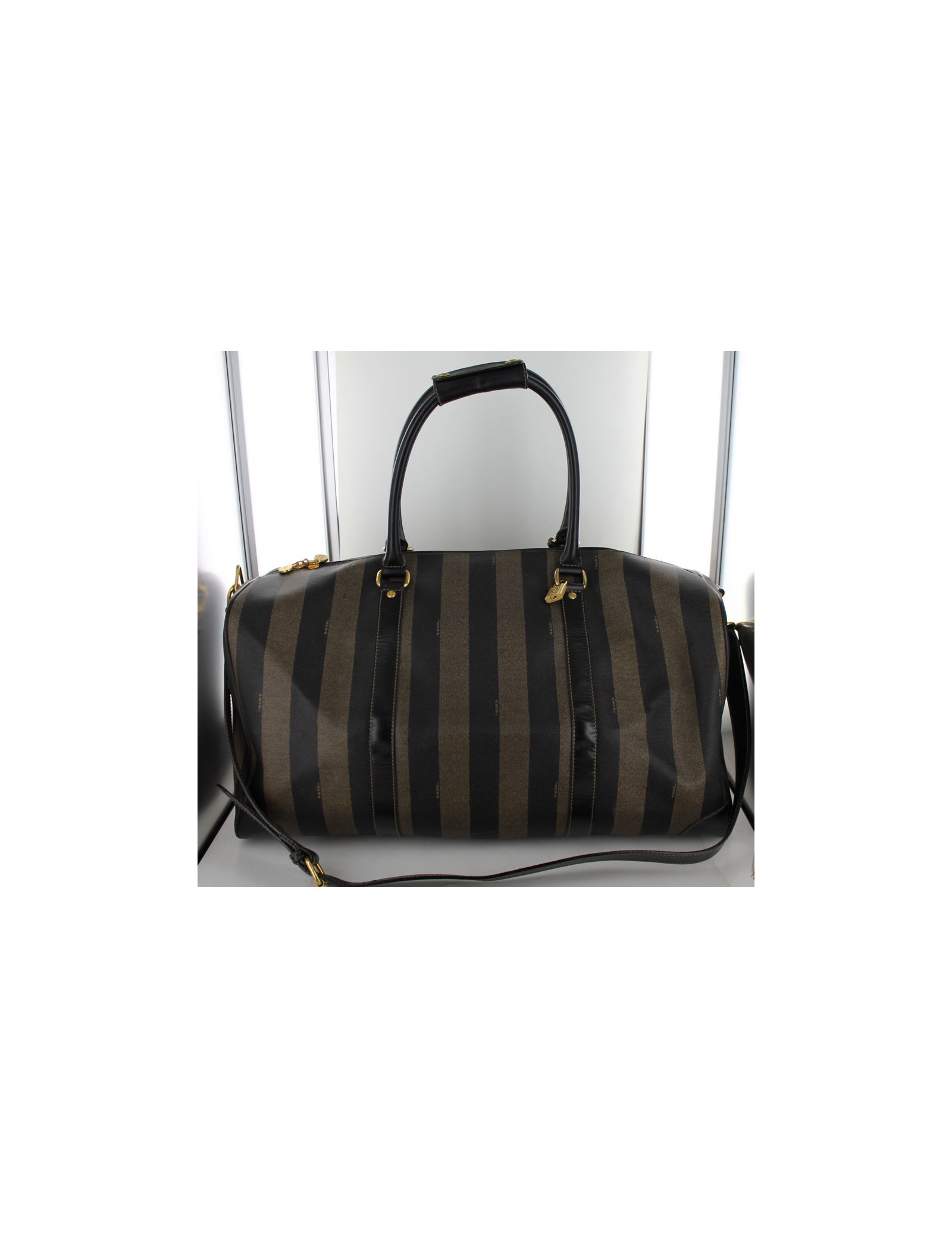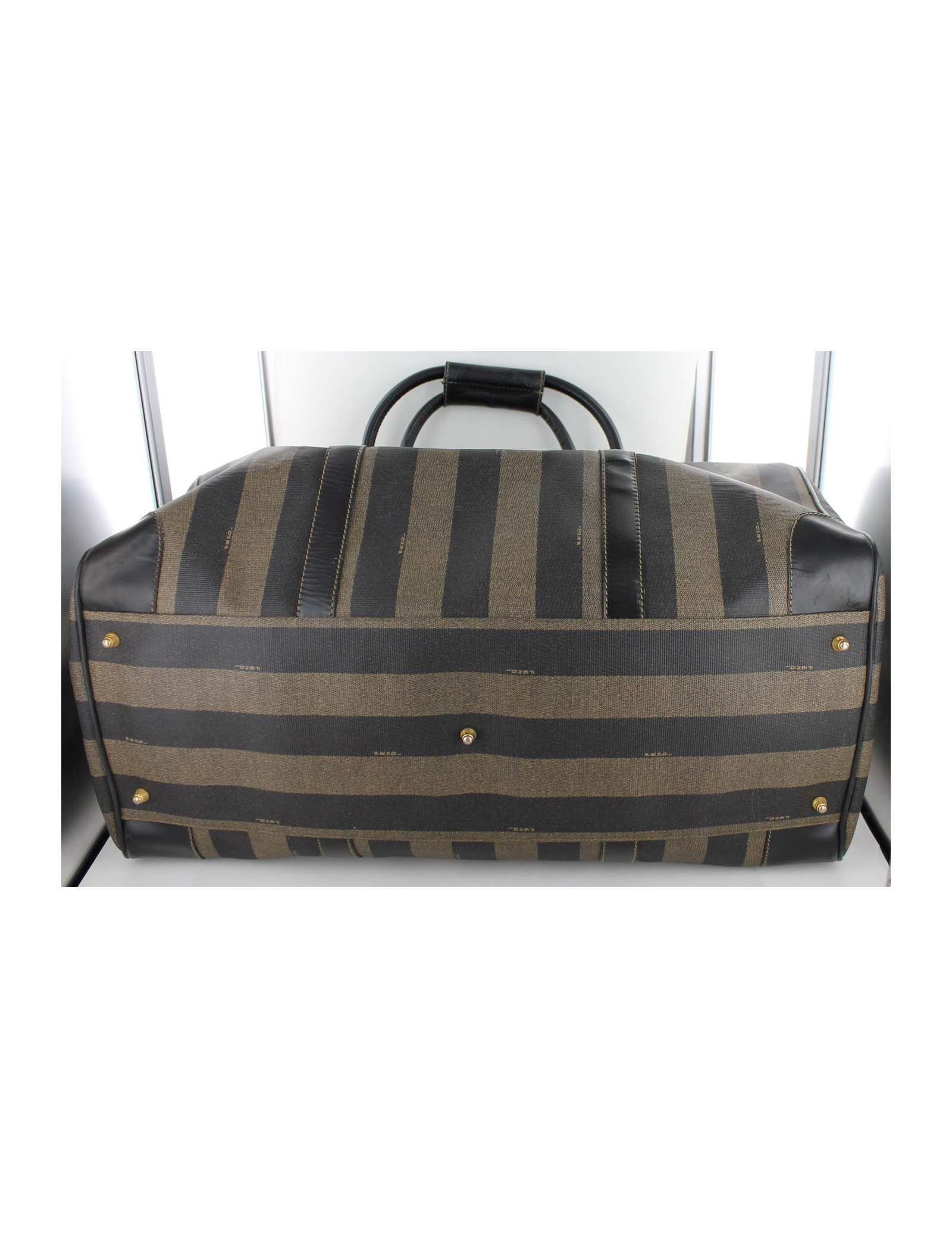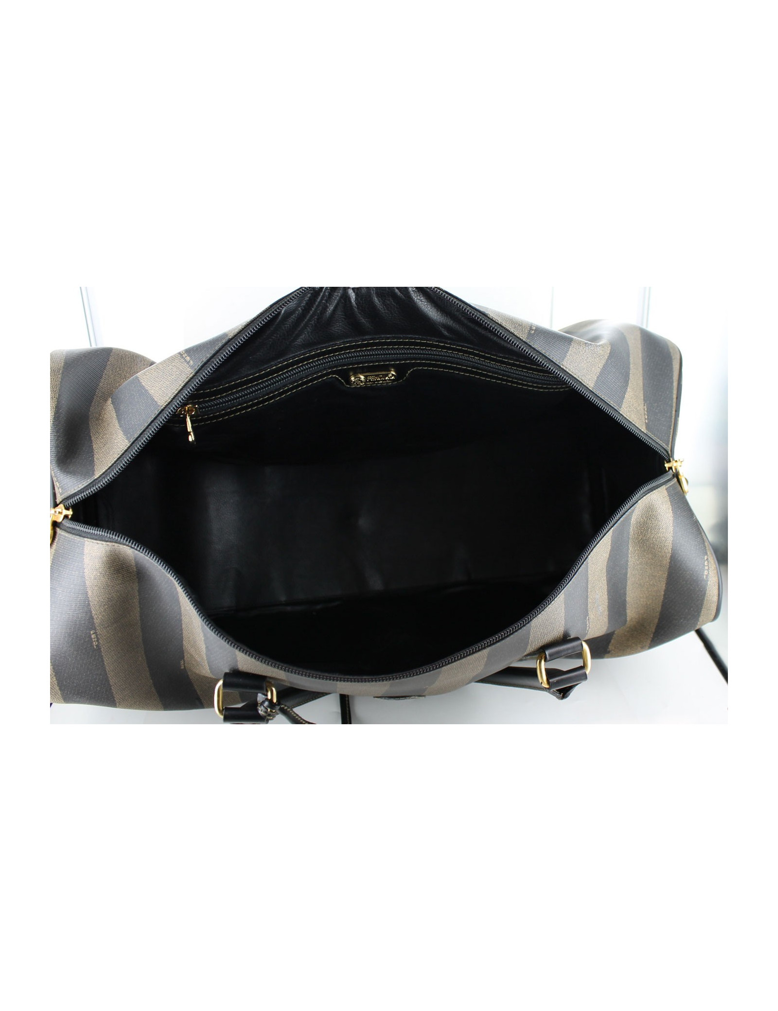 Very elegant weekend FENDI bag, unisex. It is light brown and chocolate brown striped coated canvas.