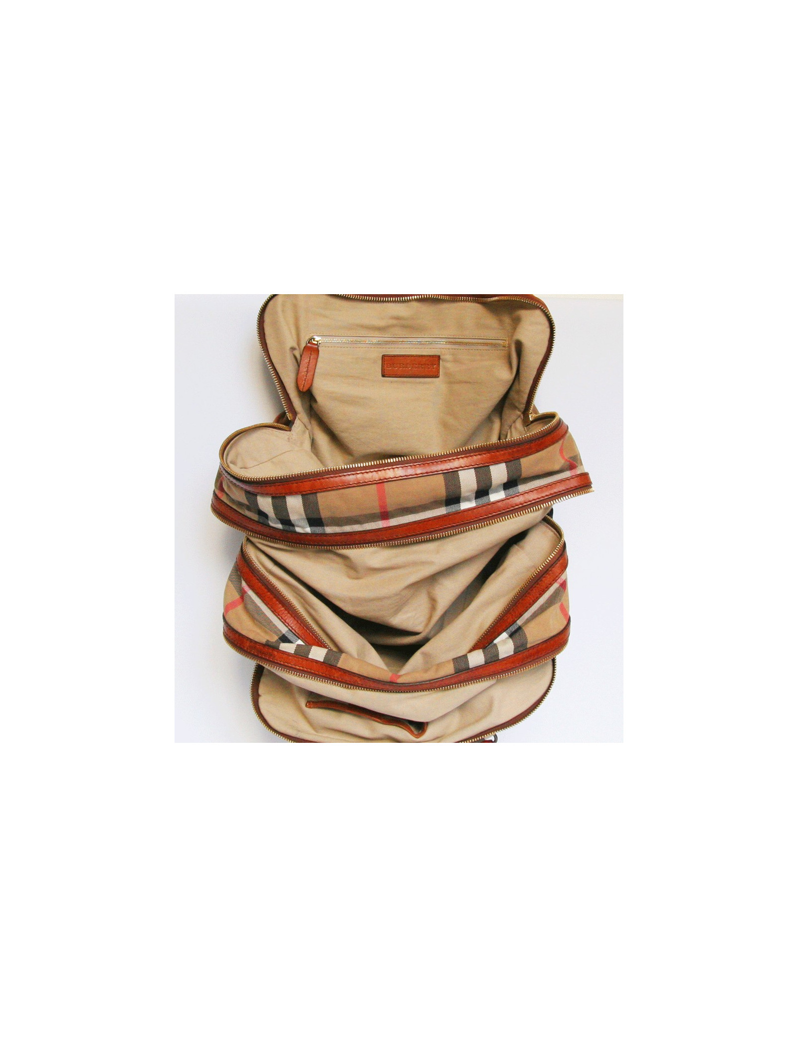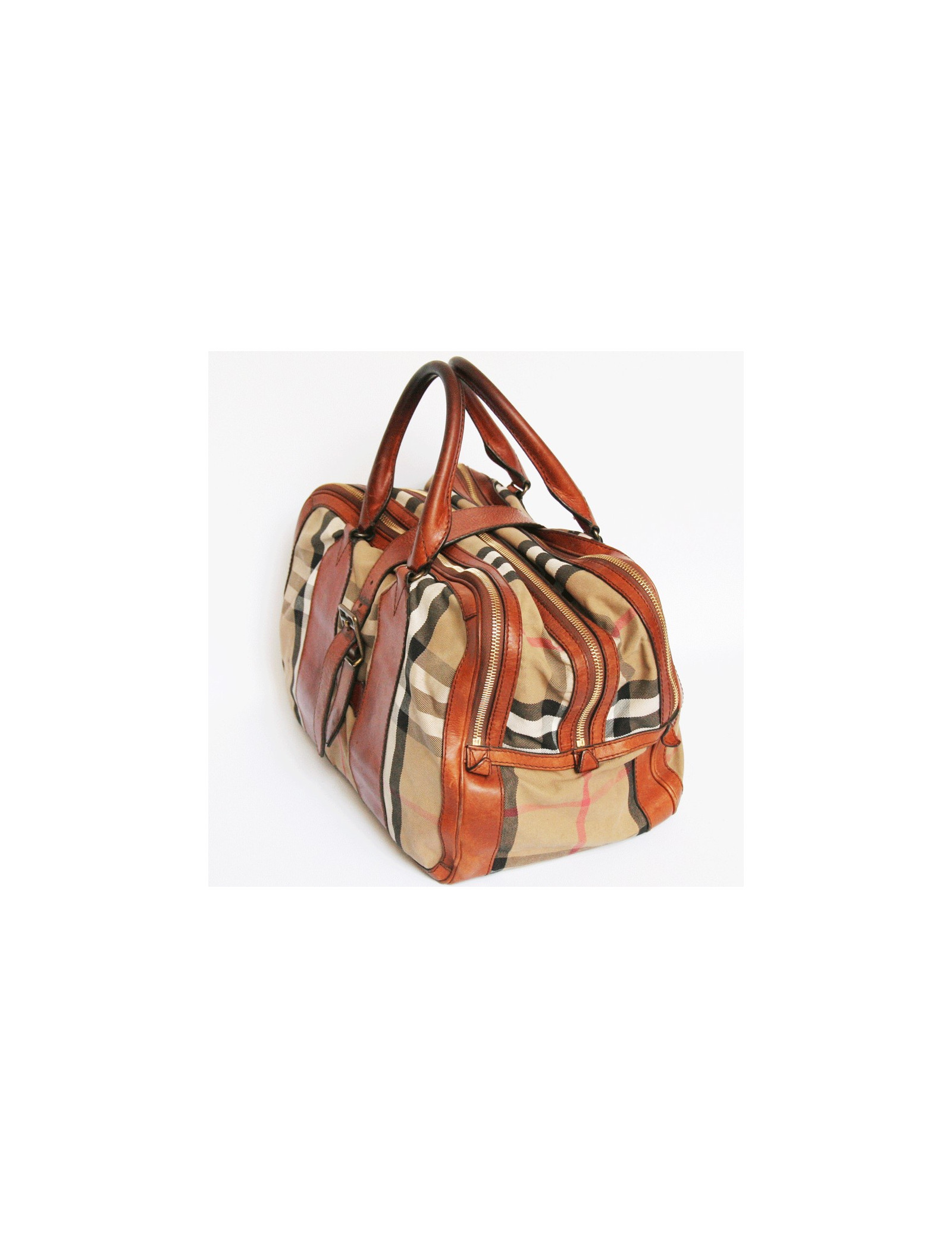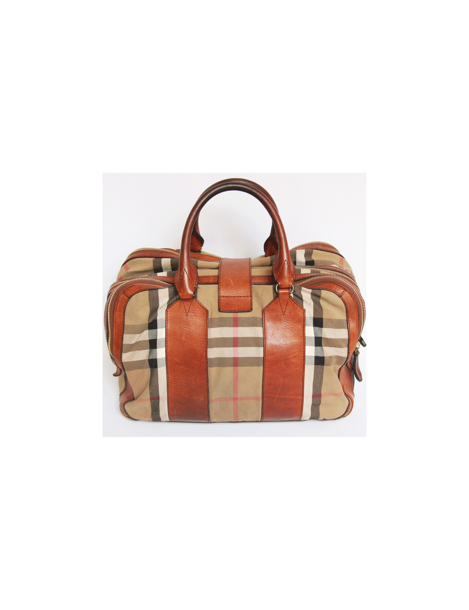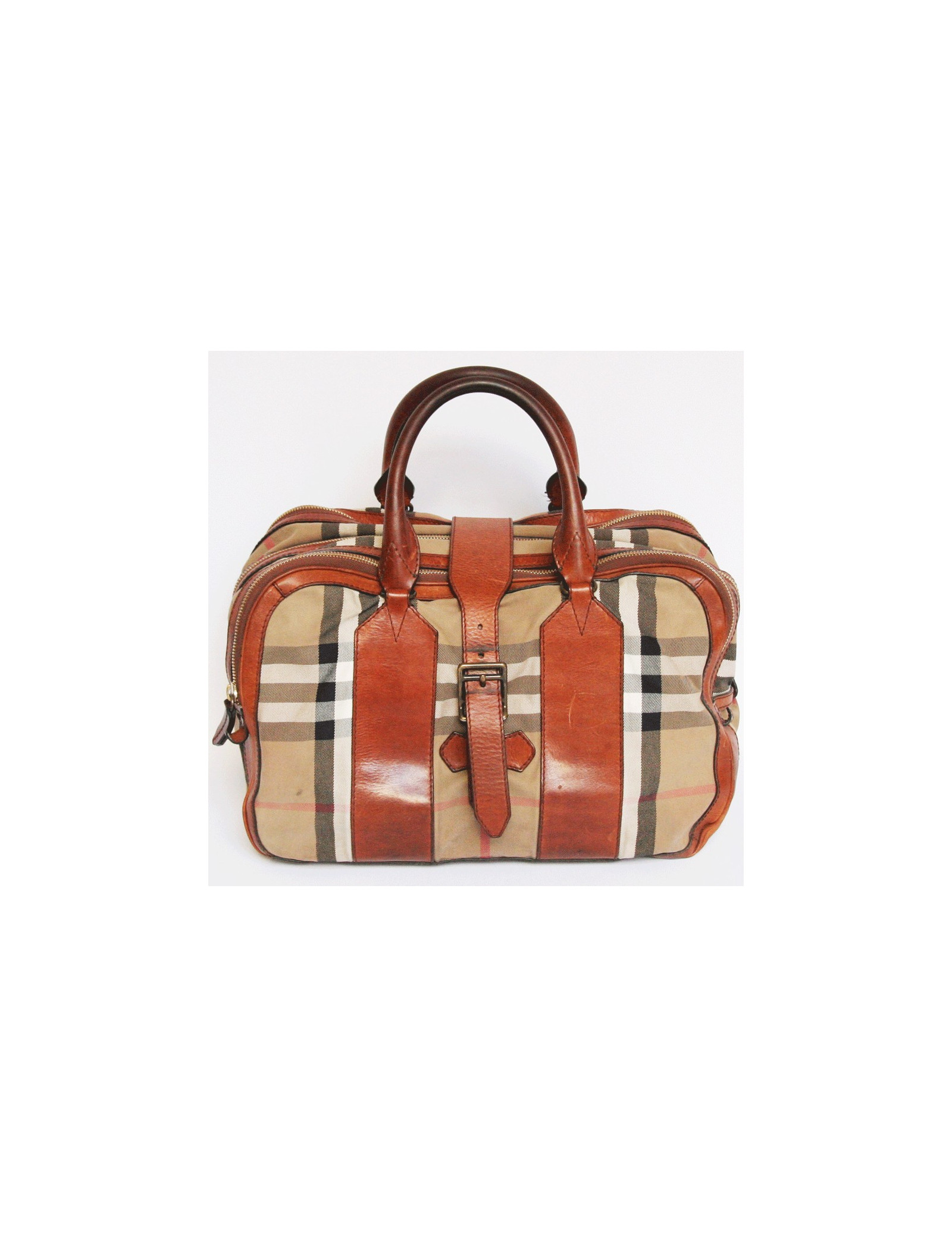 Large bag BURBERRY canvas monogrammee and leather Brown, decorated with the famous tartan pattern.