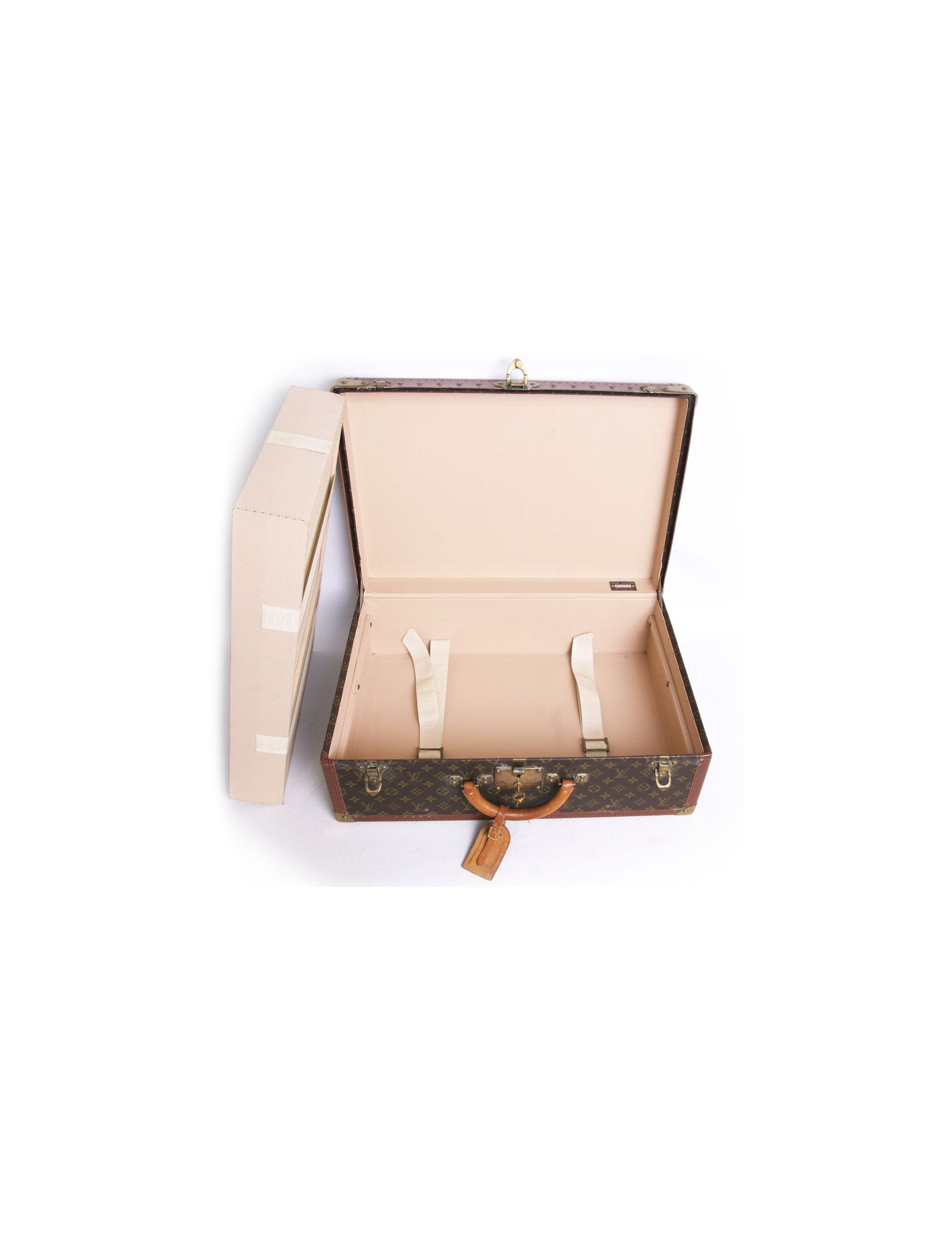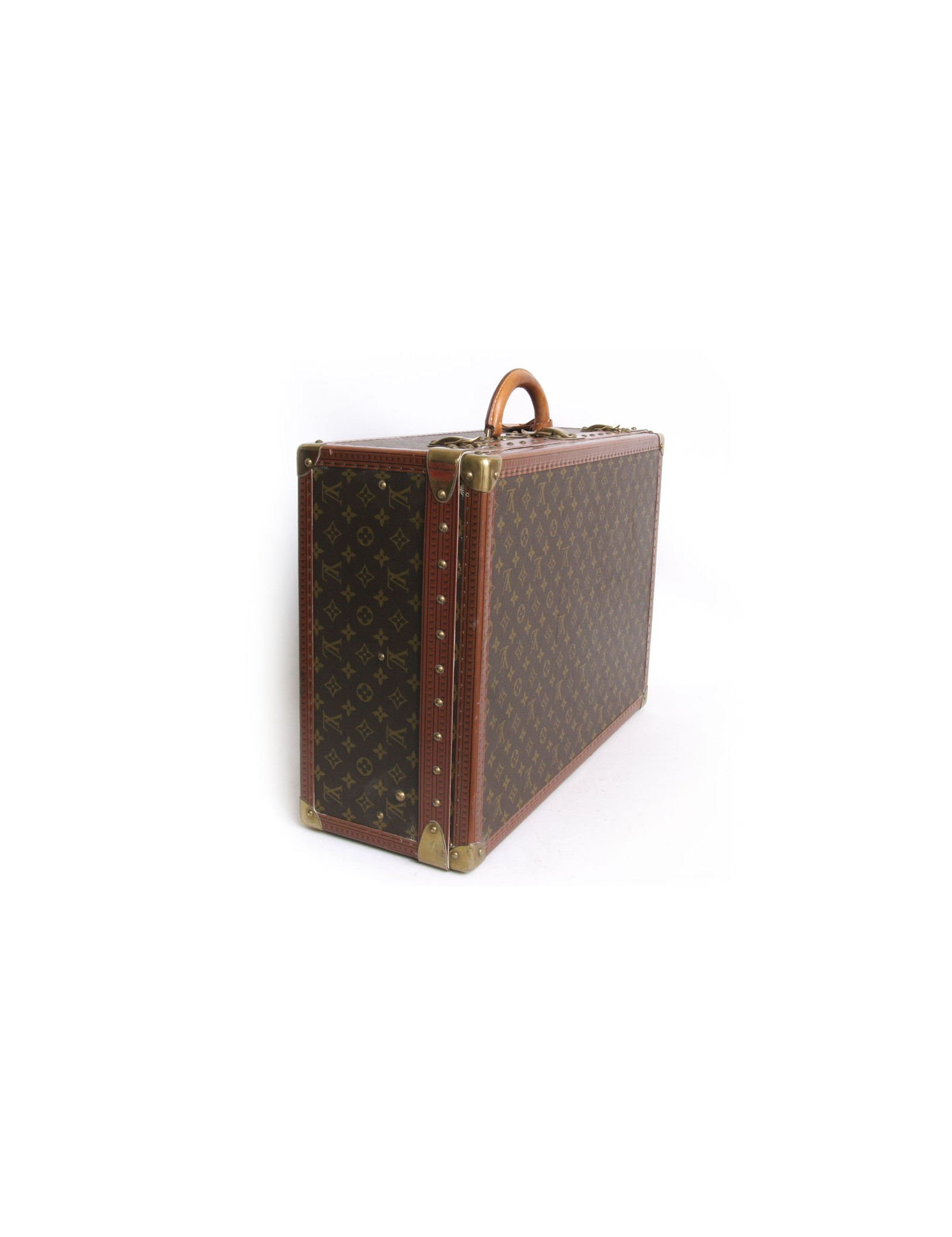 The famous suitcase "Alzer" of the Maison Louis Vuitton monogram canvas, fait partie des emblèmes de la Marque. Son volume équilibré et sa robustesse inégalables continuent de séduire de nombreux amateurs à travers le monde. Les poignees are made of natural leather. The Interior is canvas with straps of maintenance. The cloison is removable and cover protection. Enhanced "S" Louis Vuitton lock 2 additional latches. The bgarbage is leather reinforced rivets and brass corners. The pmetal ieces are golden brass. Hologram: 9300... In very good condition. A few fine scratches from use on one side. See photos. Height: 41 cm, length: 60 cm, depth: 21 cm