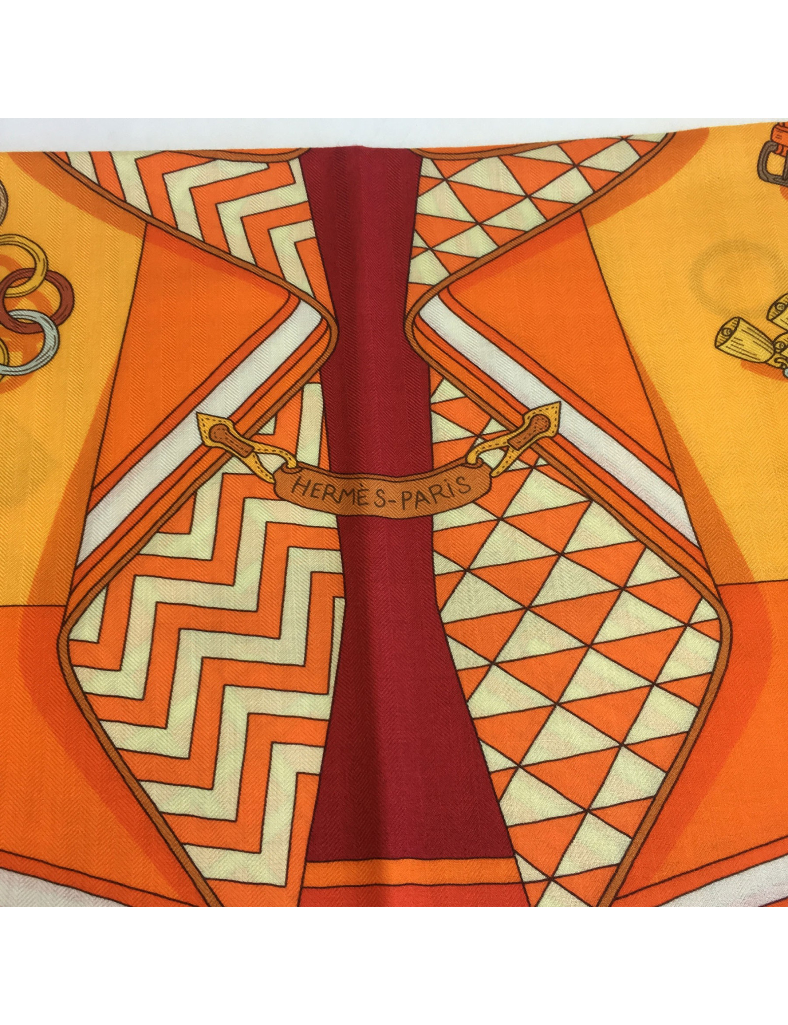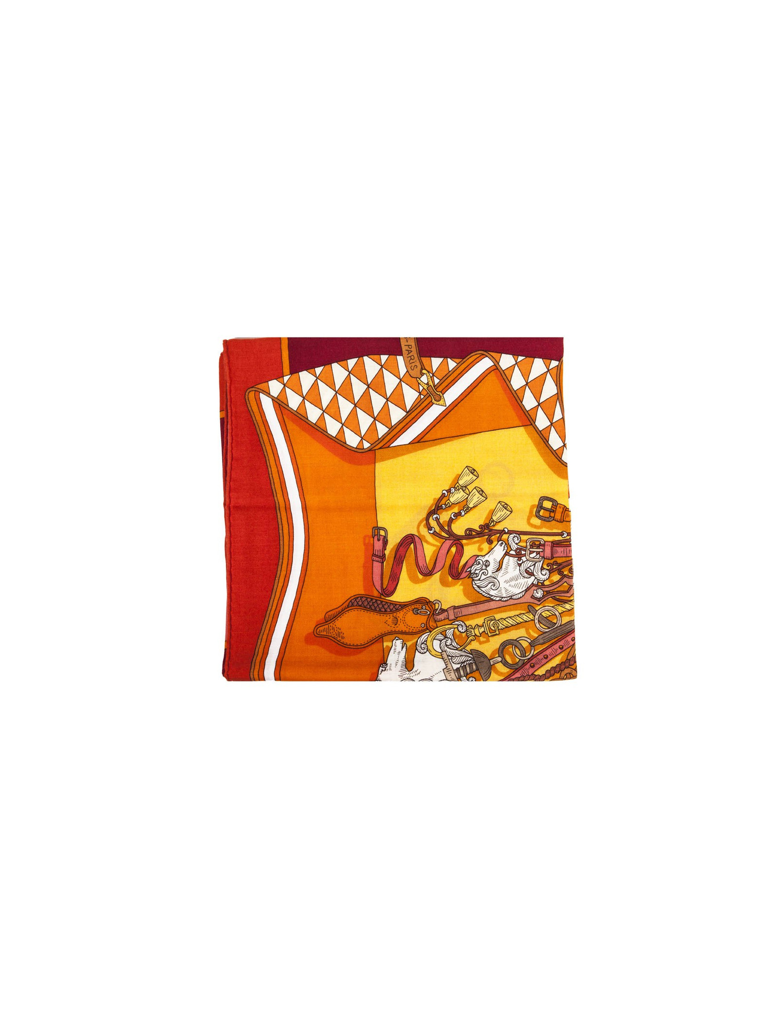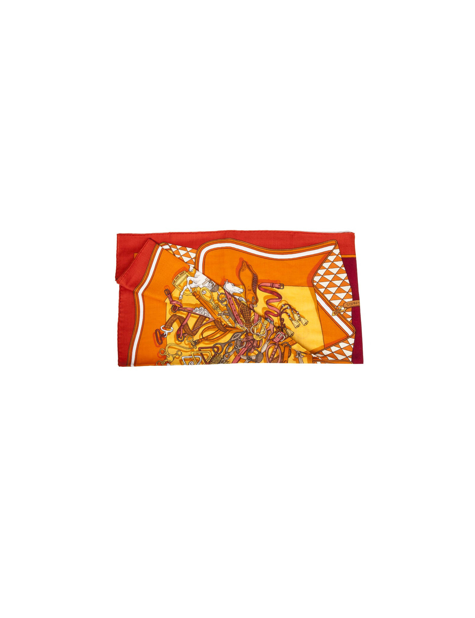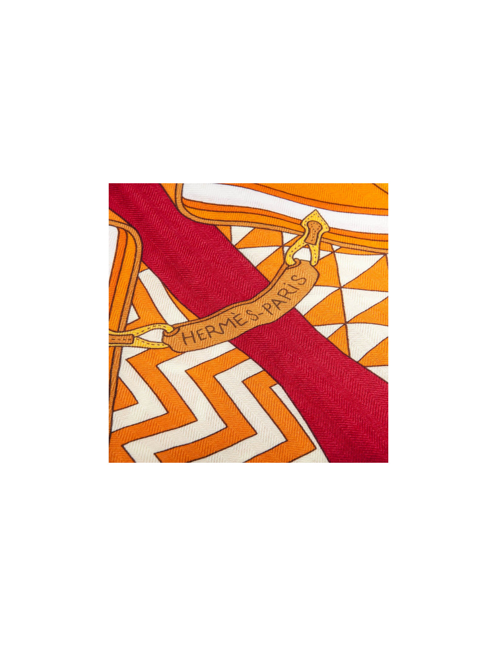Hermès shawl "Sellier bouquets" in cashmere and silk: nasturtium, caramel and sun.