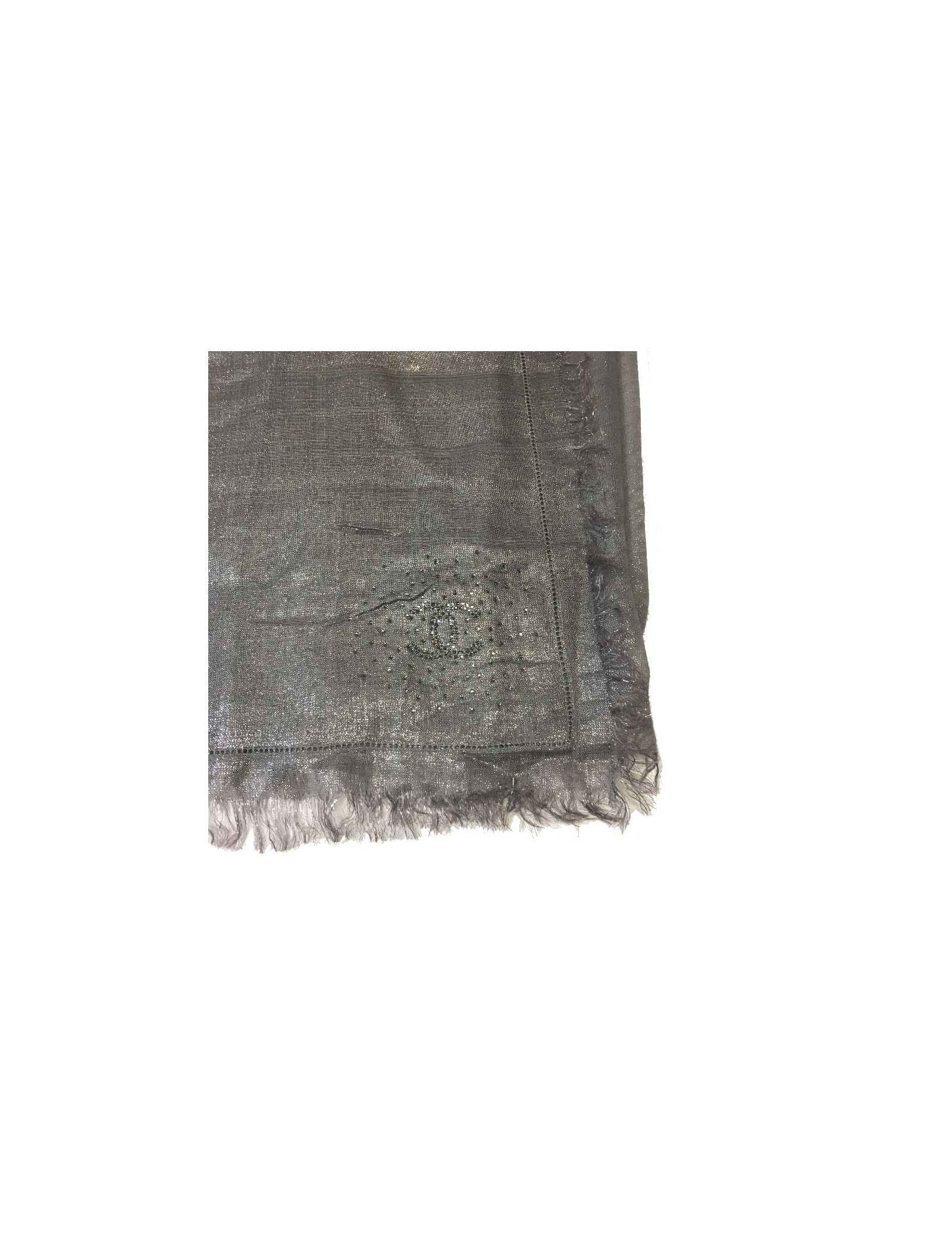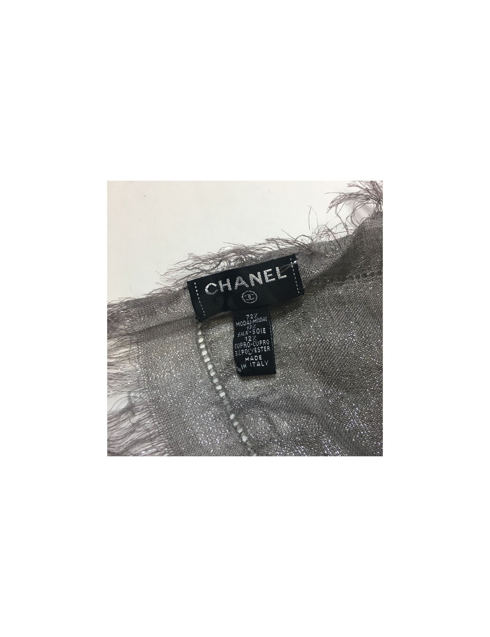 CHANEL shawl in grey modal, silk and cupro with silver threads