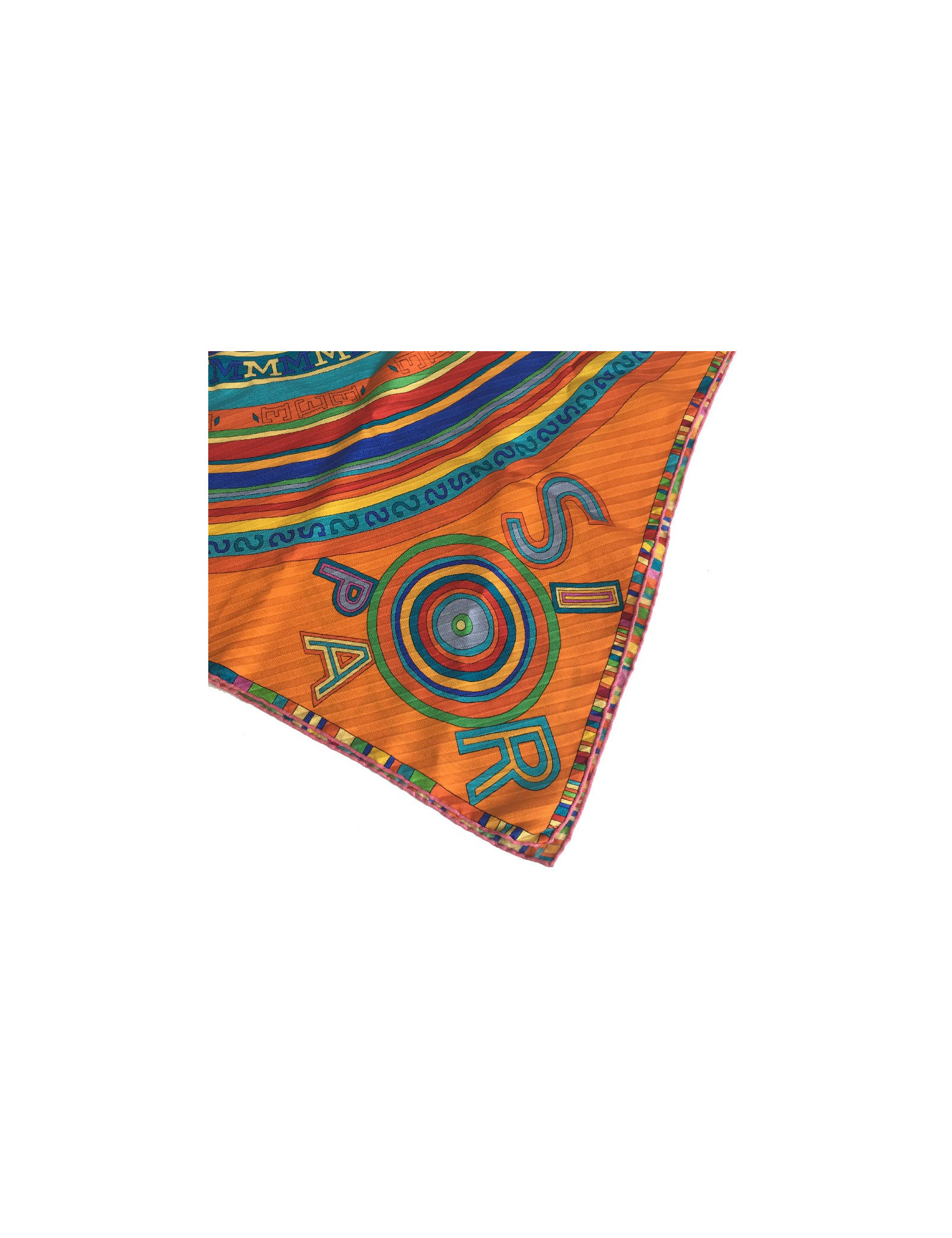 Last items in stock SCARVES AND SHAWLS HERMES Duo d'Etriers cashmere and silk shawl HERMES 34616 950.00 € HERMES Duo d'Etriers large shawl 140cm Condition : very goodMade in FranceMaterials : 70% cashmere, 30% silkColors : orange, beige, purpleMeasurements : 140 x 140 cmDesigner : Virginie Jamin Françoise de la PerrièreDetails : printed with stirrups. The rolled hem is in perfect condition. Composition label present.Advantage Valois Vintage Paris : delivered... Add to cart