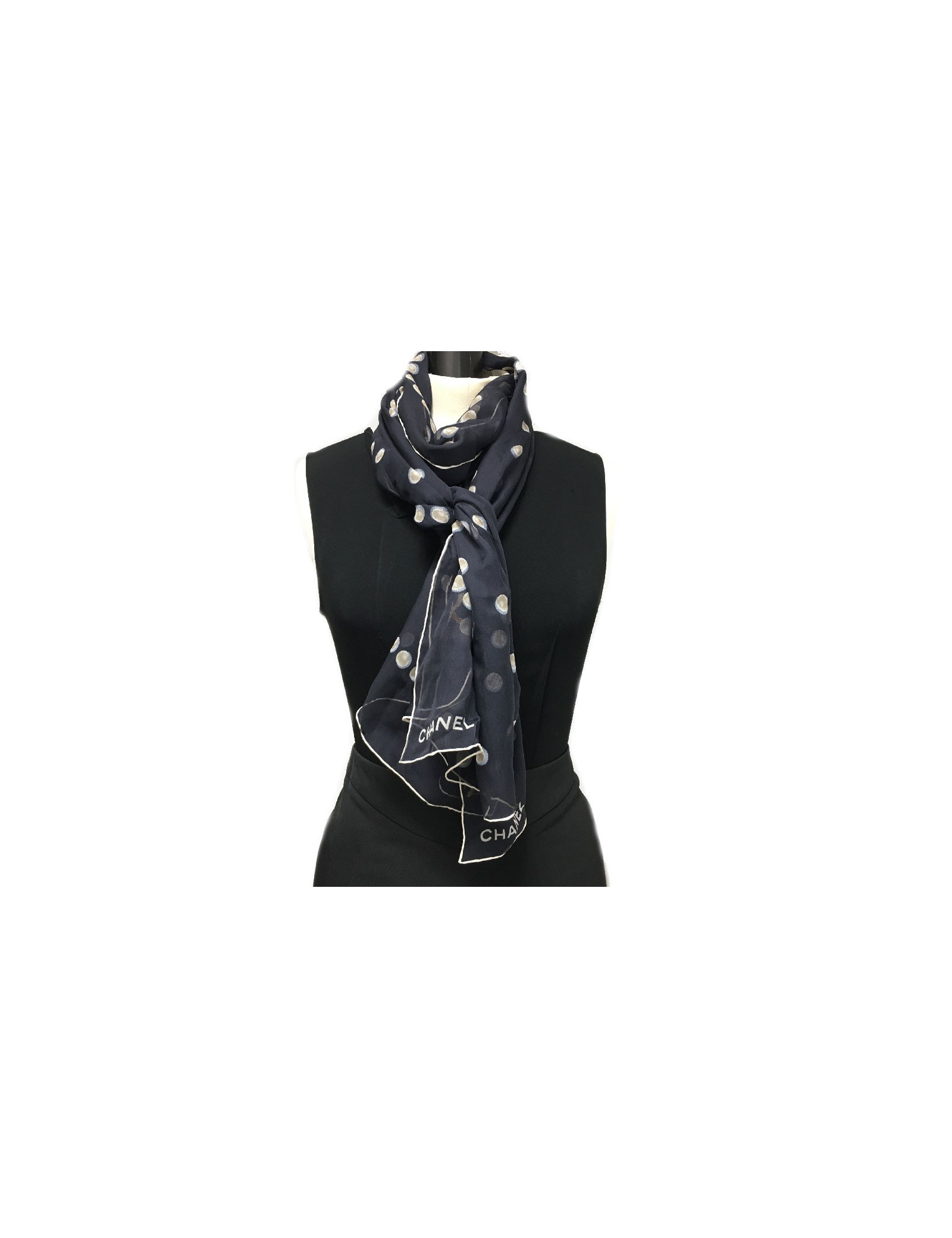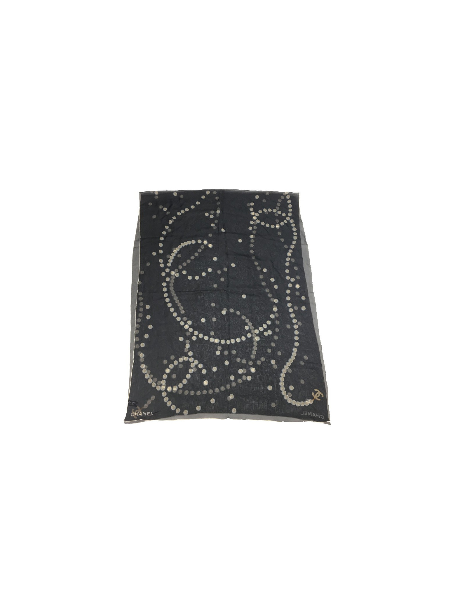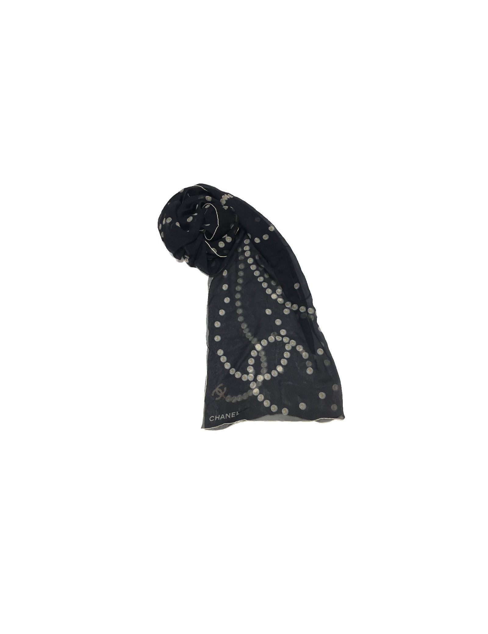 CHANEL long scarf in black chiffon