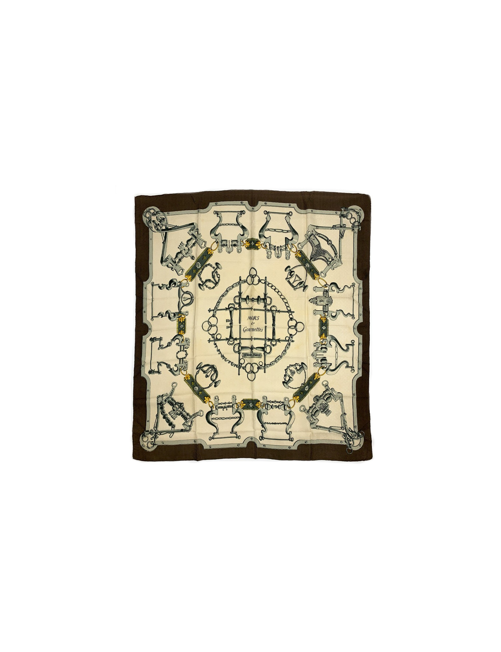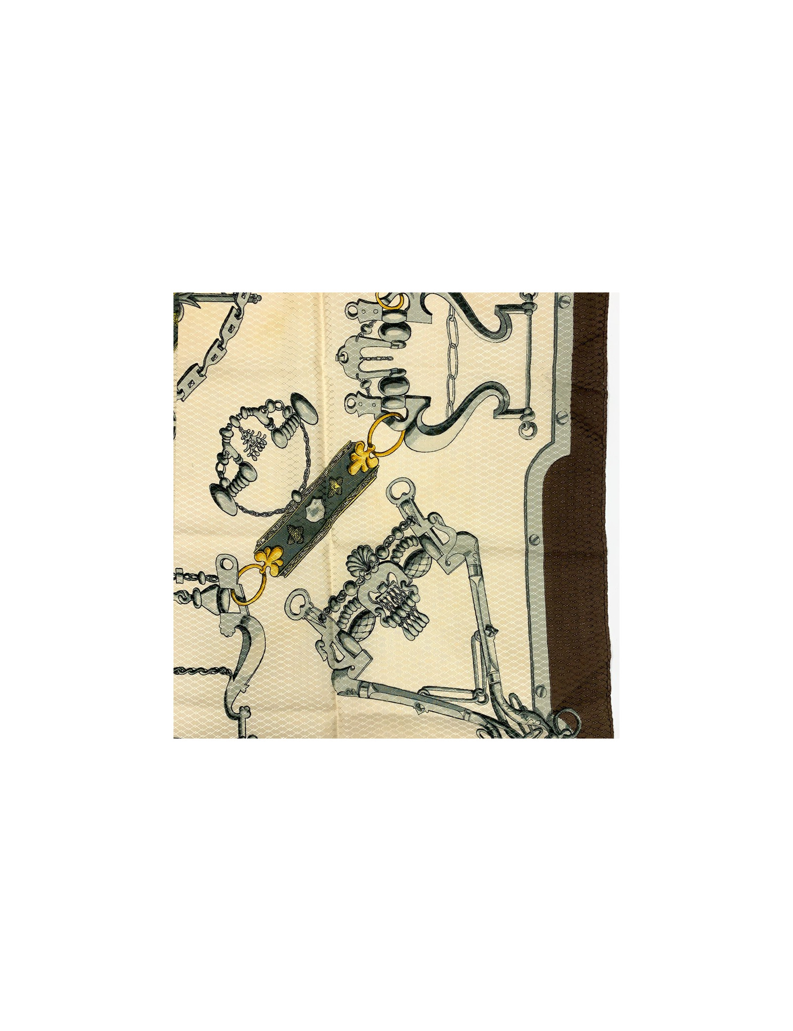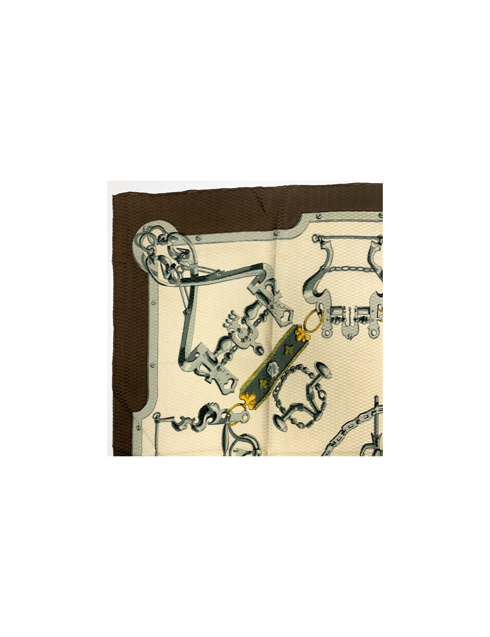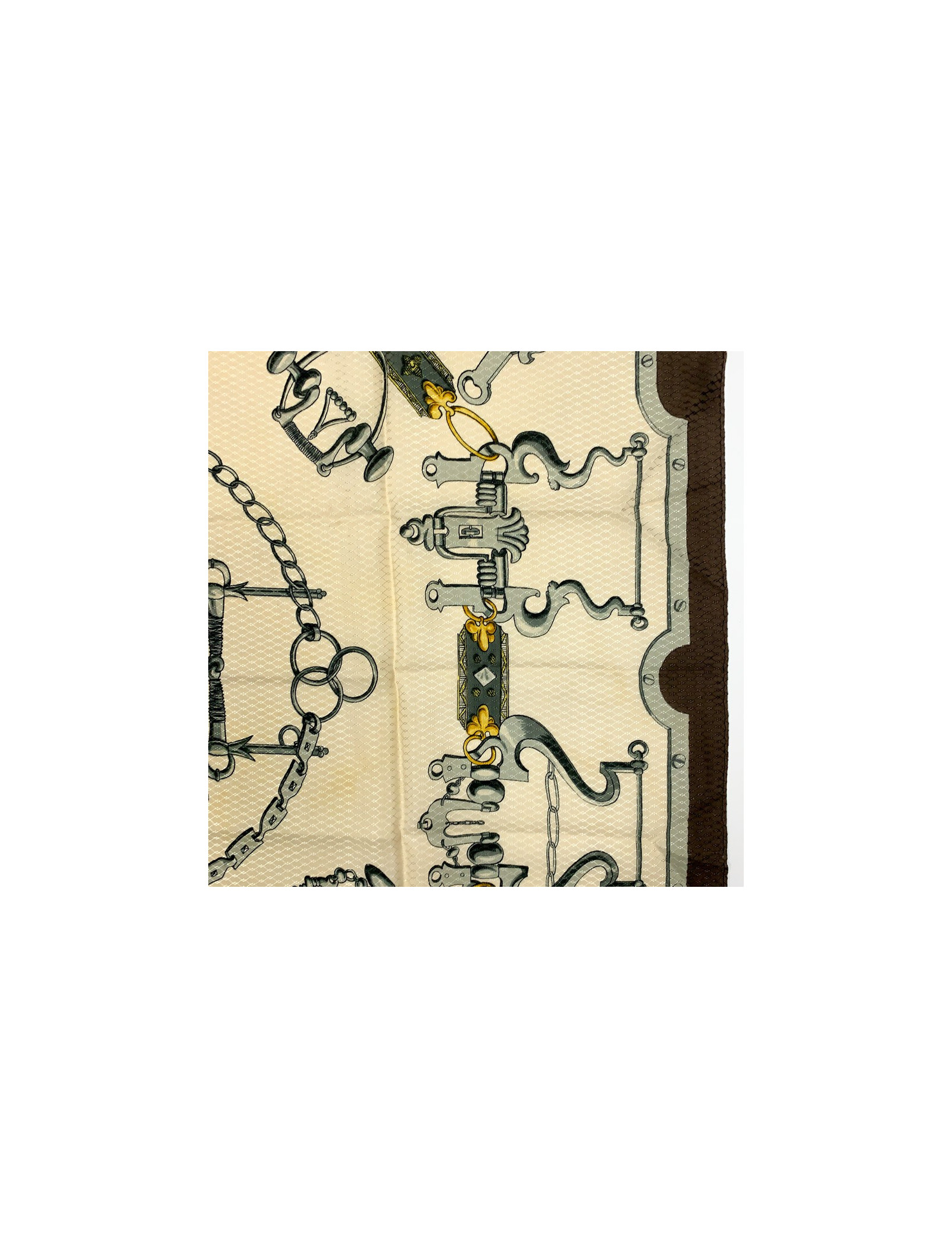 Last items in stock SCARVES AND SHAWLS HERMES Duo d'Etriers cashmere and silk shawl HERMES 34616 950.00 € HERMES Duo d'Etriers large shawl 140cm Condition : very goodMade in FranceMaterials : 70% cashmere, 30% silkColors : orange, beige, purpleMeasurements : 140 x 140 cmDesigner : Virginie Jamin Françoise de la PerrièreDetails : printed with stirrups. The rolled hem is in perfect condition. Composition label present.Advantage Valois Vintage Paris : delivered... Add to cart