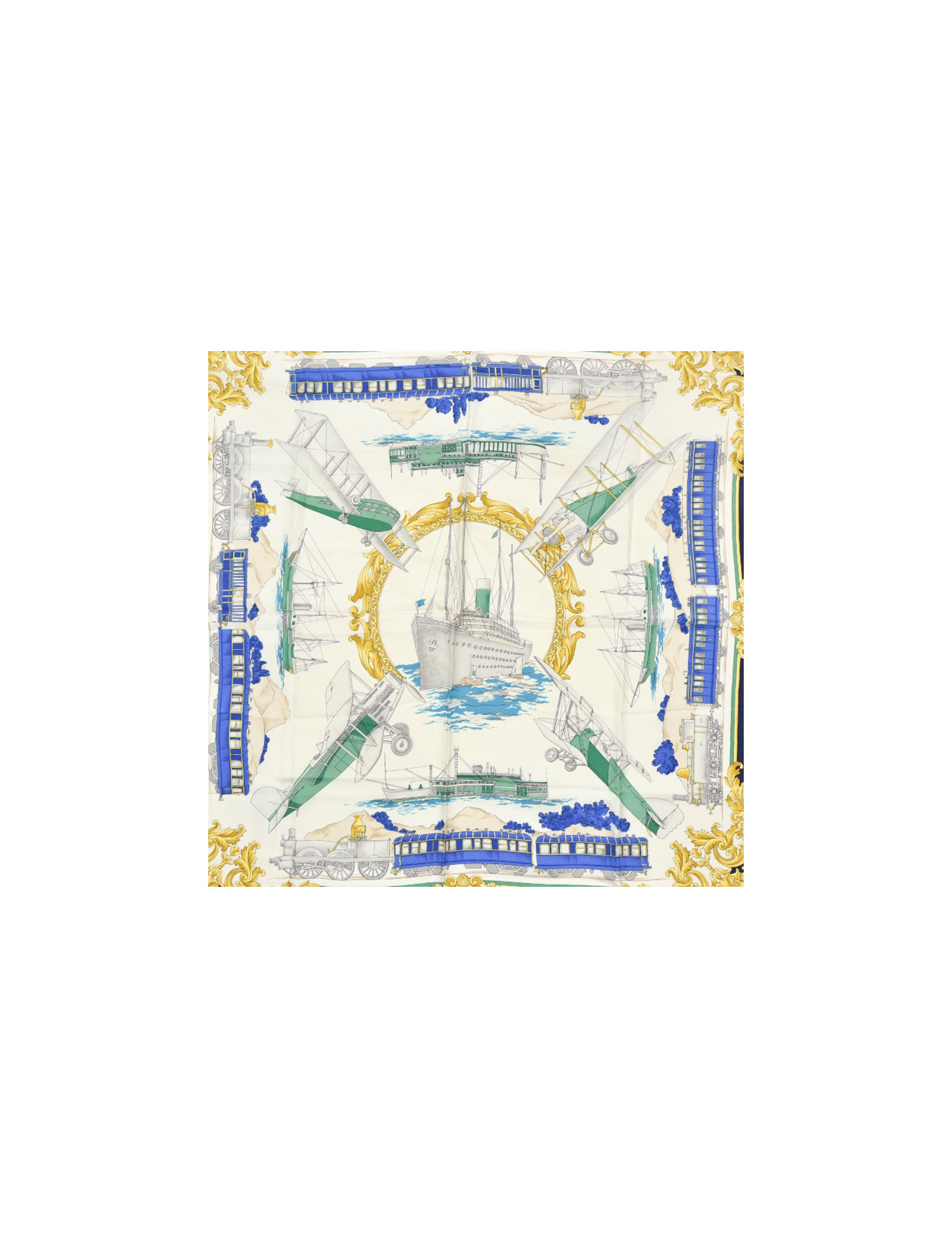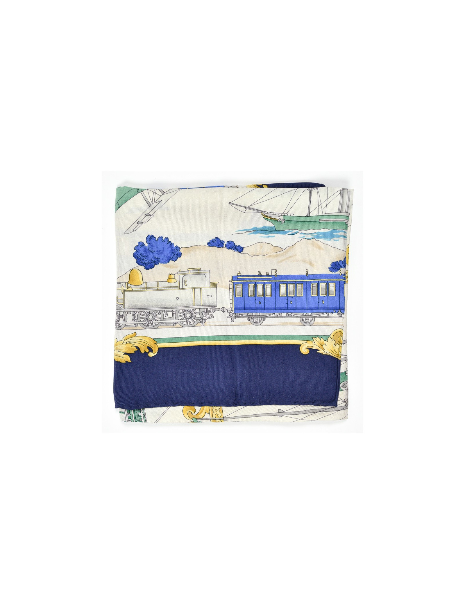 Last items in stock SCARVES AND SHAWLS HERMES Navires d'Europe à voiles mixtes et à vapeur silk square HERMES 34998 390.00 € HERMES Navires d'Europe... rare silk square scarf Condition : very goodMade in FranceMaterials : 100% silkColors : blue, whiteMeasurements : 90 x 90 cmDesigner : Francoise HeronYear : first issued in 1965, then reissued in 1995Details : Rare, it is sought after by collectors. The composition label is present. Advantage Valois Vintage Paris : delivered in... Add to cart