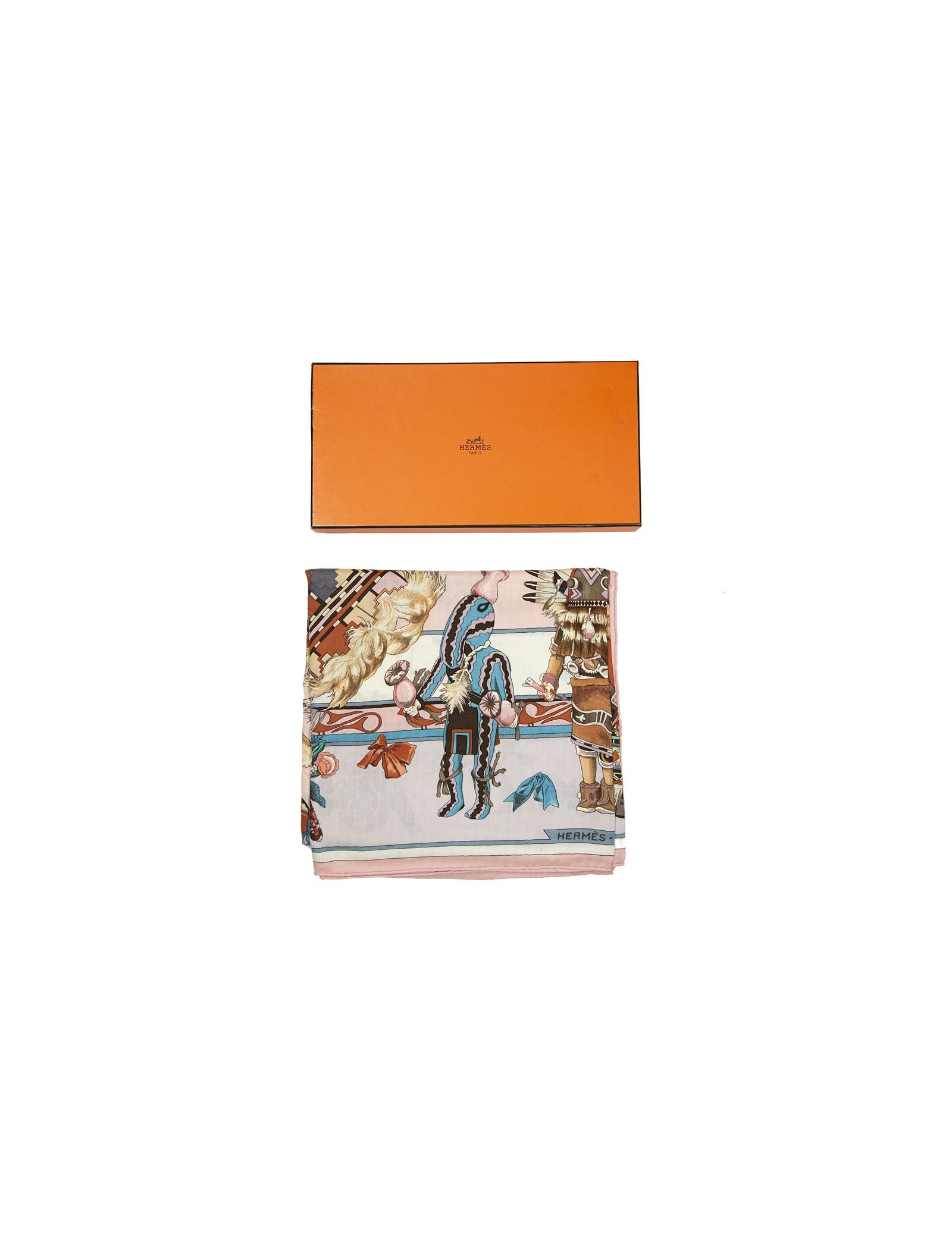 Sold SCARVES AND SHAWLS HERMES Les Cheyennes Collector square silk scarf HERMES 34875 980.00 € HERMES "Les Cheyennes" rare silk square scarf Condition : very good despite a small pulled threadMade in FranceMaterial : 100% silkColor: yellowMeasurements : 90 x 90 cmDesigner : Olivier KermitYear : 1993Details : A very rare square, much sought-after by collectors. Composition label missing, signed Hermès Paris.Oliver Kermit, son of an Afro-Texan... View