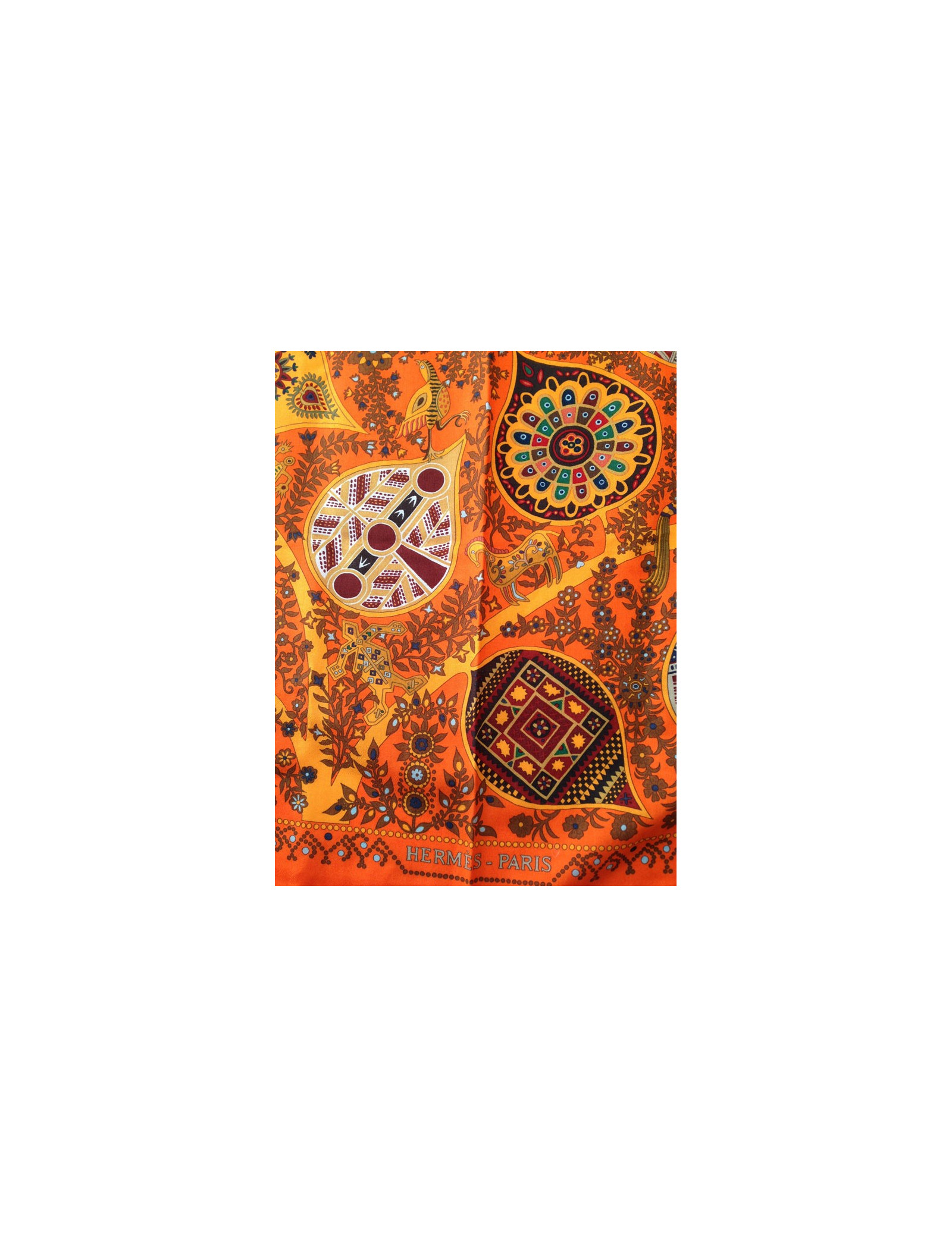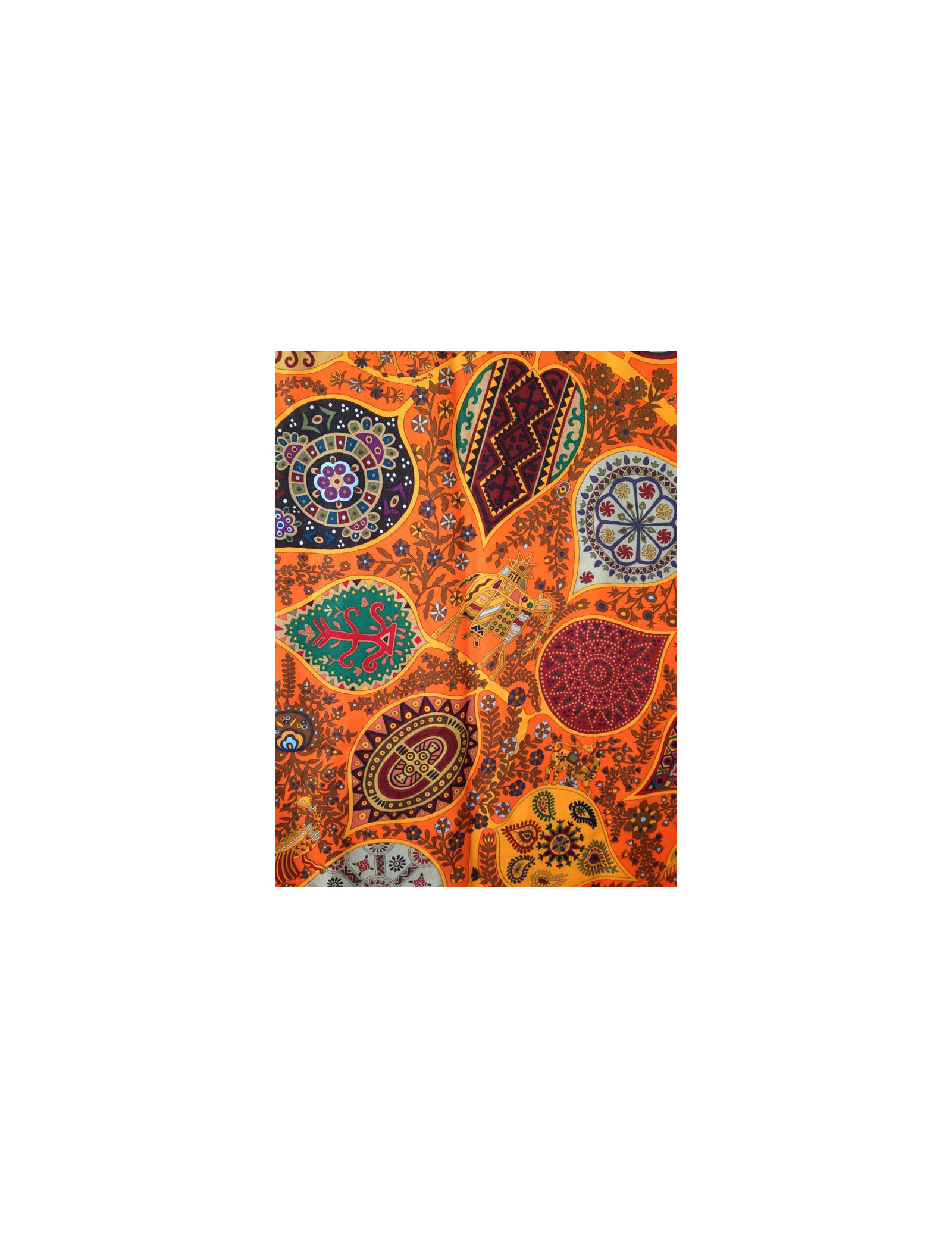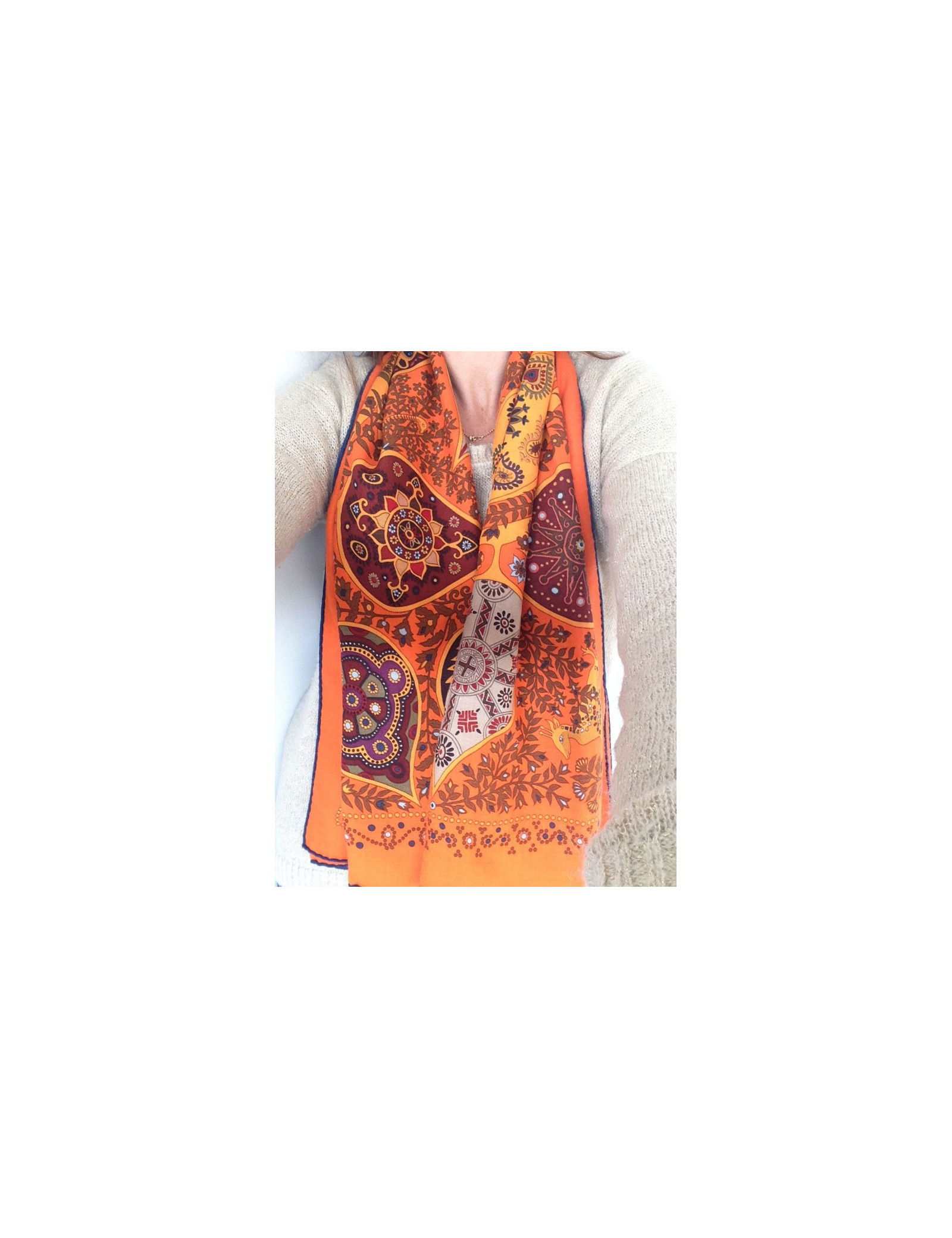 Beautiful scarf cashmere and silk Hermes, model 'Tree of life', in shades of red orange never worn. This beautiful shawl in shimmering shades form a beautiful table, as Hermes knows so well how to do, this model really our preference.