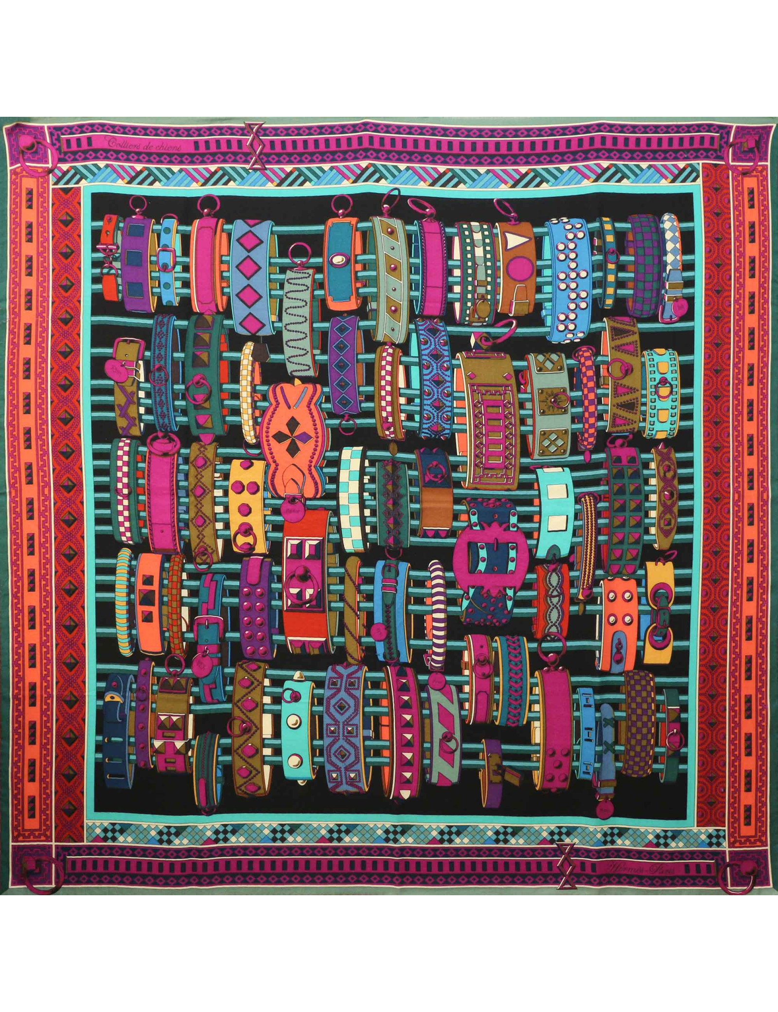 Sold SCARVES AND SHAWLS HERMES Les Cheyennes Collector square silk scarf HERMES 34875 980.00 € HERMES "Les Cheyennes" rare silk square scarf Condition : very good despite a small pulled threadMade in FranceMaterial : 100% silkColor: yellowMeasurements : 90 x 90 cmDesigner : Olivier KermitYear : 1993Details : A very rare square, much sought-after by collectors. Composition label missing, signed Hermès Paris.Oliver Kermit, son of an Afro-Texan... View