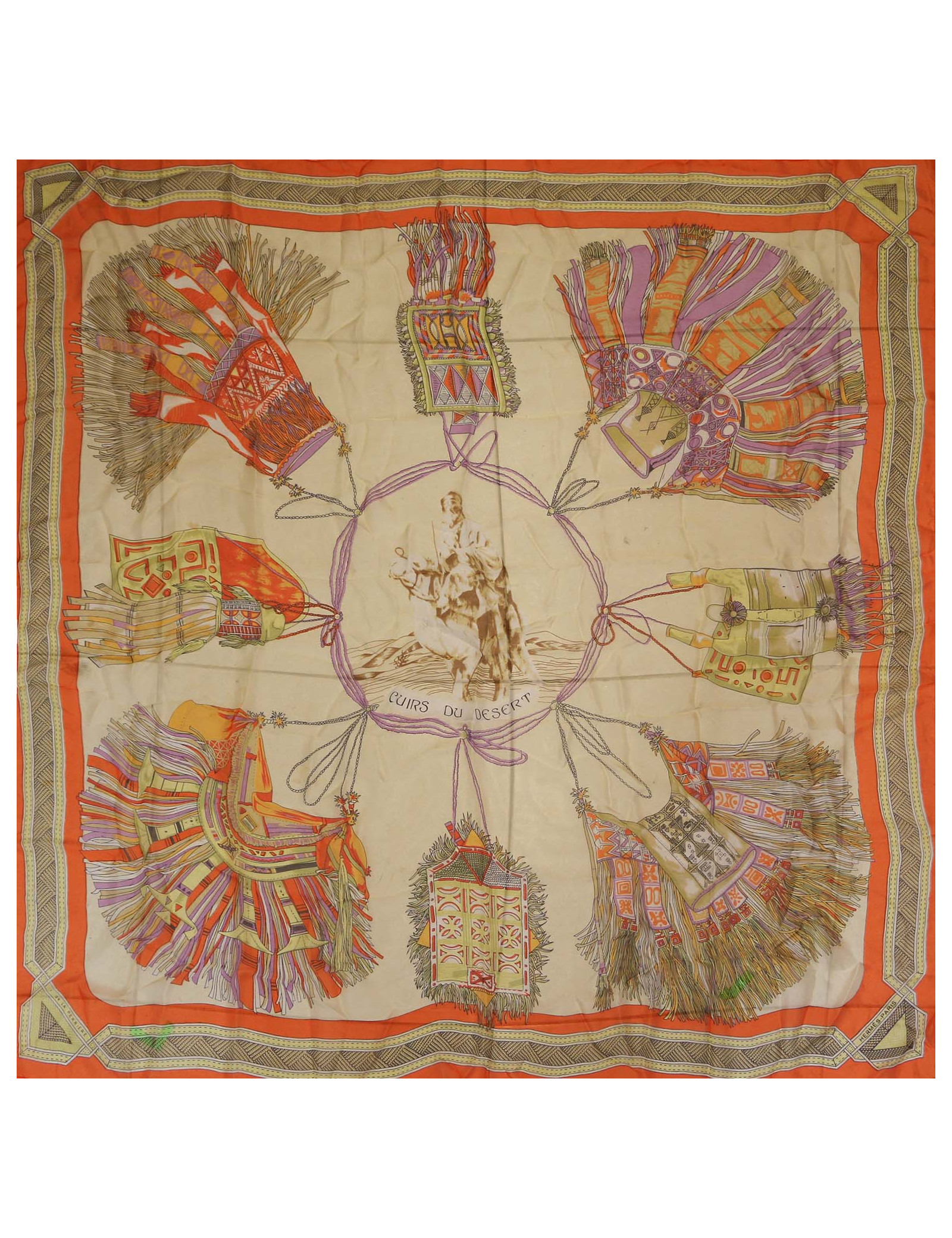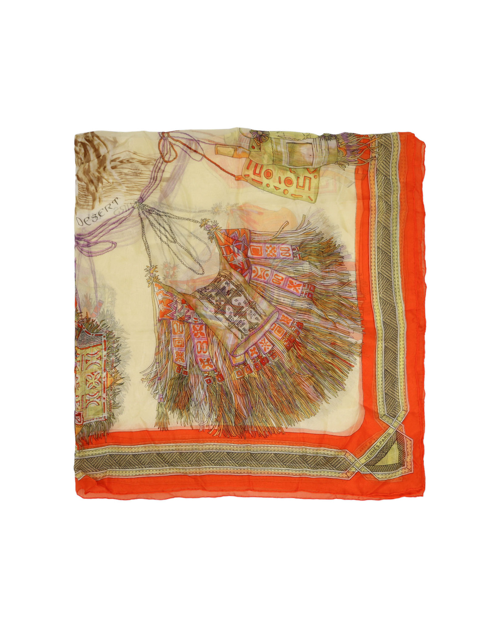 Châle HERMES cuirs du désert voile de soie